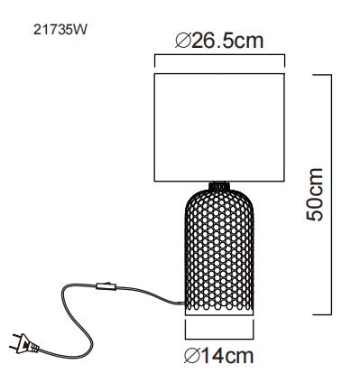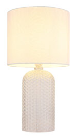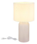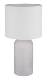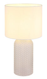 Stolna lampa SOFIA kombinuje eleganciju i funkcionalnost u elegantnom dizajnu. Sa svojim bijelim staklenim postoljem, koje impresionira svojom finom strukturom, i cilindričnim platnenim sjenilom u elegantnoj bijeloj boji, lampa se neprimjetno uklapa u svaki moderan interijer. Veliki prečnik Ø:265 mm osigurava ravnomjernu i ugodnu distribuciju svjetlosti, idealnu za svaki dnevni boravak ili radnu sobu. Preklopni prekidač na kablu omogućava jednostavno rukovanje i osigurava praktično uključivanje i isključivanje. Utičnica E27 nudi fleksibilnost u odabiru izvora svjetlosti i omogućava podešavanje svjetline prema vašim potrebama. Bilo na noćnom ormariću, radnom stolu ili bočnom stolu – stolna lampa SOFIA postavlja ukusne akcente i stvara ugodnu atmosferu.