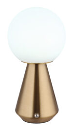 Stolna lampa SORA zadivljuje svojim elegantnim dizajnom u obliku trofeja i uvjerava modernim funkcijama. Tijelo izrađeno od mat metala u boji bakra daje svjetiljci plemeniti izgled koji se skladno uklapa u mnoge stilove opremanja. Opalna akrilna nijansa pruža ugodnu distribuciju svjetlosti bez odsjaja. Zahvaljujući beskonačnom dimeru na dodir, osvetljenost se može individualno podešavati, dok se temperatura boje može fiksirati od 3000 K do 6000 K – za savršeno svetlosno raspoloženje u bilo koje doba dana. SORA je opremljena praktičnim prekidačem za uključivanje/isključivanje i može se lako puniti putem priloženog USB kabla za punjenje. Sa prečnikom od 120 mm, idealan je za upotrebu na noćnim ormarićima, radnim stolovima ili komodama. LED svjetlo koje se može prigušiti nudi visoku energetsku efikasnost i izdržljivost. Zahvaljujući IP41 zaštiti, također je dobro zaštićen od prašine i vode koja kaplje.