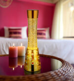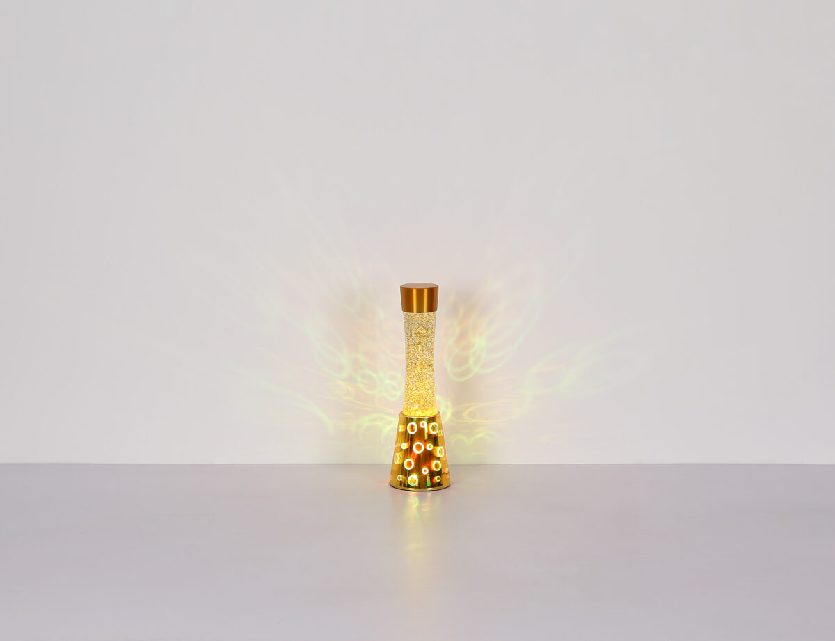 Stona lampa SPARKLE kombinuje moderan dizajn sa glamuroznim štihom i prava je privlačnost za svaki dom. Njegov cilindrični format i prečnik od 125 mm čine ga idealnim za stolove ili police, gde će biti akcenat u svakoj prostoriji. Kućište izrađeno od stakla zlatne boje sa 3D efektom pruža plemenit izgled, dok prozirna staklena nijansa omogućava sjajan prolaz svjetlosti i izvlači pjenušavu tekućinu. Sa praktičnim prekidačem na kablu, rukovanje je dječija igra. Integrirana svjetlucava lampa inspirira prozirnom tekućinom i šljokicama zlatne boje, koje stvaraju fascinantne igre svjetla kada su upaljene i stvaraju magičnu atmosferu. Bilo da se nalazi u dnevnom boravku, spavaćoj sobi ili kao rasvjeta za posebne prilike, stolna lampa SPARKLE donosi radost i eleganciju u svaki dom. Ne samo da je funkcionalan, već je i moderan komad dekoracije koji će uljepšati svaku prostoriju.