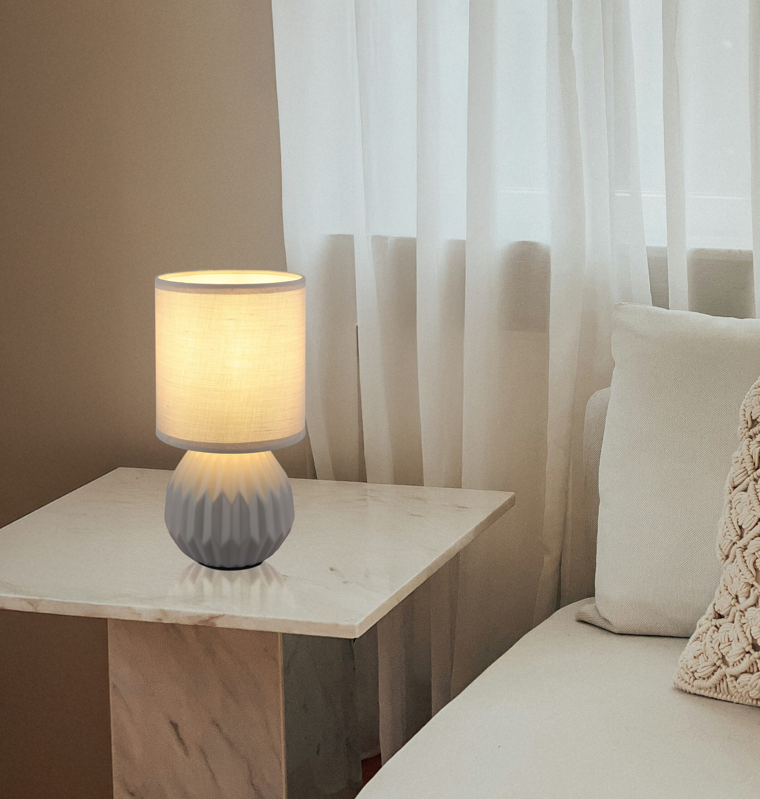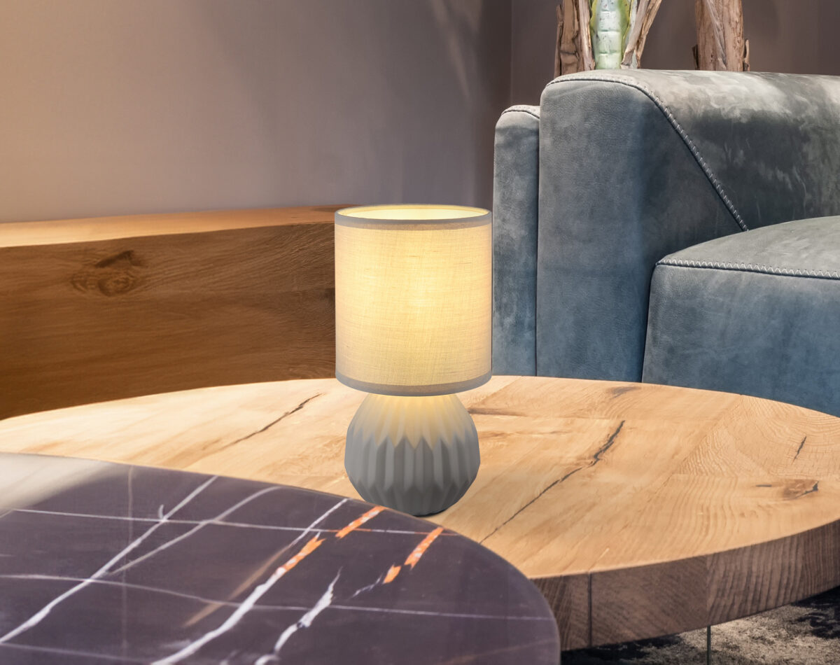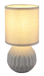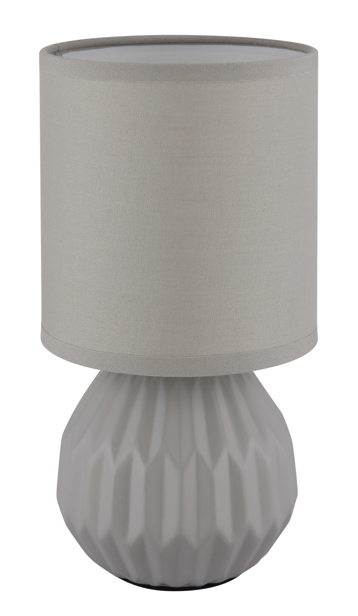 SYLAS stolna lampa kombinuje elegantnu eleganciju sa praktičnom funkcionalnošću. Njegova lukovičasta keramička baza u elegantnoj sivoj boji i cilindrična nijansa tkanine u odgovarajućoj sivoj boji stvaraju skladnu estetiku koja se uklapa u svaki moderan interijer. Tekstilna nijansa osigurava nježnu, ravnomjernu raspodjelu svjetlosti i doprinosi ugodnoj atmosferi. Sa prečnikom od 120 mm, lampa je dovoljno kompaktna da stane na bilo koji sto ili noćni stočić. Integrisani prekidač na kablu omogućava lak i praktičan rad. Opremljena utičnicom E14, SYLAS stona lampa nudi fleksibilnost u izboru izvora svjetlosti i pruža idealno osvjetljenje u vašem domu. Ova rasvjetna jedinica je funkcionalna i estetski ugodna, dodajući stilski štih svakoj prostoriji.