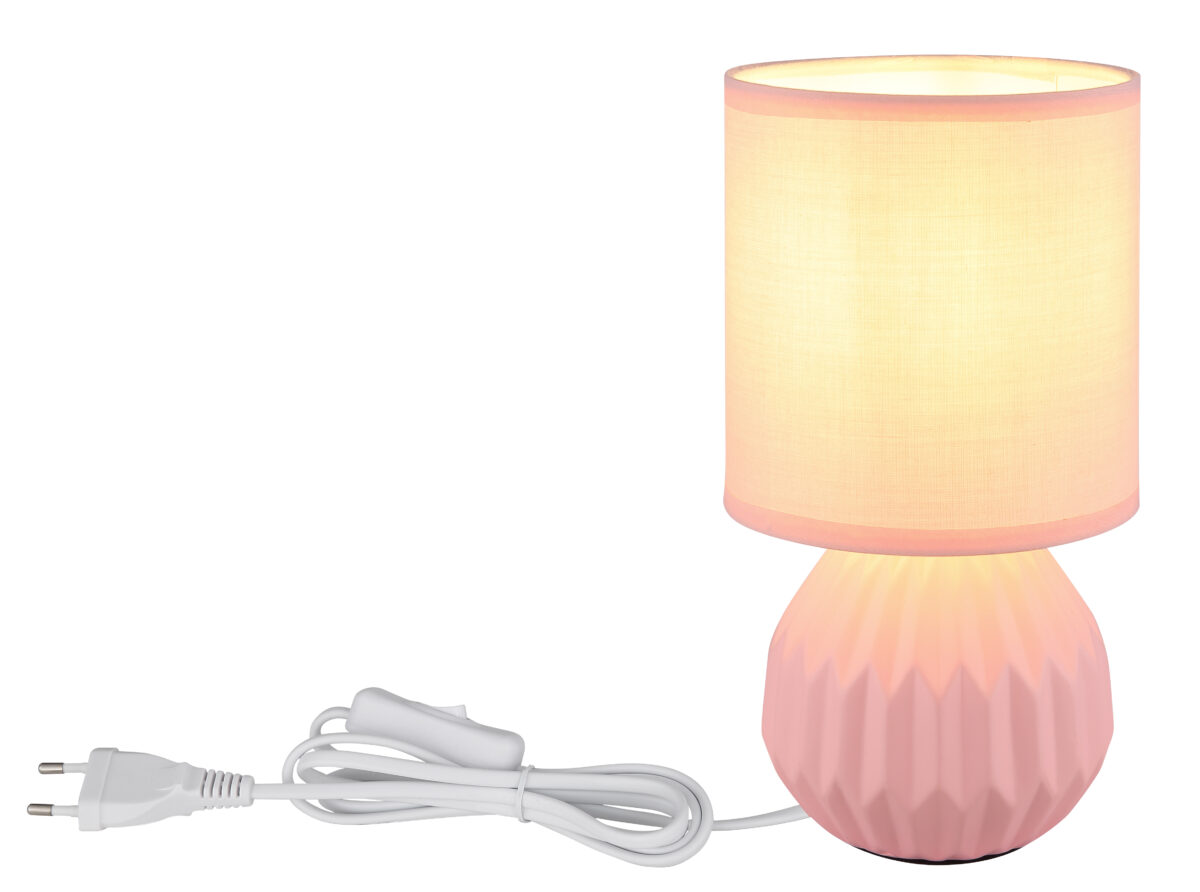 SYLAS stolna lampa svojim umjetničkim dizajnom unosi živu pop boja u vaš dom. Lubučasto keramičko postolje u jarko ružičastoj kombinaciji sa cilindričnim platnenim sjenilom u istoj veseloj nijansi daje lampi šarmantan i moderan izgled. Tekstilna nijansa osigurava nježnu i ravnomjernu distribuciju svjetlosti koja ispunjava svaku prostoriju toplim sjajem. Sa promjerom od 120 mm, lampa je idealna za stolove, noćne ormariće ili male skladišne prostore. Praktičan prekidač na kablu omogućava jednostavno rukovanje rasvjetom. SYLAS stona lampa koristi grlo E14, što vam daje slobodu izbora prave sijalice za vaše potrebe osvetljenja. Ova stolna lampa je savršena kombinacija funkcionalnosti i elegantnog dizajna, idealna za one koji cijene boje i eleganciju u svom interijeru.