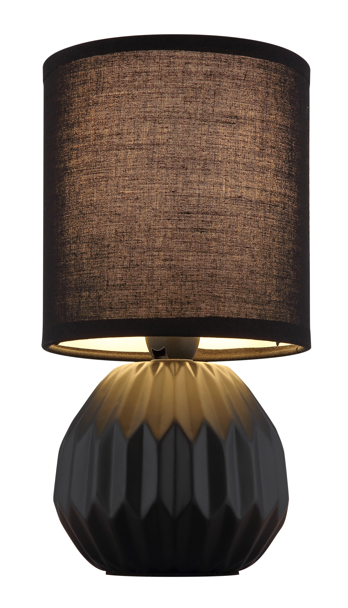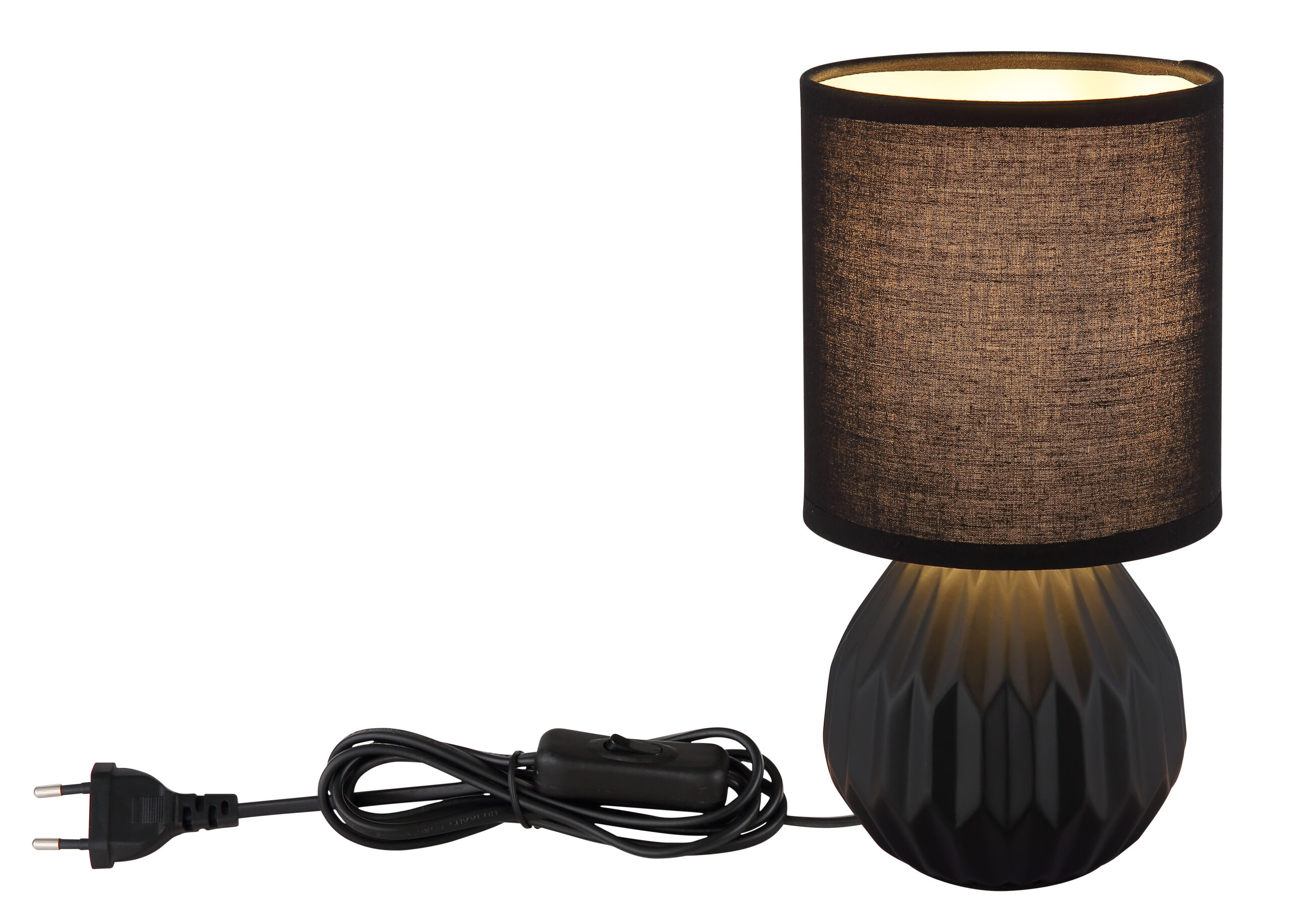 Stolna lampa SYLAS kombinuje bezvremensku eleganciju sa modernim dizajnom. Sa svojom lukovičastom keramičkom bazom u elegantnoj crnoj boji i cilindričnim platnenim sjenilom u odgovarajućoj crnoj tekstilnoj, ova lampa postavlja stilski akcent u svaku prostoriju. Elegantno crno tijelo savršeno se usklađuje s nježnom nijansom, što osigurava nježnu i ravnomjernu distribuciju svjetlosti. Sa prečnikom od 120 mm, stona lampa je kompaktna i idealna je za stolove, noćne ormariće ili male bočne stolove. Svjetlo SYLAS ima praktičan prekidač na kablu koji omogućava jednostavnu kontrolu svjetla. Grlo E14 nudi fleksibilnost u izboru sijalice. Bilo u modernom potkrovlju, elegantnom dnevnom boravku ili klasičnoj spavaćoj sobi, SYLAS stolna lampa pruža elegantno osvjetljenje i postavlja elegantne akcente u vaš životni prostor.