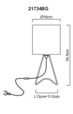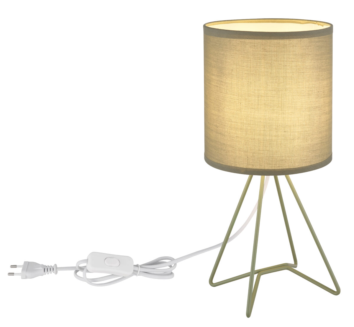 Stolna lampa TAMIAN kombinuje elegantan dizajn sa jednostavnom funkcionalnošću. Njegova cilindrična nijansa od tkanine u blijedozelenoj boji i odgovarajuće metalno tijelo daju mu mekan, umirujući sjaj. Sa promjerom od 160 mm i čvrstim metalnim šipkama na bazi, TAMIAN se skladno uklapa u različite stilove opremanja. Lampa je opremljena sa E14 grlom koji obezbeđuje efikasno osvetljenje. Praktičan prekidač na kablu omogućava jednostavno rukovanje i pruža dodatnu pogodnost. Blijedozelena shema nijansi i tijela stvara elegantnu atmosferu i postavlja stilske akcente na svakom stolu. Idealna za dnevne sobe, spavaće sobe ili radne prostore, TAMIAN stolna lampa nudi funkcionalno osvjetljenje i estetski dizajn. Upotpunite svoj dom ovim elegantnim izvorom svjetla i uživajte u kombinaciji stila i funkcije.