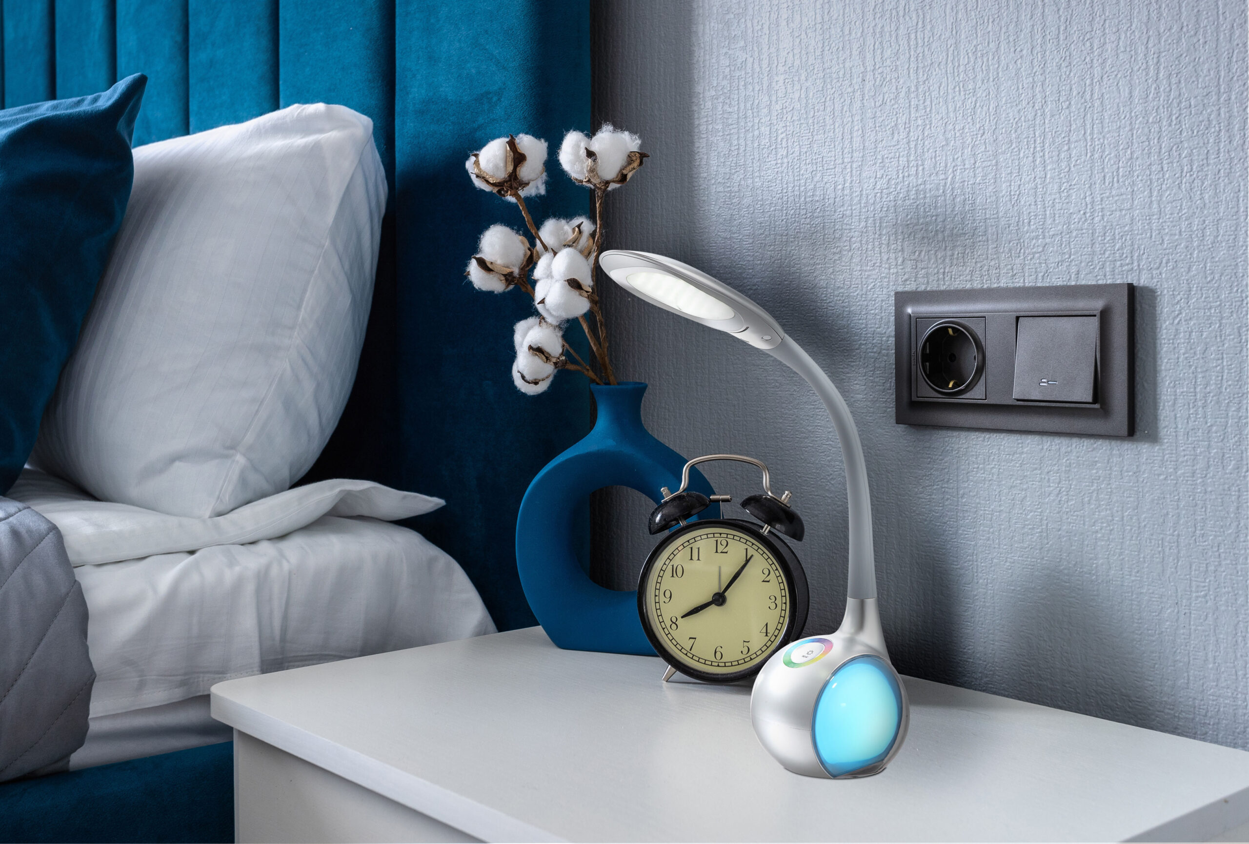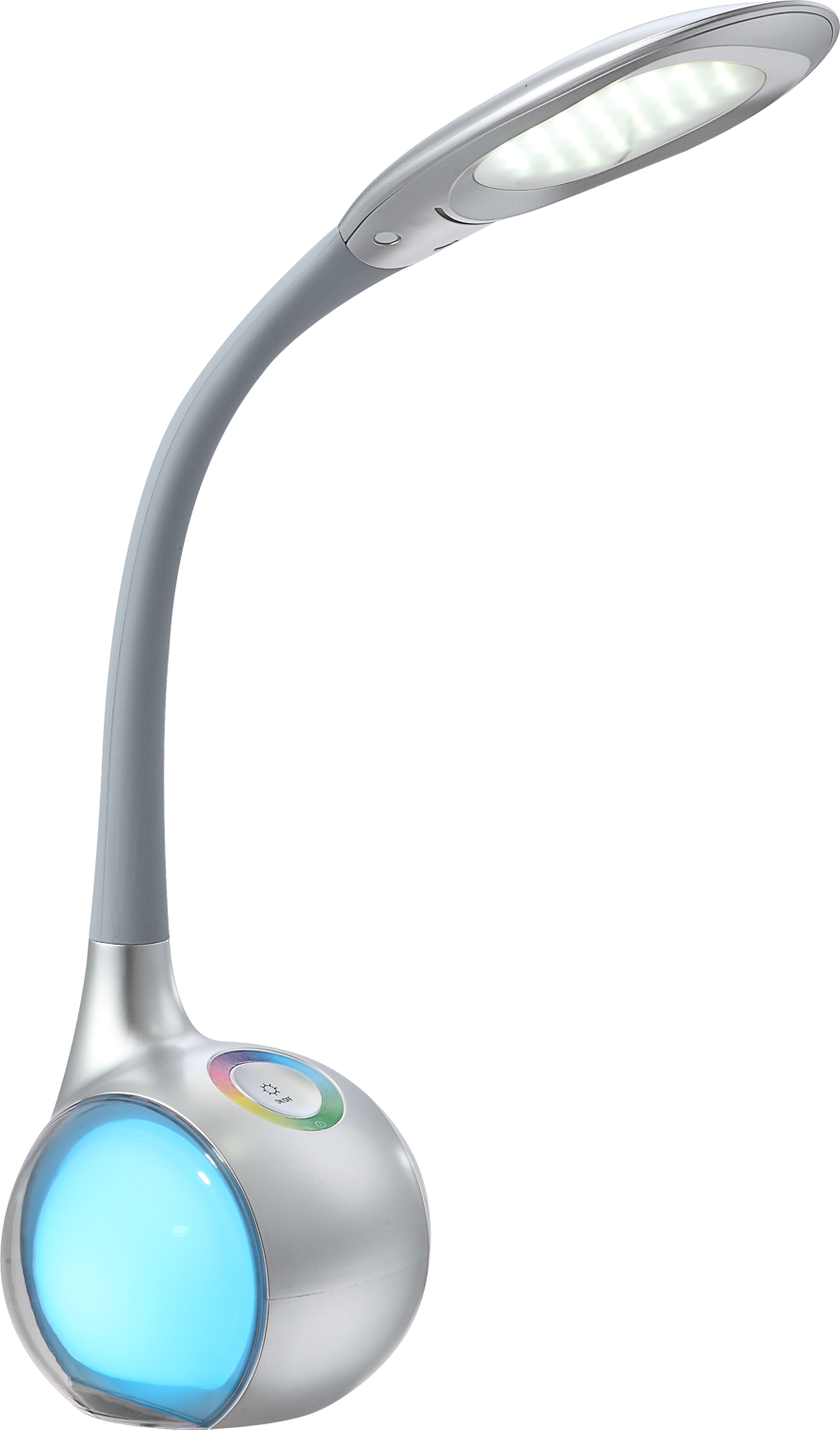 Elegantna stolna lampa Tarron (maks. 53 cm), uglavnom izrađena od srebrno-sive plastike, uvjerava dizajnom i funkcionalnošću. Uključena LED sijalica ove stolne lampe sa mogućnošću zatamnjivanja daje maksimalno 280 lumena jakog i 5500 Kelvina hladnog bijelog svjetla. RGB sijalica ugrađena u bazu čini da ova stolna lampa sija šareno. Boja i intenzitet svjetla mogu se podesiti i fiksirati pomoću dostupnog dimera na dodir.