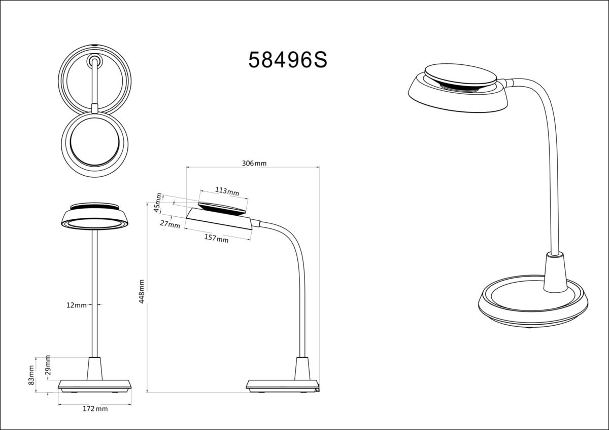 Lampa ima kontrolu za uključivanje/isključivanje dodirom, popravljive boje i daje izlaz od 550 lumena. Isporučuje se sa adapterom i LED diodom, KIRK mjeri L: 306 mm, B: 172 mm – moderno, svestrano rješenje za rasvjetu.