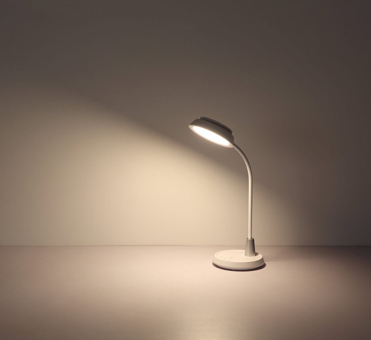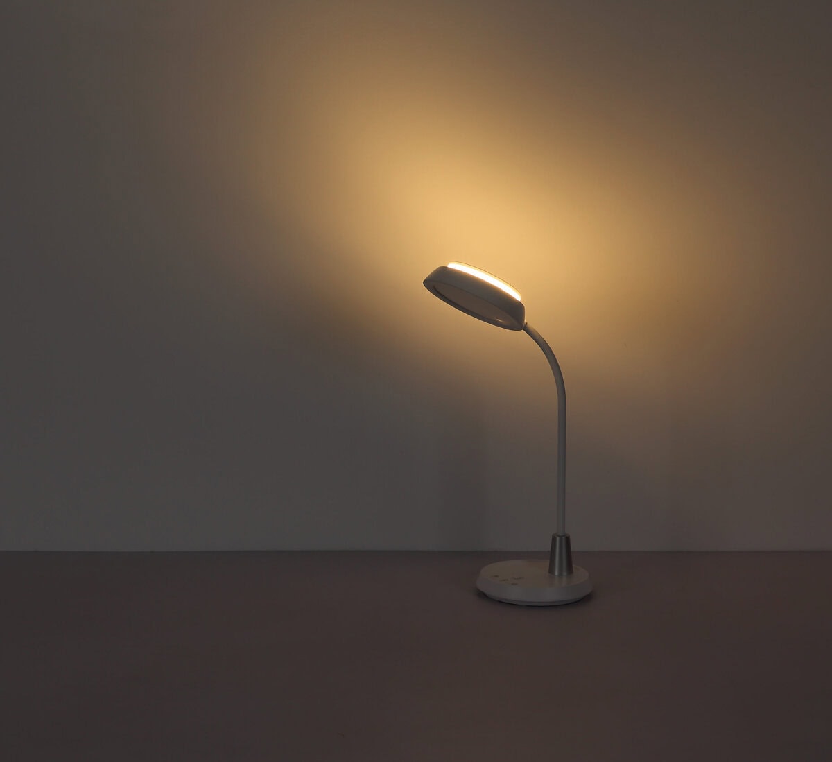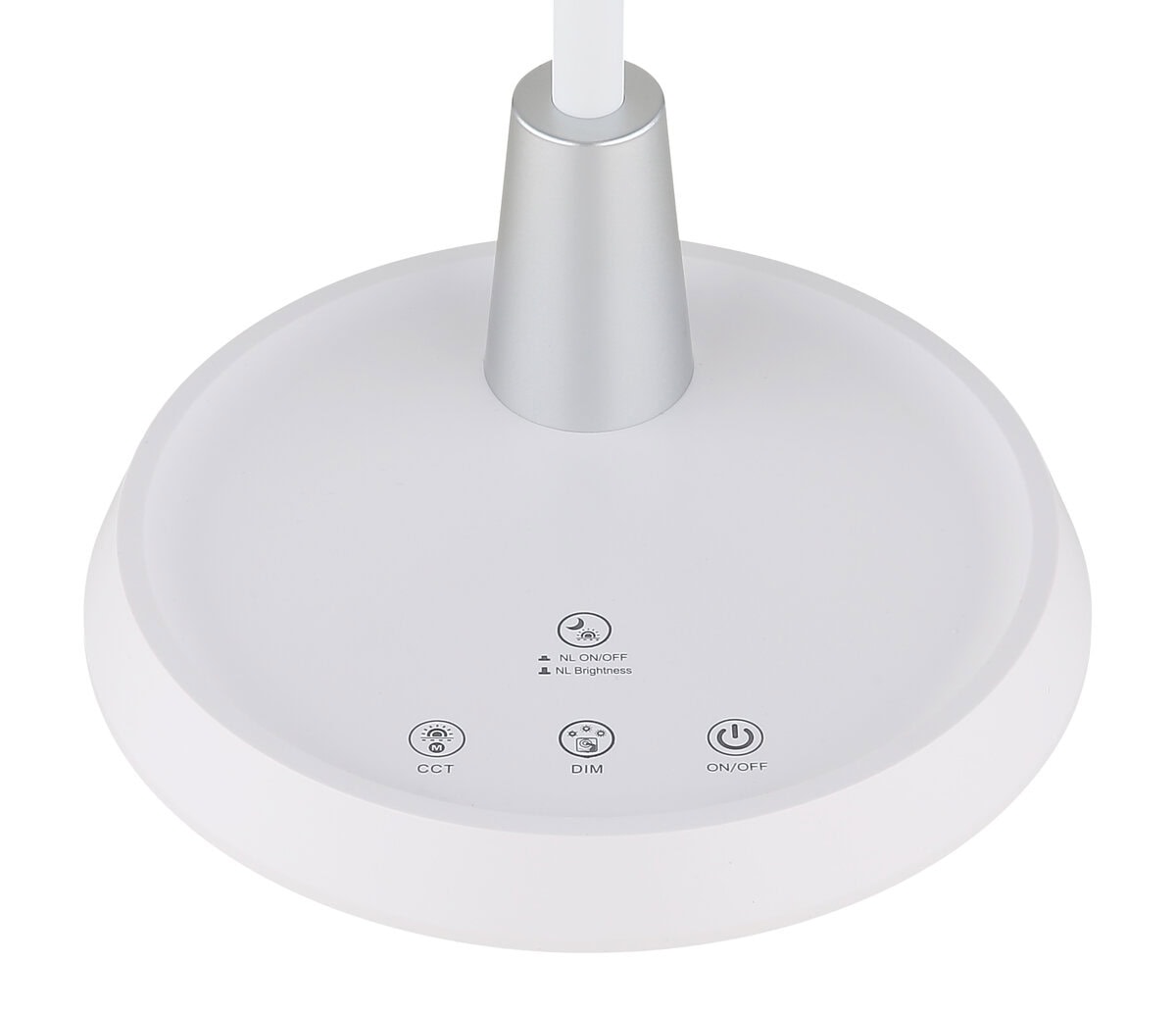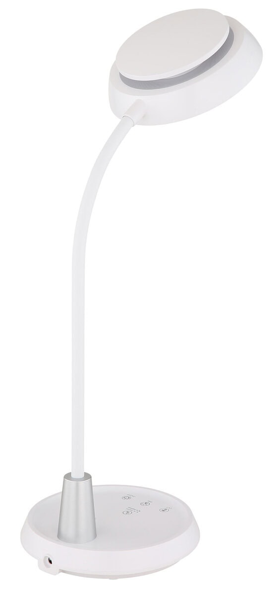 Stolna lampa KIRK kombinuje moderan dizajn sa pametnom funkcionalnošću. Sa okruglom bazom, fleksibilnom rukom i ravnom okruglom sjenilom, neprimjetno se uklapa u svaki interijer. Kućište od mat bijele i srebrne plastike nudi elegantan, bezvremenski izgled. Njegov sjenilo, napravljeno od mat plastike, opal plastike i mat bijelog silikona, osigurava ravnomjernu raspodjelu svjetlosti bez odsjaja. Opremljen beskonačnim dimerom na dodir, svjetlina se može kontinuirano podešavati od 10% do 100%. CCT raspon od 4000 K do 6000 K omogućava prilagođavanje i fiksiranje temperatura boje. Zahvaljujući memorijskoj funkciji, lampa pamti vaša zadnja podešavanja. Noćno svetlo koje se može prigušiti obezbeđuje meko osvetljenje uveče. Sa snagom od 560 lumena, pruža ugodno osvjetljenje za rad ili opuštanje. Adapter je uključen. KIRK je moderan i funkcionalan izbor za stolove, noćne ormariće ili dnevni boravak.