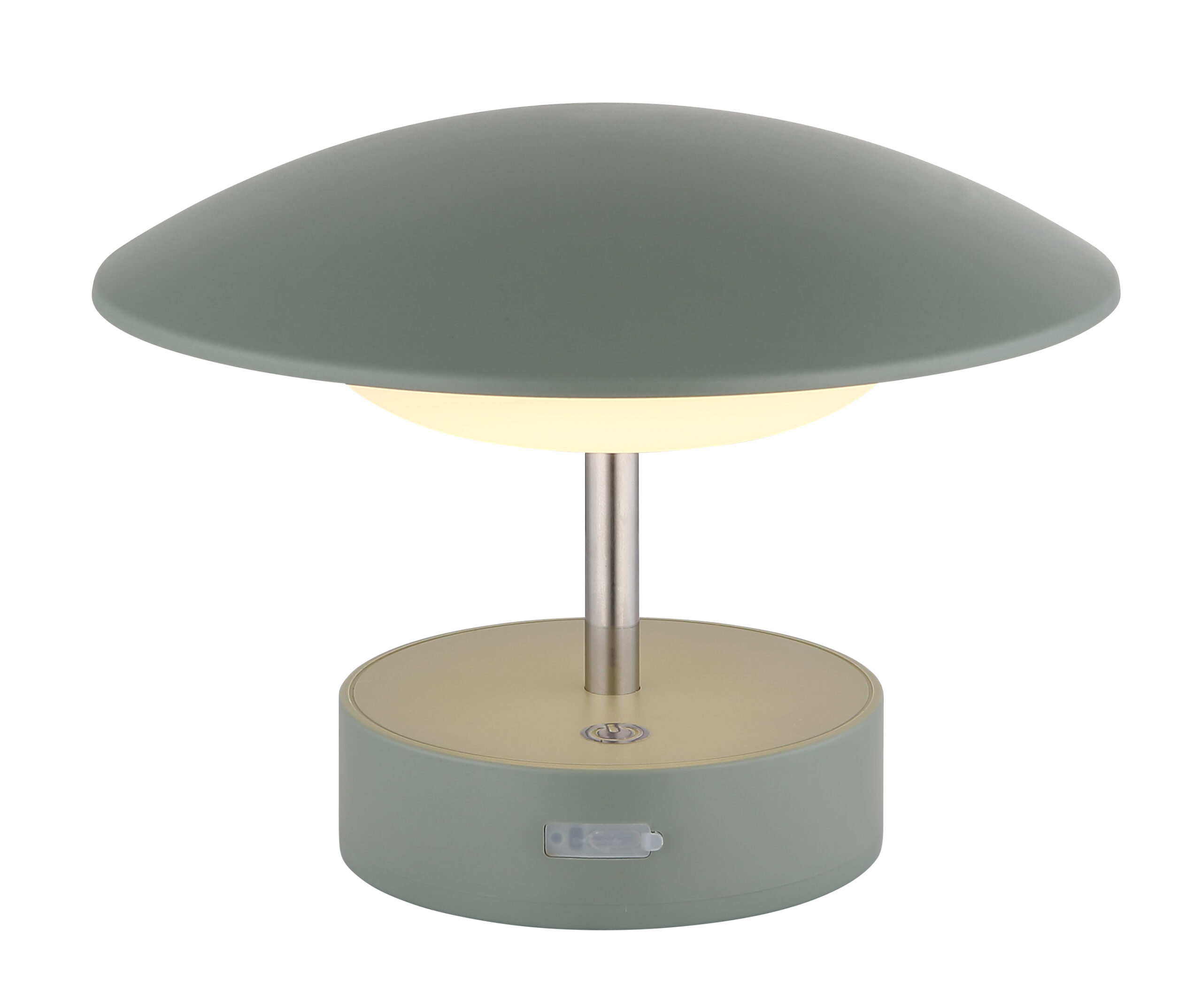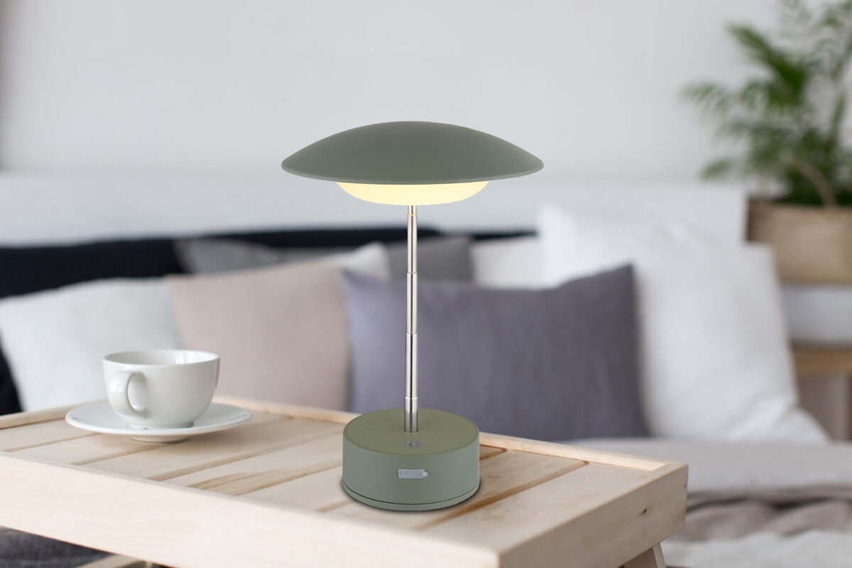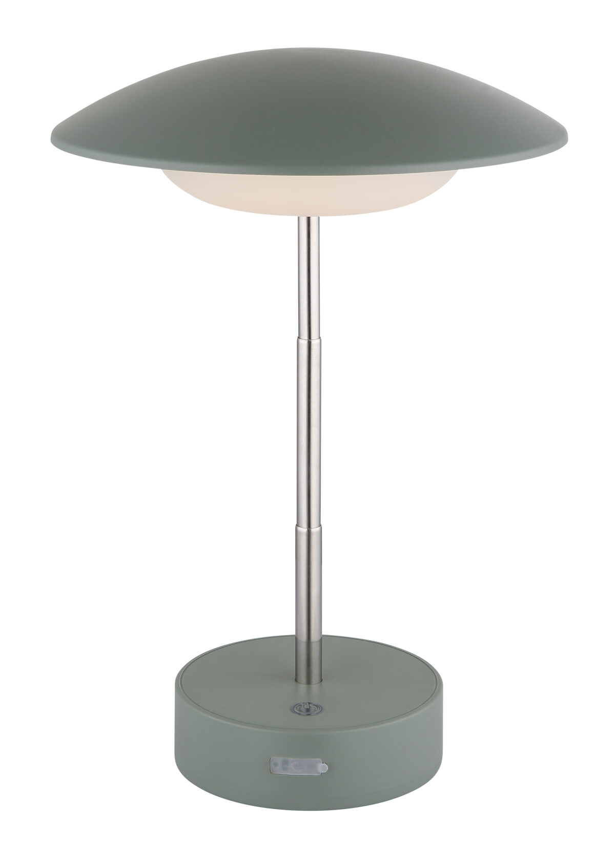 Otkrijte STOLNU LAMPU TOMO PLASTIC GREEN, okruglu stonu lampu u obliku pečurke. Tijelo je izrađeno od mat zelene plastike i nehrđajućeg čelika, dok je sjenilo izrađeno od mat zelene i opal plastike. Ova stolna lampa ima praktičan dimer na dodir i dolazi sa USB kablom za punjenje. Nudi toplo bijelo svjetlo na temperaturi od 3000 K i proizvodi snagu od 40 lumena. Zahvaljujući teleskopskom dizajnu, visina svetiljke se može podesiti. Vrijeme punjenja je oko 4 sata, a vrijeme osvjetljenja je oko 6 sati, dok je lampica uključena tokom punjenja. Kombinirajući funkcionalnost sa privlačnim dizajnom, ova stolna lampa je savršen dodatak za svaki dom ili ured, pružajući ugodno osvjetljenje i istovremeno izgledajući sa stilom.