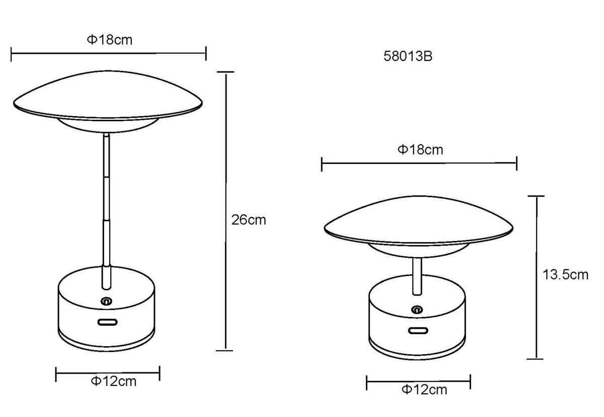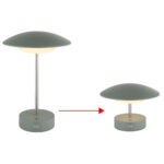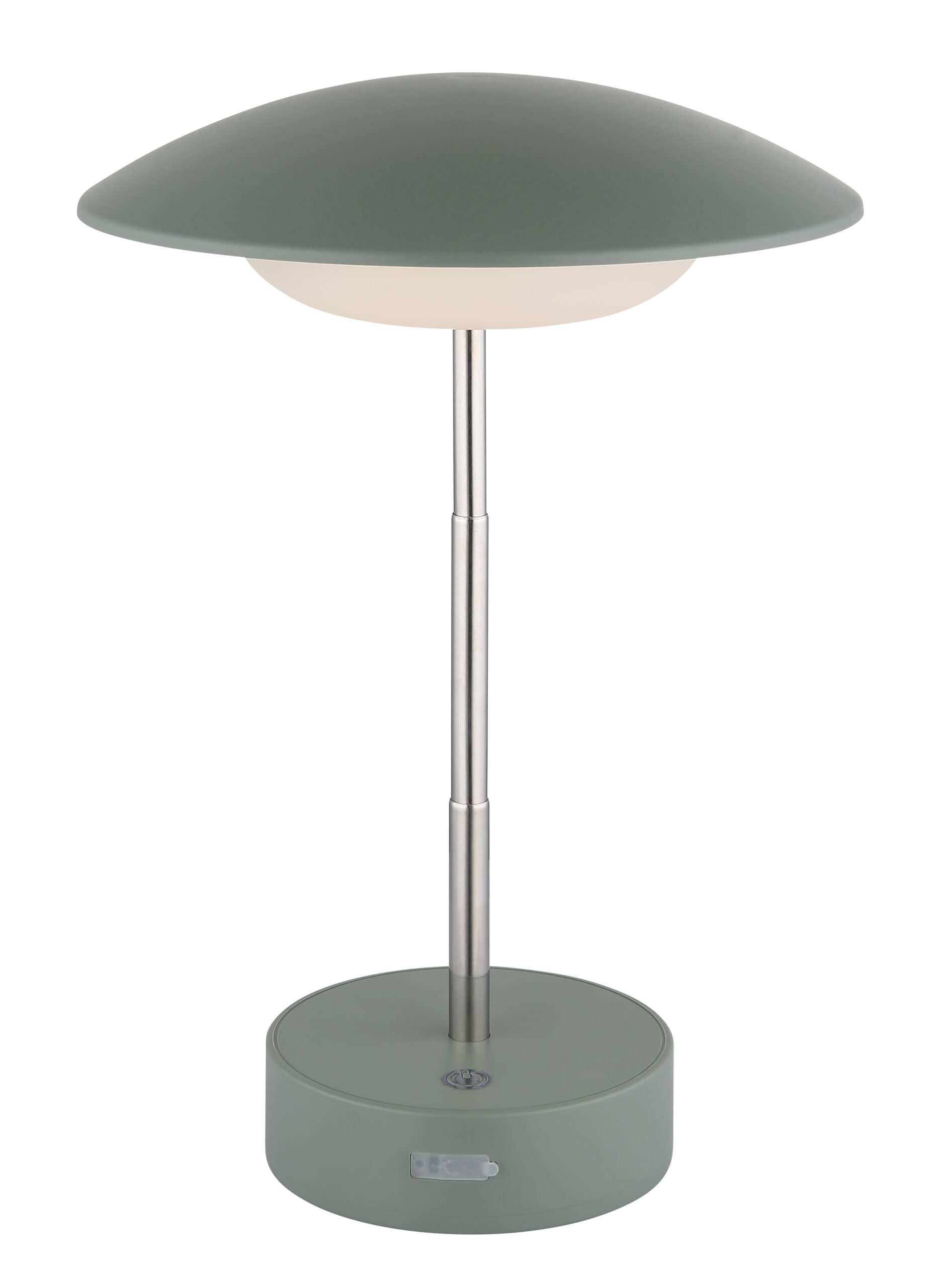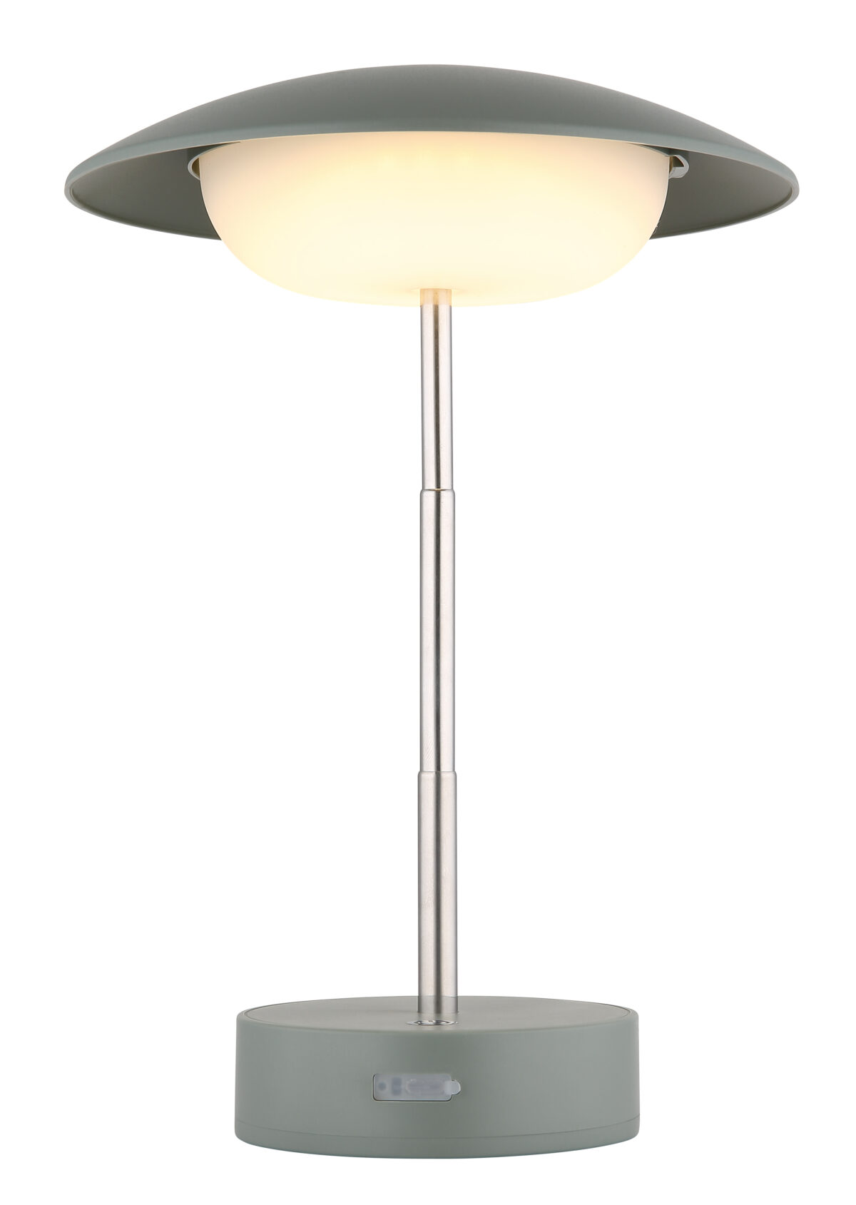 Otkrijte STOLNU LAMPU TOMO PLASTIC GREEN, okruglu stonu lampu u obliku pečurke. Tijelo je izrađeno od mat zelene plastike i nehrđajućeg čelika, dok je sjenilo izrađeno od mat zelene i opal plastike. Ova stolna lampa ima praktičan dimer na dodir i dolazi sa USB kablom za punjenje. Nudi toplo bijelo svjetlo na temperaturi od 3000 K i proizvodi snagu od 40 lumena. Zahvaljujući teleskopskom dizajnu, visina svetiljke se može podesiti. Vrijeme punjenja je oko 4 sata, a vrijeme osvjetljenja je oko 6 sati, dok je lampica uključena tokom punjenja. Kombinirajući funkcionalnost sa privlačnim dizajnom, ova stolna lampa je savršen dodatak za svaki dom ili ured, pružajući ugodno osvjetljenje i istovremeno izgledajući sa stilom.