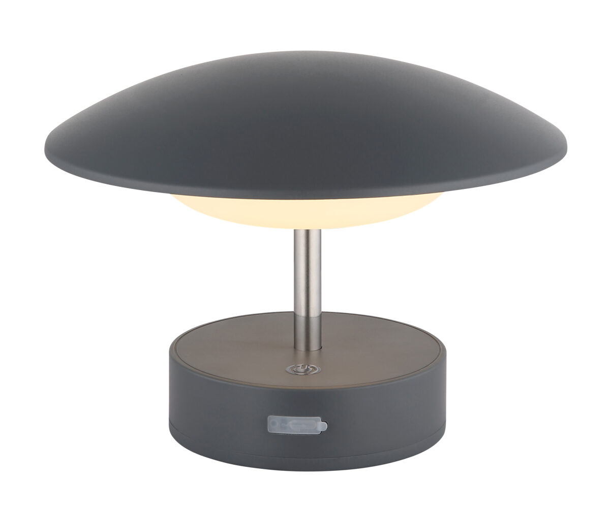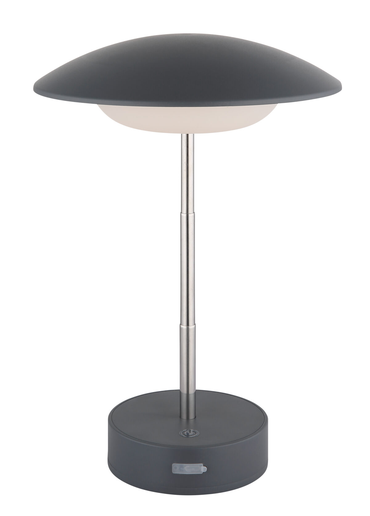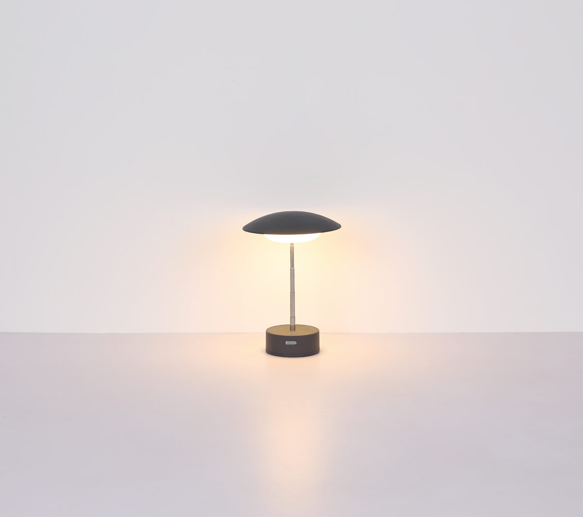 Otkrijte STOLNU LAMPU TOMO PLASTIC ANTRACITE, elegantnu okruglu stonu lampu u obliku pečurke. Tijelo je izrađeno od mat antracit plastike i nehrđajućeg čelika, dok je sjenilo izrađeno od mat antracit i opal plastike. Ova stolna lampa je opremljena praktičnim prigušivačem na dodir i dolazi sa USB kablom za punjenje. Nudi toplo bijelo svjetlo na temperaturi od 3000 K i proizvodi snagu od 40 lumena. Zahvaljujući teleskopskom dizajnu, visina svetiljke se može podesiti. Vrijeme punjenja je oko 4 sata, a vrijeme osvjetljenja je oko 6 sati, s uključenim svjetlom tokom punjenja. Ova stolna lampa nije samo funkcionalna, već je i moderan dodatak za svaku sobu, stvarajući ugodnu atmosferu.