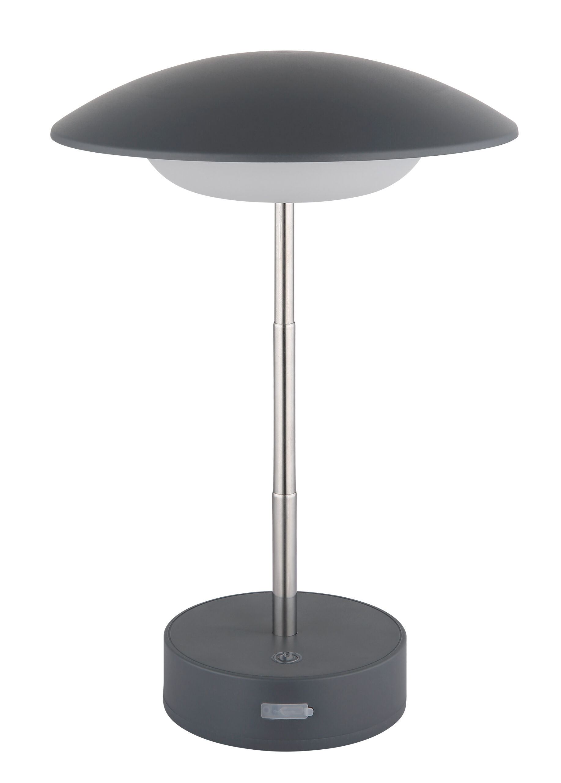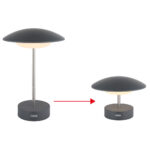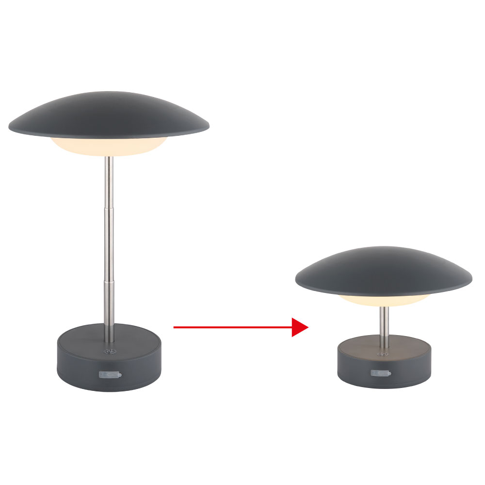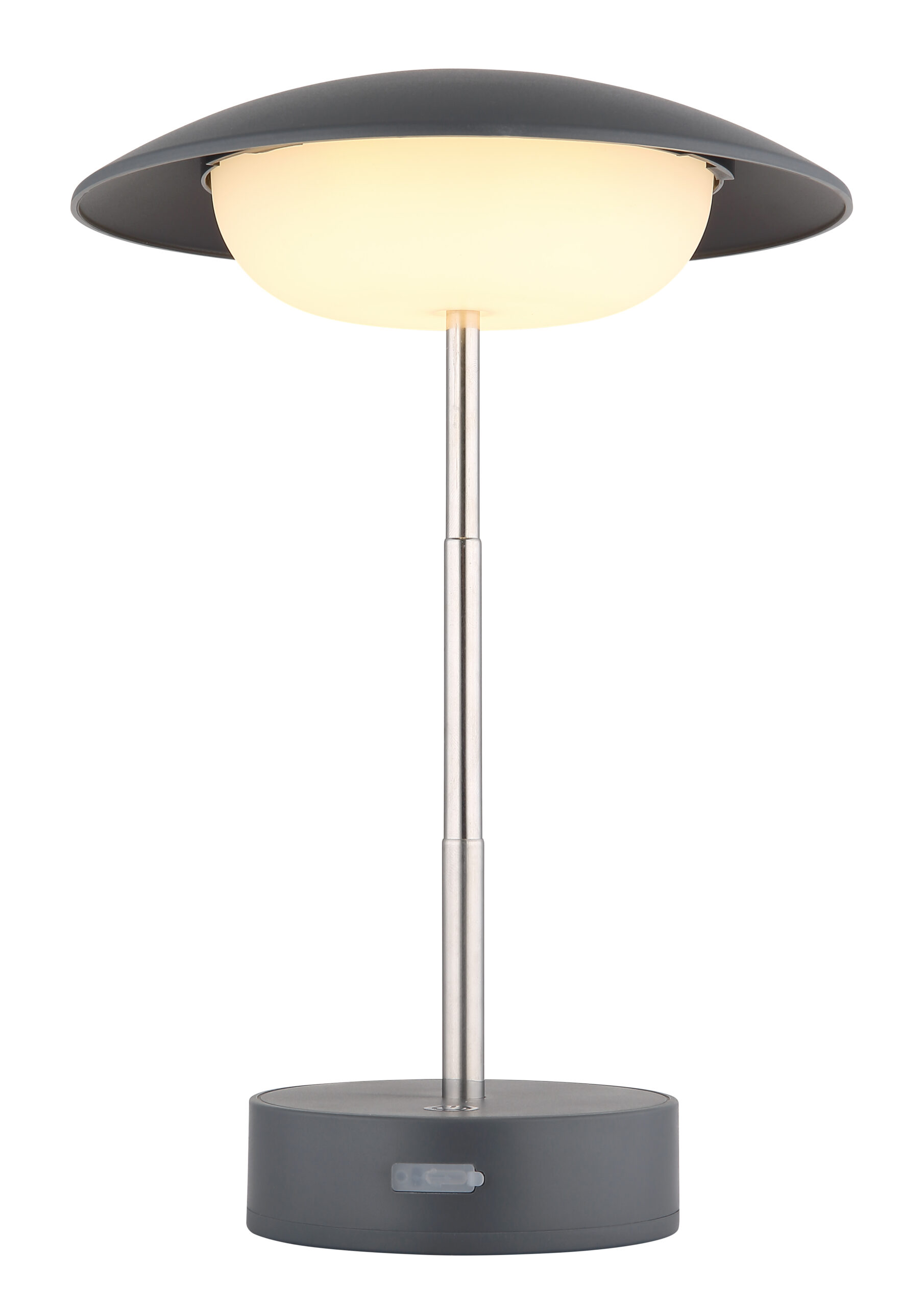 Otkrijte STOLNU LAMPU TOMO PLASTIC ANTRACITE, elegantnu okruglu stonu lampu u obliku pečurke. Tijelo je izrađeno od mat antracit plastike i nehrđajućeg čelika, dok je sjenilo izrađeno od mat antracit i opal plastike. Ova stolna lampa je opremljena praktičnim prigušivačem na dodir i dolazi sa USB kablom za punjenje. Nudi toplo bijelo svjetlo na temperaturi od 3000 K i proizvodi snagu od 40 lumena. Zahvaljujući teleskopskom dizajnu, visina svetiljke se može podesiti. Vrijeme punjenja je oko 4 sata, a vrijeme osvjetljenja je oko 6 sati, s uključenim svjetlom tokom punjenja. Ova stolna lampa nije samo funkcionalna, već je i moderan dodatak za svaku sobu, stvarajući ugodnu atmosferu.