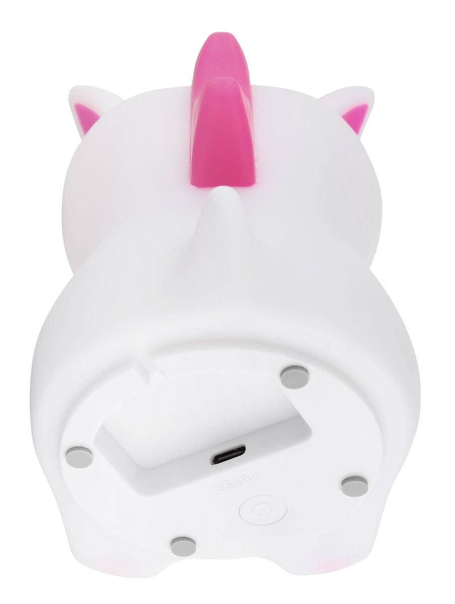 Ovaj slatki jednorog koji sjedi unosi magično svjetlo u svaku prostoriju – bilo kao noćno svjetlo u dječjoj spavaćoj sobi ili kao udobna stolna lampa. UNICORN model ima mat bijelo plastično kućište sa ružičastim detaljima. Zahvaljujući integrisanom RGBW LED-u, svetlo može da sija u različitim bojama. Boje se mogu lako fiksirati pomoću praktičnog dugmeta. Funkcija za uključivanje/isključivanje dodirom i zatamnjivač na dodir čine rad lakim. Lampa emituje nježno svjetlo od 20 lumena – idealno za umirujuću večernju atmosferu. Vrijeme osvjetljenja je cca. 5 sati, vrijeme punjenja cca. 3 sata. Zgodno: jednorog također svijetli tokom punjenja.
