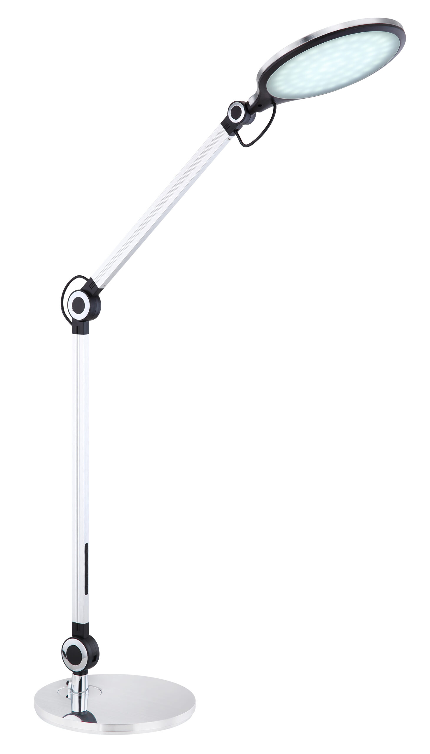 Ova oblikovana stolna lampa uvjerava svojom neutralnom kombinacijom materijala i jednostavnim dizajnom. Zahvaljujući uključenoj LED sijalici od 10 vati, ova lampa pruža do 660 lumena jakog svjetla. Spojevi su individualno podesivi i tako se glava lampe može odlično fokusirati. Sa dodirnom funkcijom i touch dimmerom, uključivanje/isključivanje ove LED lampe postaje posebno iskustvo osvjetljenja.  Boja svjetla ove stolne lampe visine 103,5 cm može se podesiti i fiksirati od tople bijele (3000 Kelvina) do hladno bijele (6000 Kelvina). Stolna lampa zasigurno će oduševiti svakog vlasnika svojim jedinstvenim šarmom.