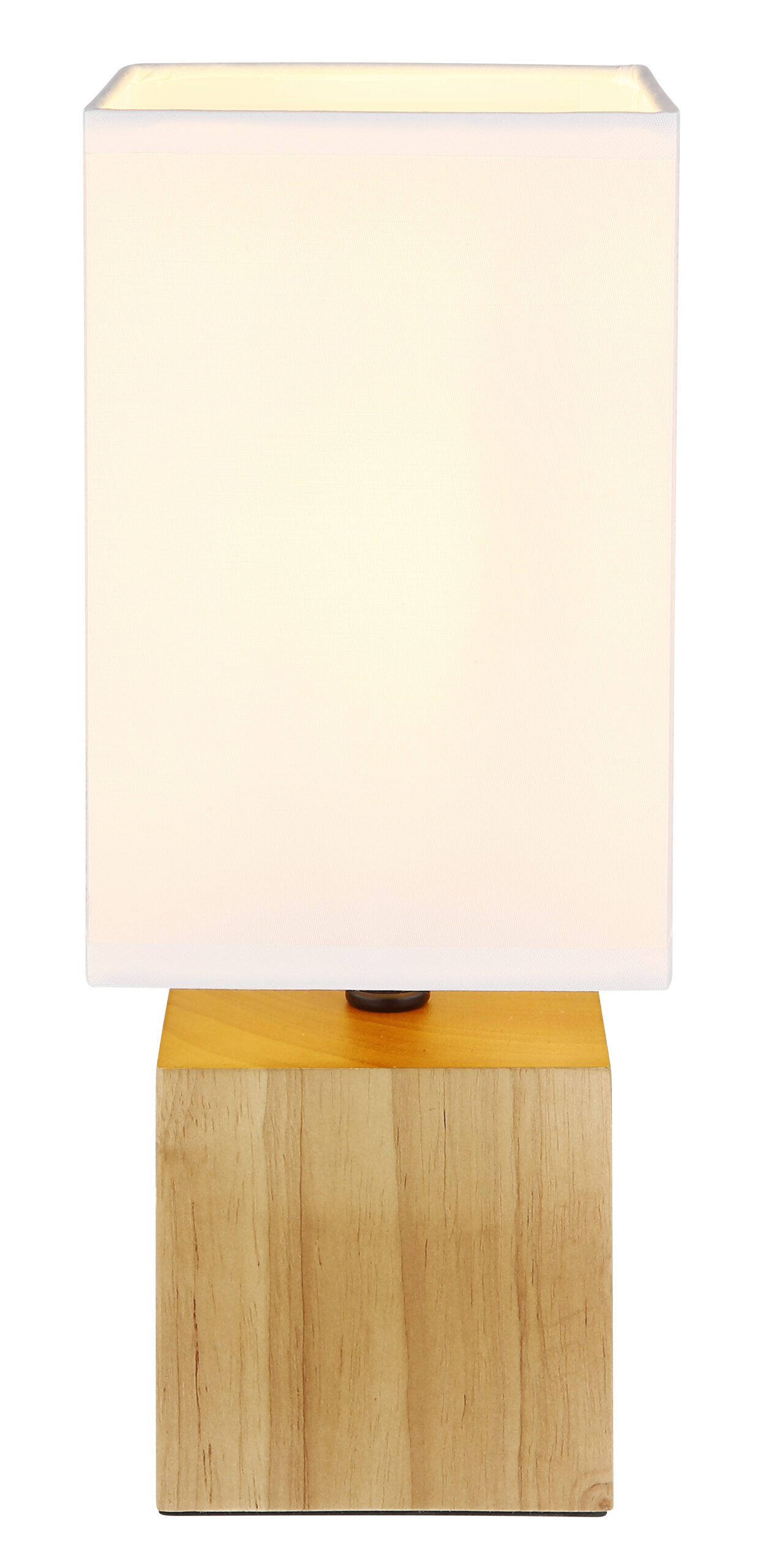 Ova moderna stolna lampa iz serije Valentino uvjerava sjajnim dizajnom. Na kocki (12 cm) od drva prirodne boje nalazi se utičnica E27 sa oblikovanom tekstilnom bojom u bijeloj boji. E27 utičnica vam omogućava da sami odlučite o boji svjetla i svjetlini do maksimalne snage od 7 vati. Zbog izdržljivosti i uštede energije preporučujemo LED sijalice.