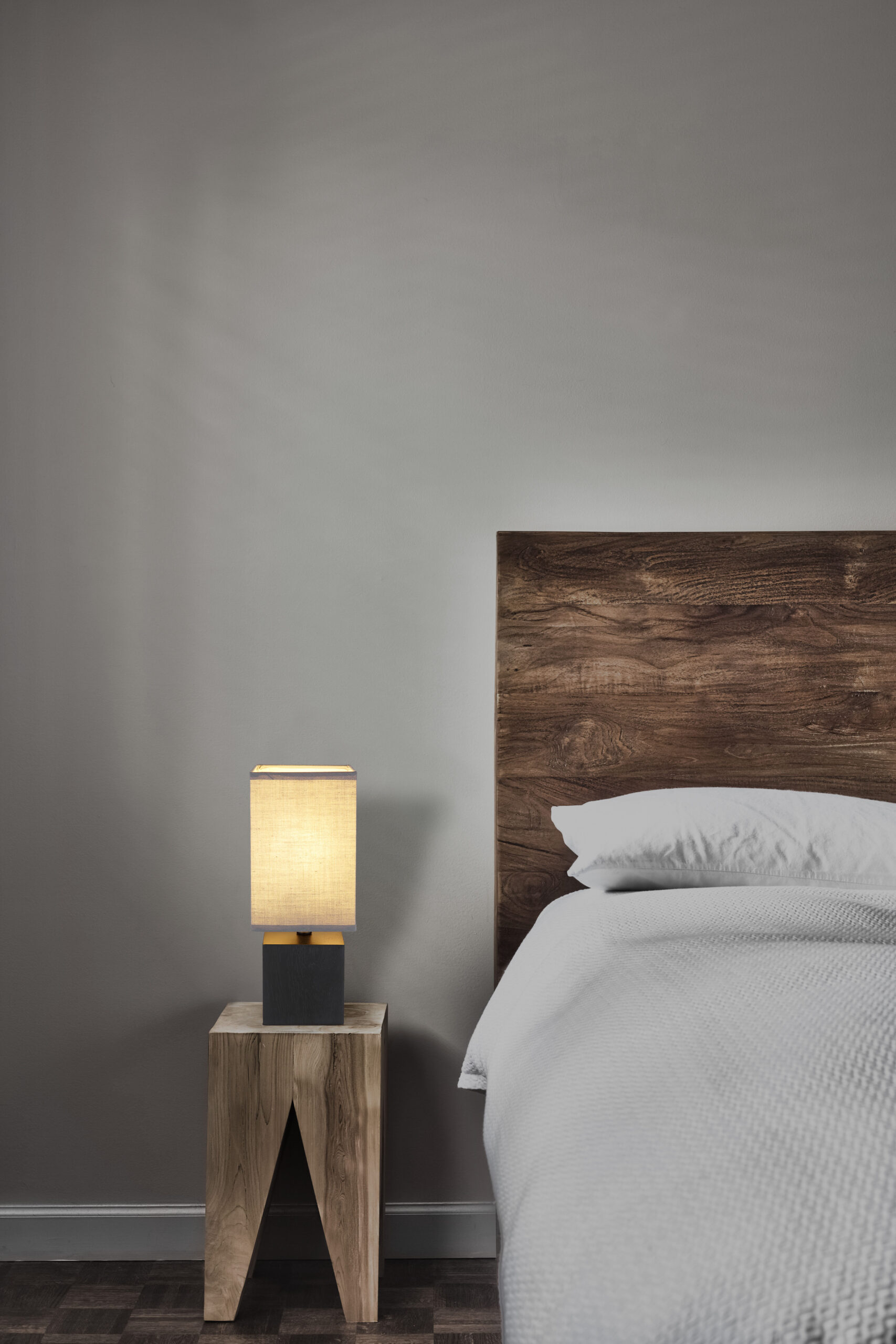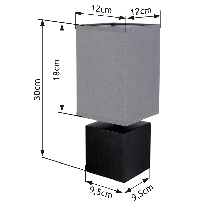 Ova moderna stolna lampa iz serije Valentino uvjerava sjajnim dizajnom. Na drvenoj kocki (12 cm) u crnoj boji nalazi se E27 utičnica sa sivom bojom u obliku tekstila. E27 utičnica vam omogućava da odlučite o boji svjetla i svjetlini do maksimalne snage od 7 vati. Zbog dugovečnosti i uštede energije preporučujemo LED sijalice.