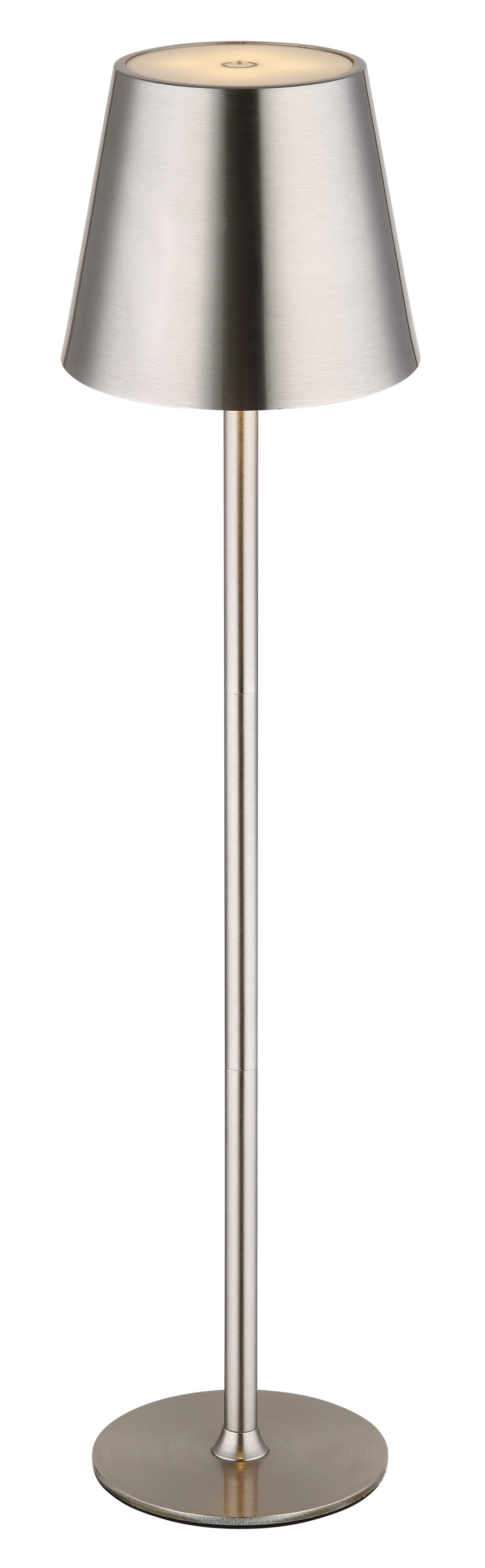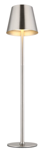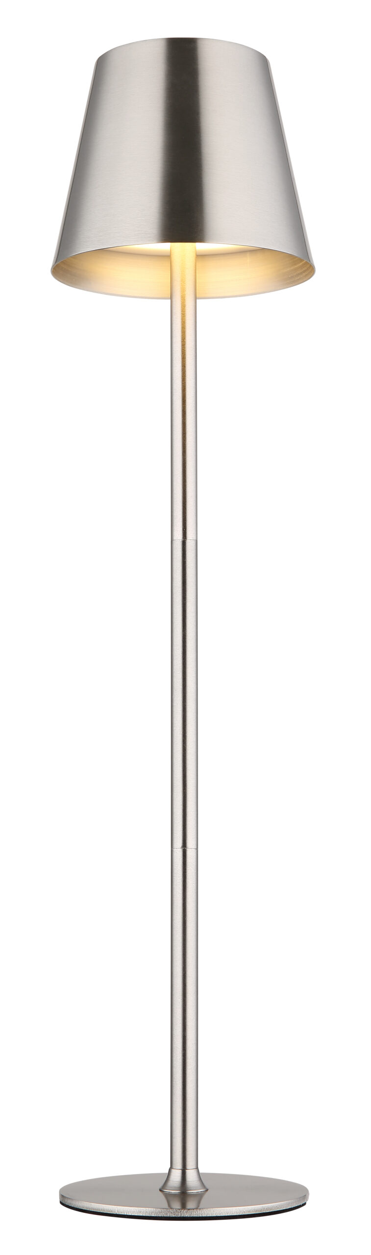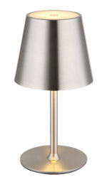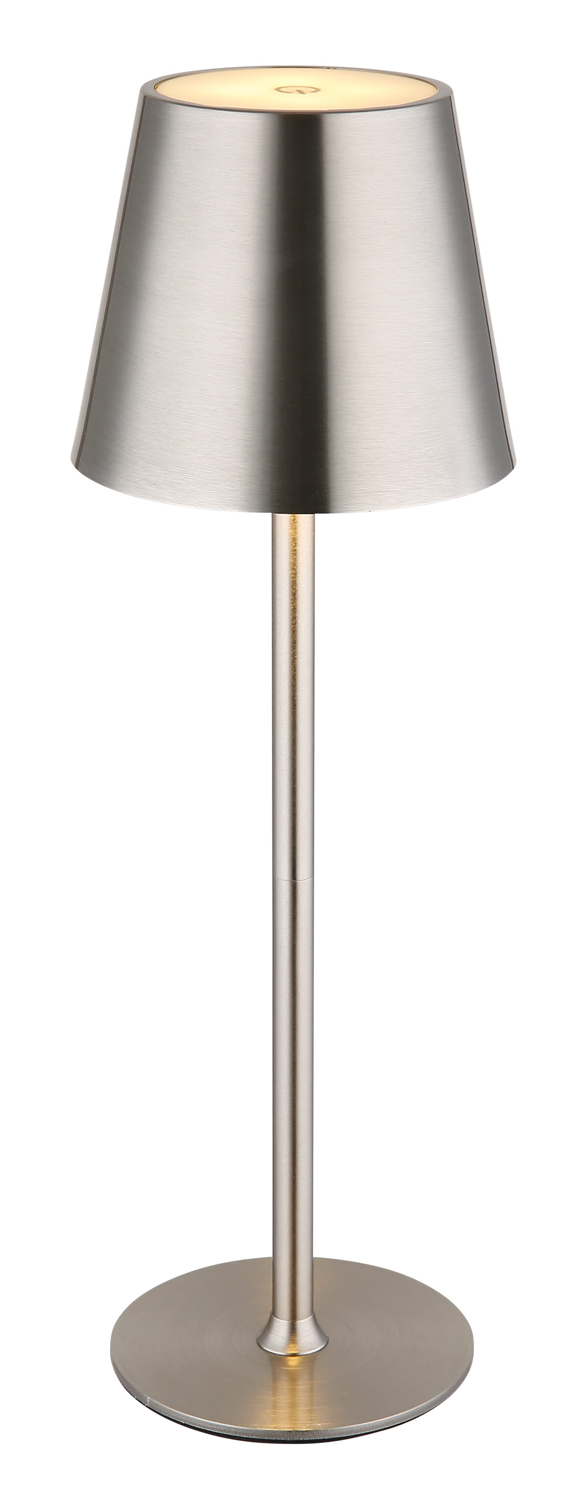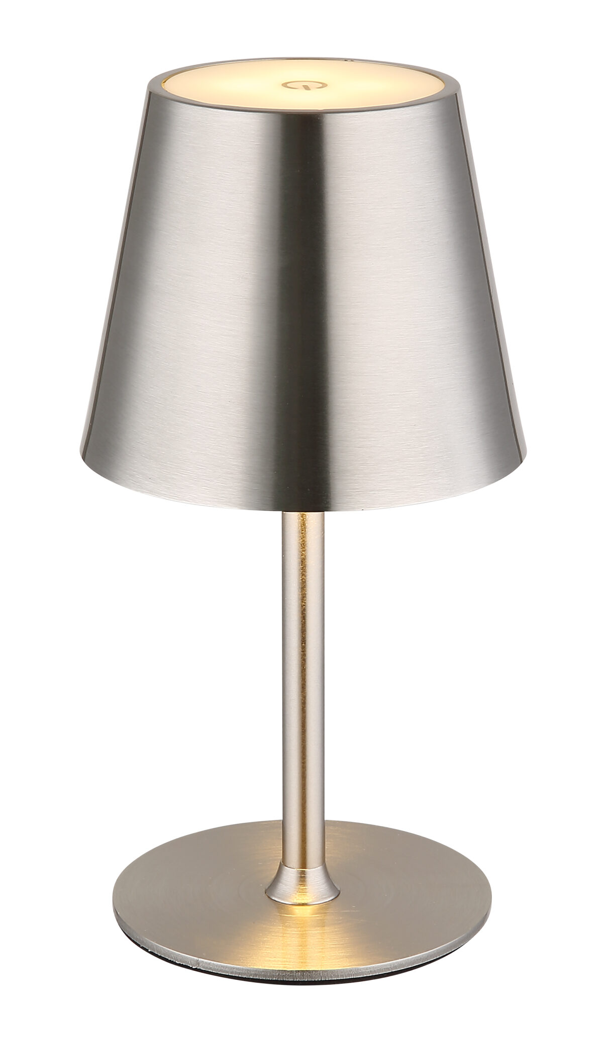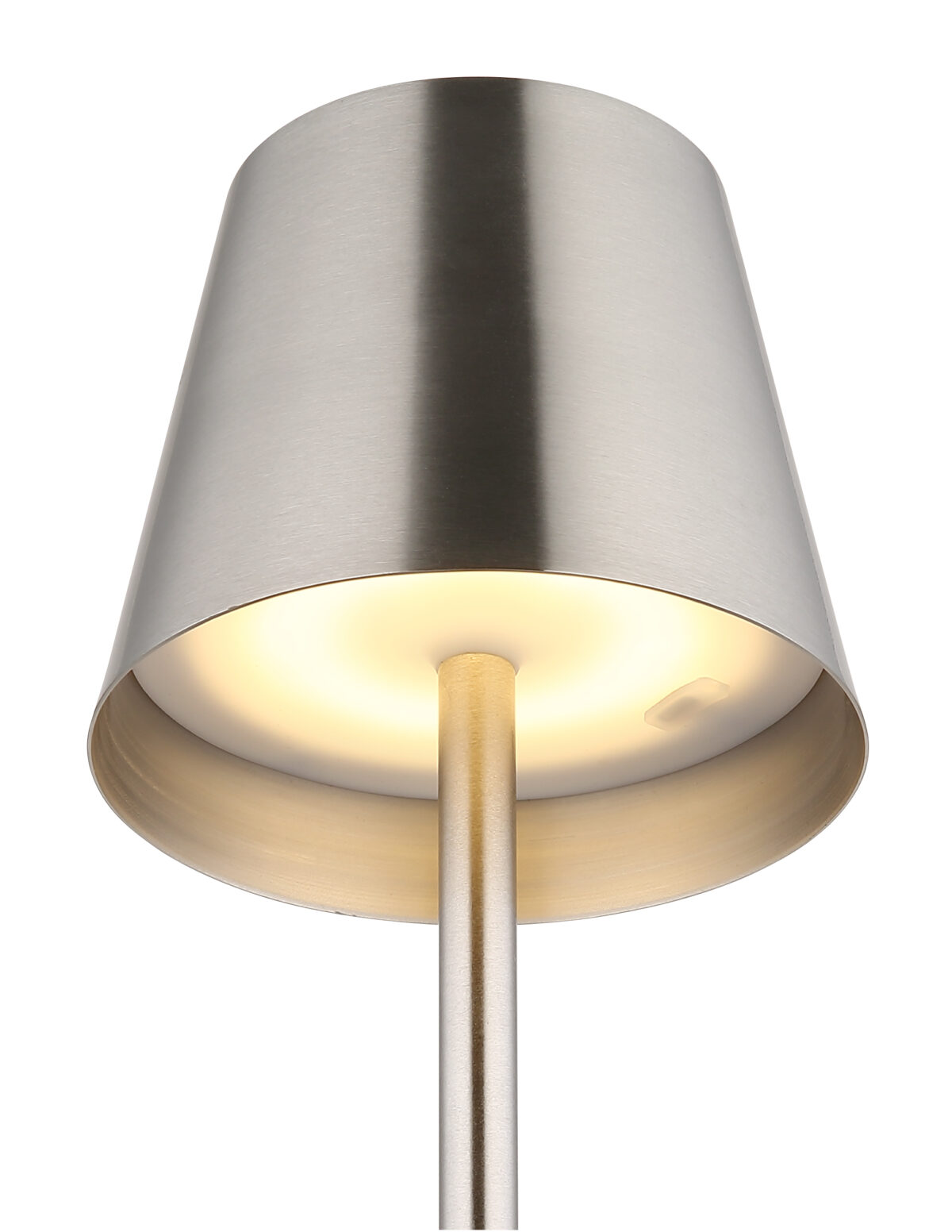 VANNIE stolna lampa nudi moderan dizajn sa podesivom visinom i beskonačnim dimerom na dodir. Tijelo od nikl-mat metala i sjenilo od mat metala i opal plastike daju lampi plemenit izgled. Sa svjetlosnom snagom od 130 lumena i 3000 K LED tehnologijom, pruža ugodno osvjetljenje. Lampa ima memorijsku funkciju, adapter i USB kabl za punjenje. Vrijeme punjenja je oko 6 sati, dok je vrijeme osvjetljenja oko 12 sati. Takođe svetli tokom punjenja.