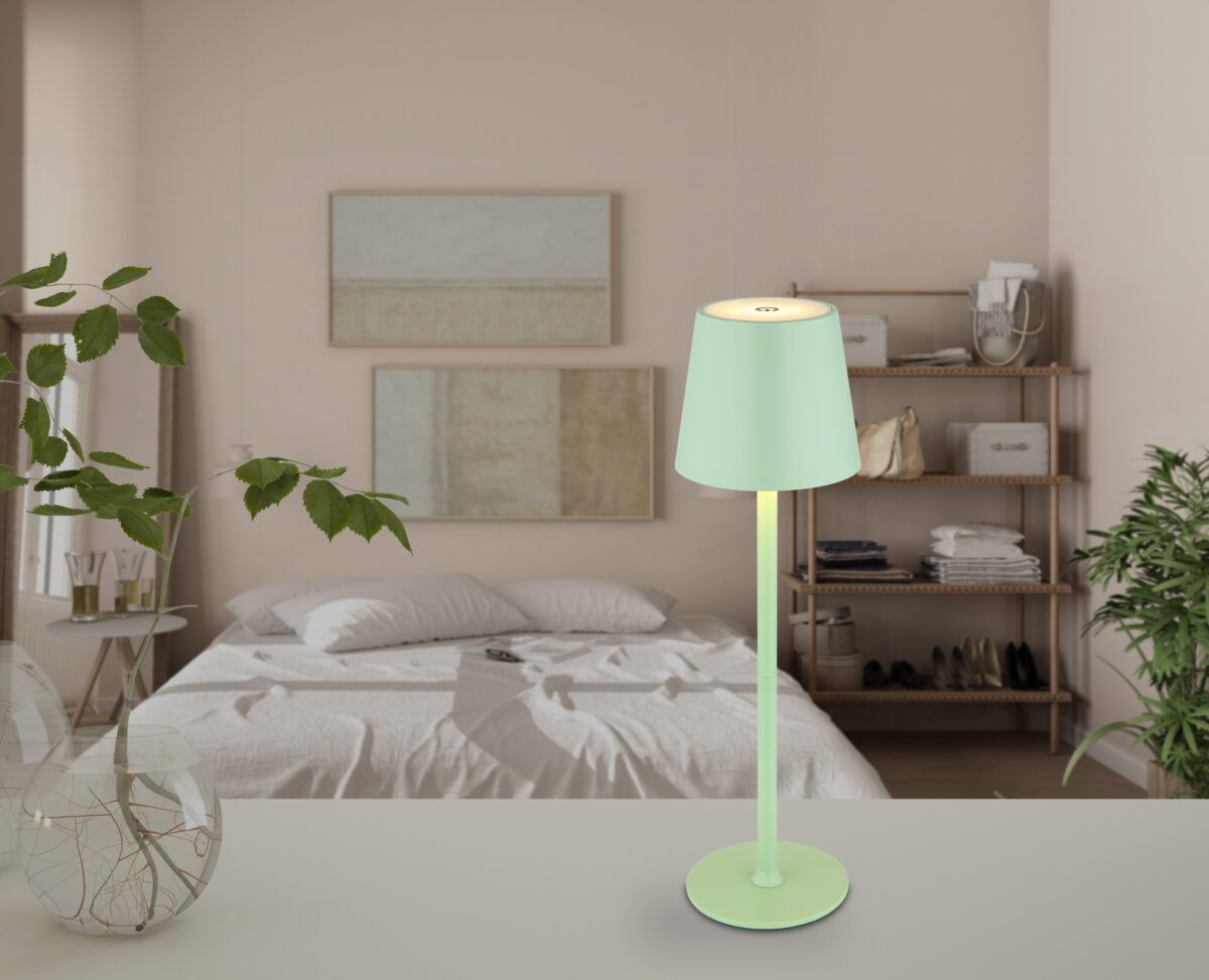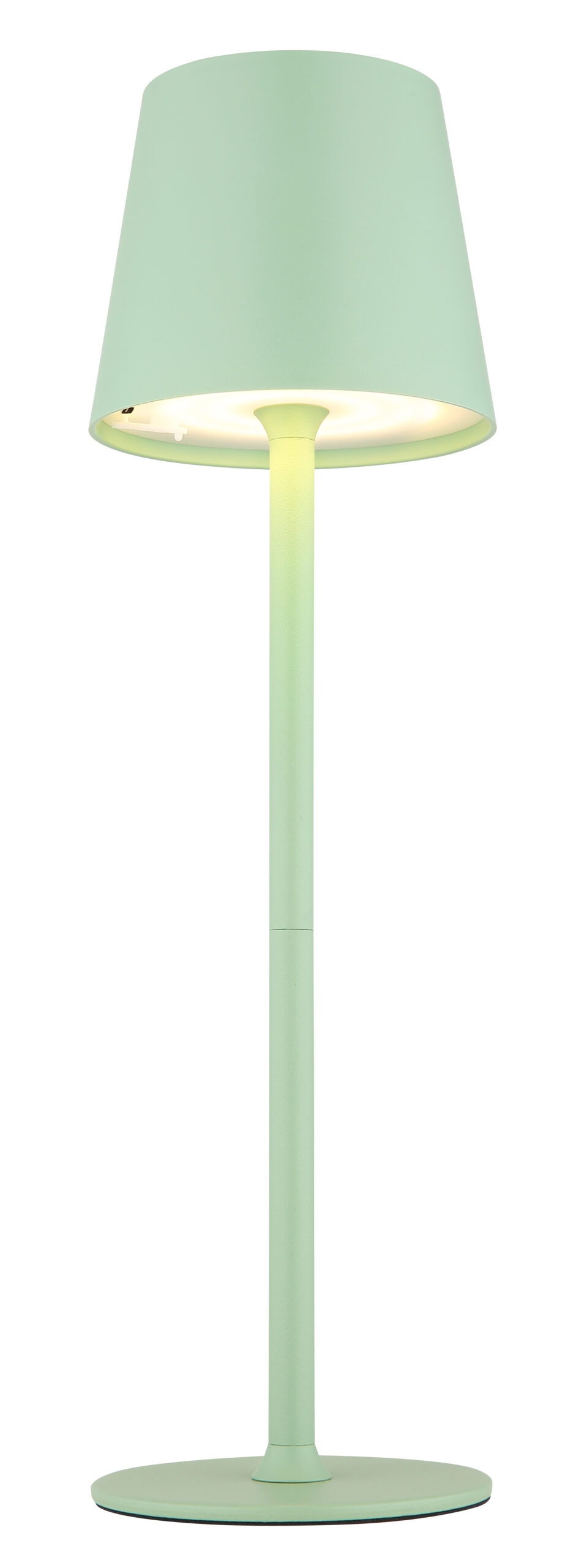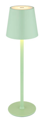 VANNIE stolna lampa je moderan dodatak svakom interijeru. Njegov elegantan dizajn s ravnom cijevi daje moderan izgled. Mat blijedozeleno metalno tijelo dodaje dašak elegancije lampi. Okrugla sjenilo izrađena je od mat blijedozelene plastike koja osigurava nježnu difuziju svjetlosti. Osim toga, sjenilo je opremljeno opal plastikom, koja ravnomjerno raspoređuje svjetlost. VANNIE stolna lampa ima beskonačni dimer na dodir i memorijsku funkciju za spremanje željenih postavki. Sa snagom od 130 lumena i svetlosnom temperaturom od 3000 K, nudi prijatno osvetljenje. Lampa se isporučuje sa USB kablom za punjenje i ima funkciju za uključivanje/isključivanje dodirom za jednostavno uključivanje i isključivanje. Vrijeme punjenja je oko 4 sata, a vrijeme osvjetljenja je između 4 i 6 sati. Sa IP44, pogodan je i za upotrebu na otvorenom.