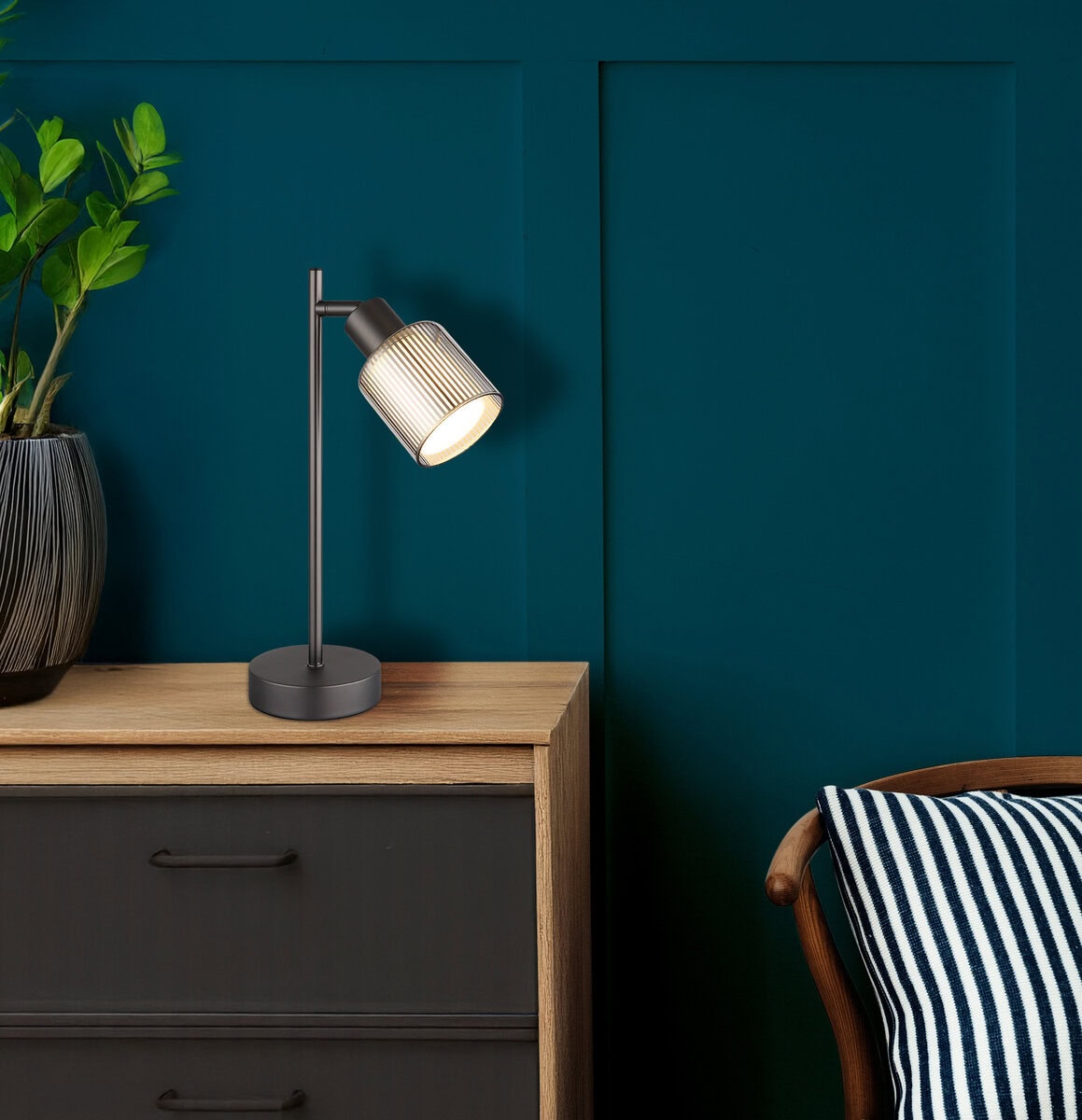 Stolna lampa VILLEGAS impresionira svojim elegantnim dizajnom i visokokvalitetnom izradom. Mat crno metalno kućište sa hromiranim detaljima daje lampi moderan i sofisticiran izgled. Hromirano staklo s jasnim ukrasnim prugama i unutrašnjim staklom stvara fascinantnu igru svjetla i elegantnog osvjetljenja. S dimenzijama od 210 mm dužine i 110 mm širine, VILLEGAS je kompaktan i idealan za stolove, noćne ormariće ili komode. Integrisani prekidač na kablu omogućava lak i praktičan rad. Lampa je dizajnirana za E14 sijalice (nisu uključene), što vam omogućava da individualno odaberete boju svjetla i svjetlinu. VILLEGAS kombinuje klasičnu eleganciju sa modernom funkcionalnošću, stvarajući ugodnu atmosferu u svakoj prostoriji. Ova stolna lampa je savršen izbor za one koji cijene dizajn i fleksibilnost u svojoj rasvjeti.