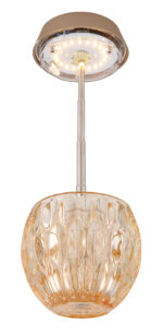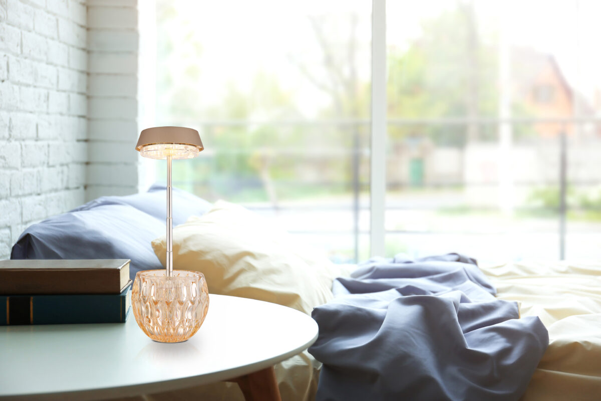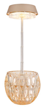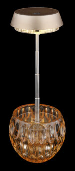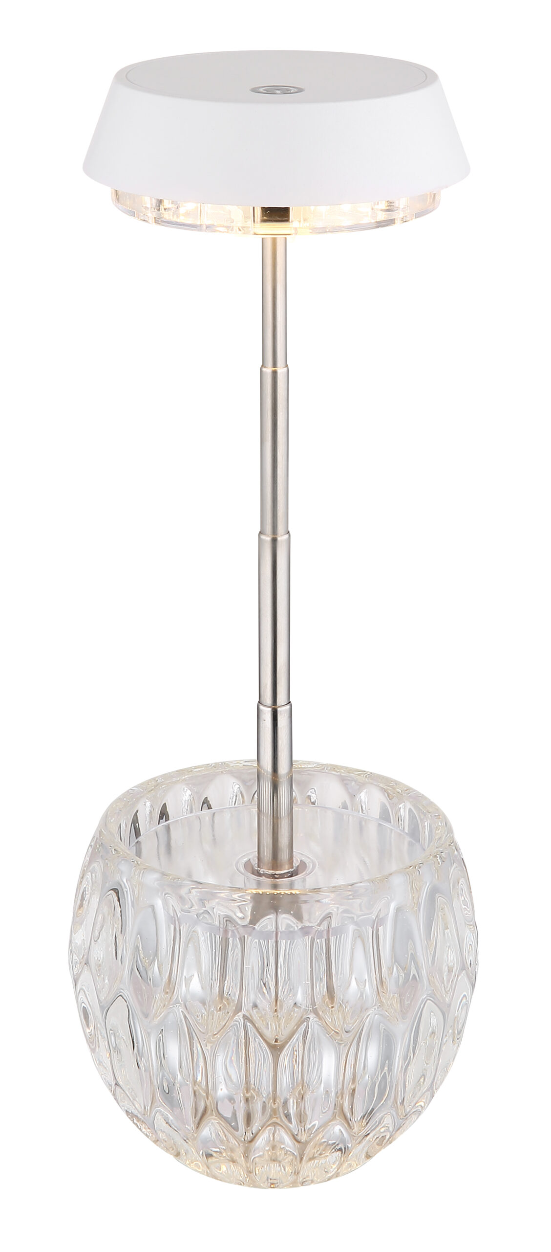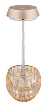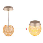 WANDA stolna lampa kombinuje elegantan dizajn sa praktičnom funkcionalnošću. Njegovo okruglo tijelo napravljeno od jantarnog stakla i izgleda od nehrđajućeg čelika daje poseban štih svakoj prostoriji. Sjenilo izrađeno od mat boje šampanjca i prozirne plastike osigurava ugodnu distribuciju svjetlosti. Pomoću dimera na dodir možete kontinuirano regulisati svjetlinu od 55 lumena pri temperaturi boje od 3000 K. Svetiljka je opremljena teleskopom koji omogućava fleksibilno podešavanje visine. Dolazi sa adapterom i USB kablom za punjenje, a vrijeme punjenja je oko 4 sata. Nakon punjenja, WALL LIGHT PLASTIC WHITE nudi vrijeme osvjetljenja od oko 6 sati i može se koristiti tokom punjenja. Idealna za moderne životne prostore, ova stolna lampa stvara ugodnu atmosferu svojim toplim svjetlom i atraktivnim dizajnom kristalnog izgleda.