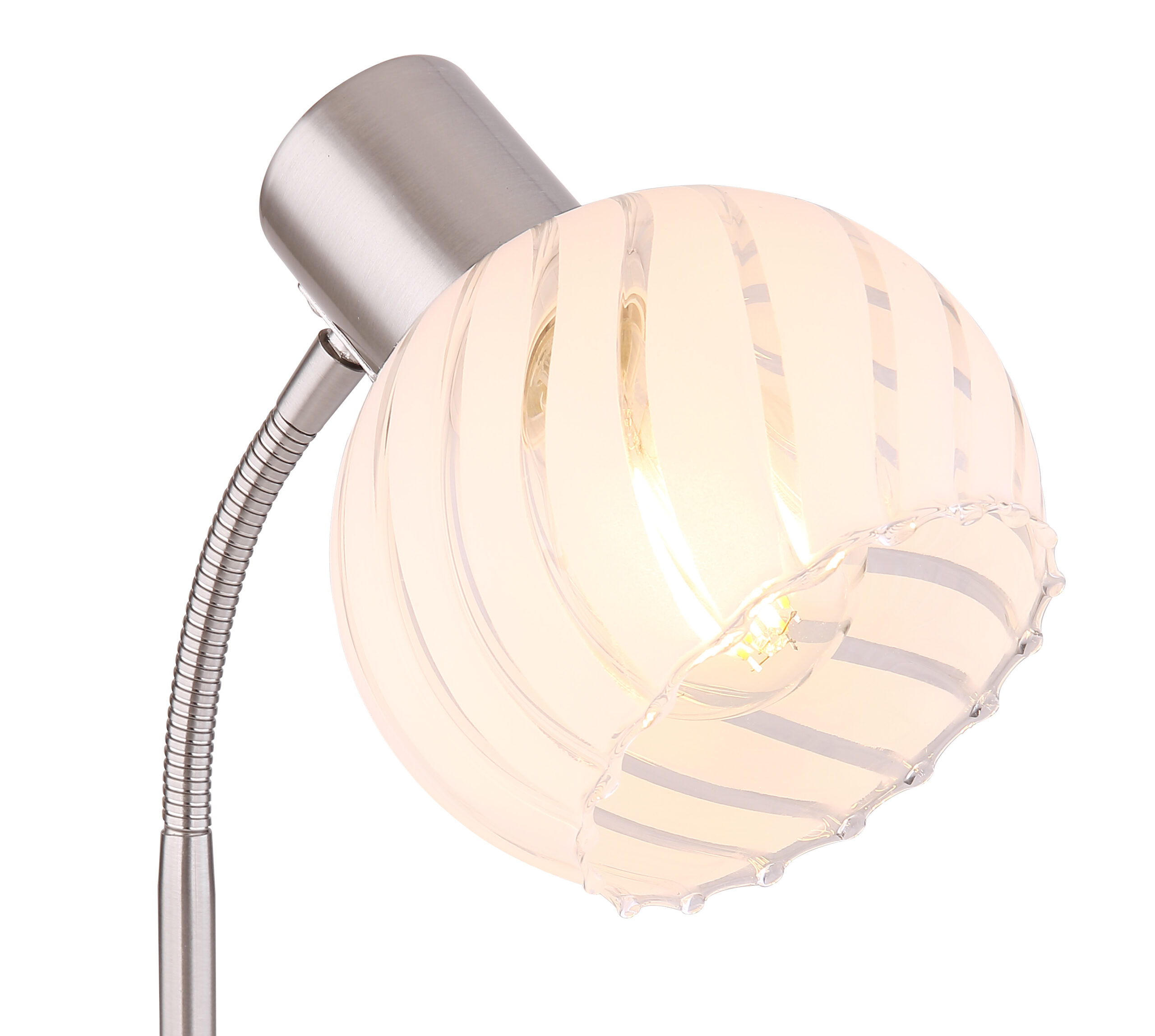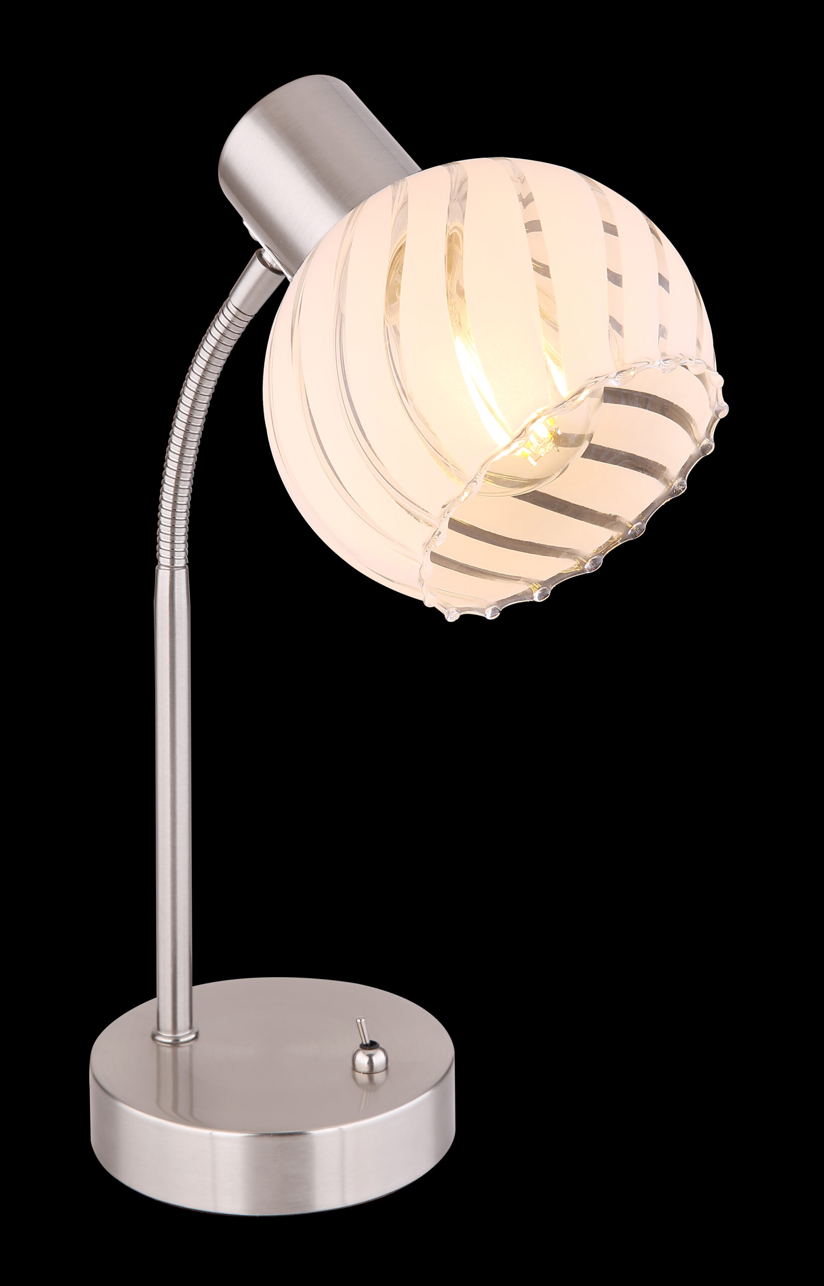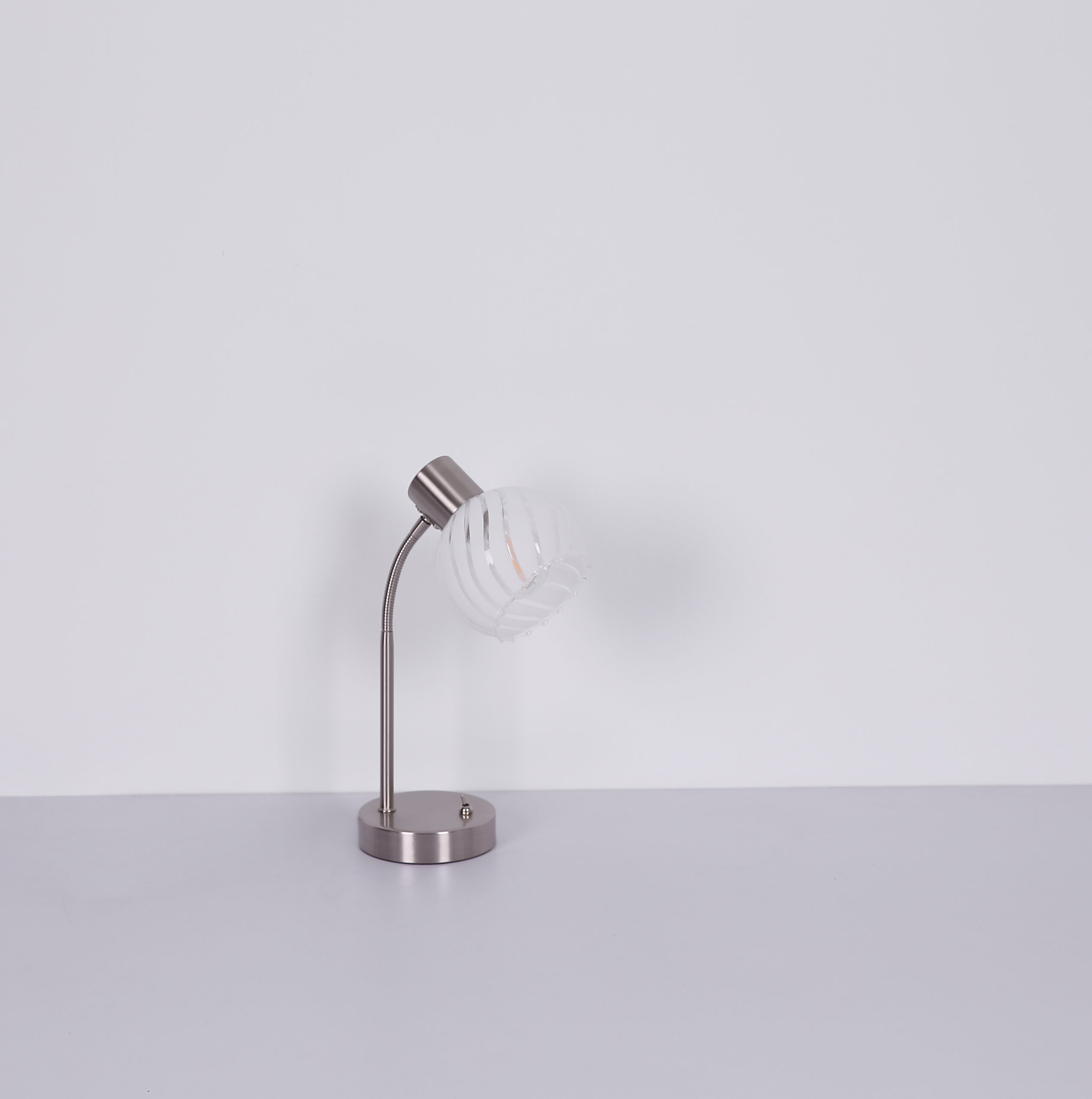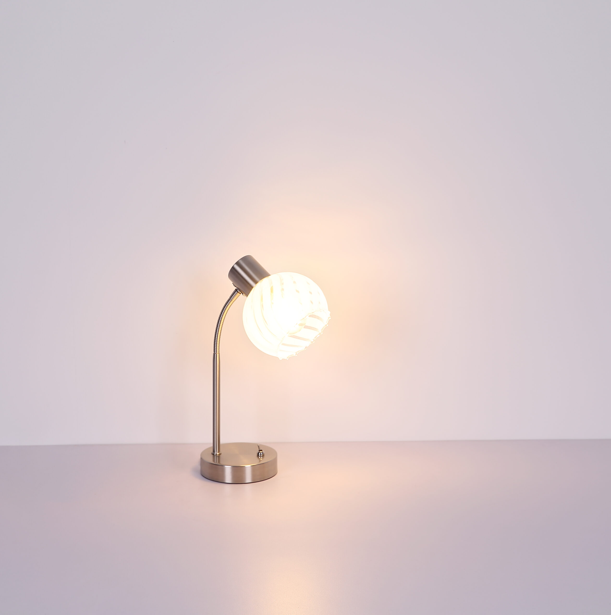 Stolna lampa ove serije proizvoda WILLY uvjerava kombinacijom dizajna i izrade. Kombinacija materijala nikl-mat metala i sfernog prozirno-bijelog stakla sa žljebovima i prugama pruža odličan izgled. Spot je opremljen E27 grlom, koji vam omogućava da sami odredite sijalicu (max.40W) kako biste se odlučili za intenzitet svjetlosti i boju svjetla. Štaviše, ova stona lampa ima prekidač za uključivanje/isključivanje i kabl dužine 1,5m, što omogućava fleksibilnu promenu položaja ove lampe. Sa drugim modelima iste serije proizvoda možete upotpuniti sliku u svojim sobama.