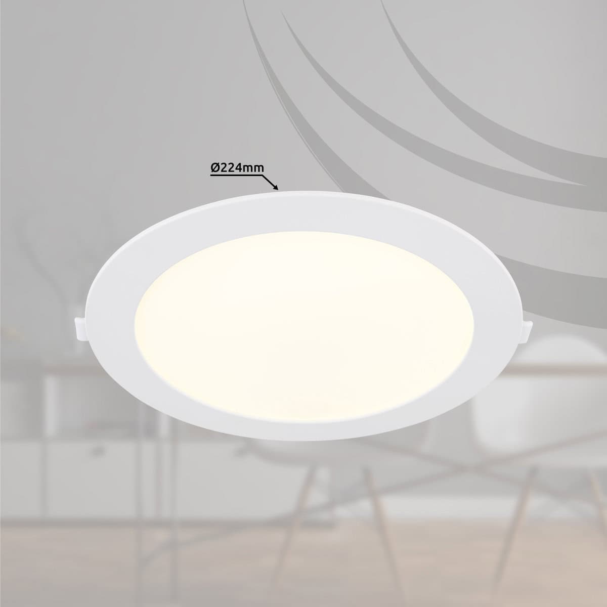 Ova ugradbena svjetiljka pruža neutralno svjetlo od 4000 Kelvina i stvara ugodnu atmosferu. Napravljena od bijele plastike, lampa ima prečnik od 12,8 cm i emituje efektivnih 1500 lumena.