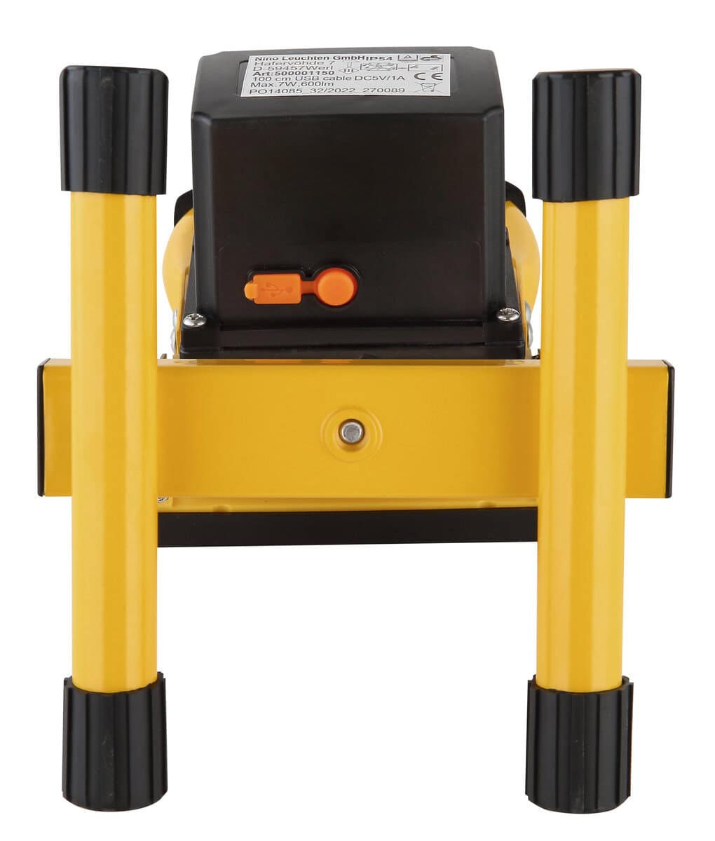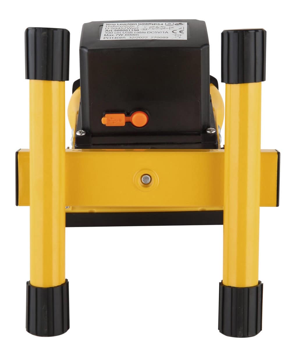 Mali pravougaoni reflektor u žutoj boji je praktična i svestrana vanjska lampa. Tijelo konstrukcijskog reflektora izrađeno je od robusnog tlačno livenog aluminija u žutoj i mat crnoj plastici. Prozirno staklo sjenilo osigurava efikasnu distribuciju svjetlosti. Vanjska lampa je opremljena dugmetom i dolazi sa USB kablom za punjenje. Sa dužinom od 145 mm i širinom od 164 mm, konstrukcijski reflektor je kompaktan i svjetliji nego što se čini na prvi pogled. Snaga je 7W sa svjetlosnom snagom od 600 lumena i svjetlosnom temperaturom od 6500K. Vanjska lampa se može montirati na zid ili koristiti za stajanje. Vrijeme osvjetljenja je oko 2 sata, a klasa zaštite je IP54, koja štiti vanjsko svjetlo od prskanja vode i prašine. Ovaj mali žuti reflektor idealan je za vanjsku rasvjetu i stvara atmosfersku atmosferu.