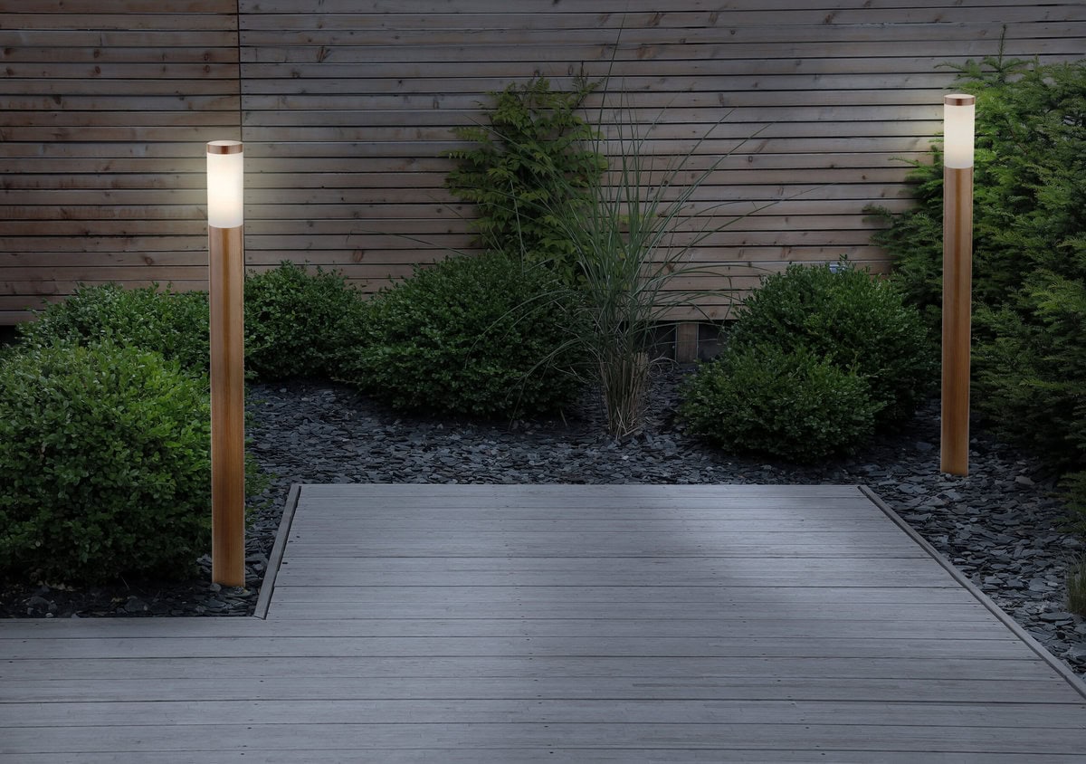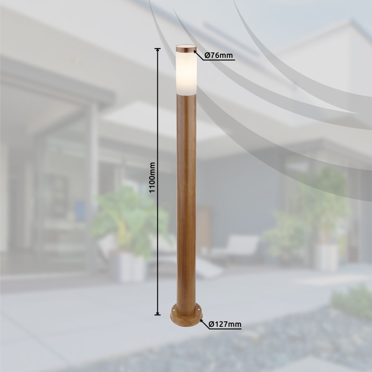 Ova vanjska lampa iz serije Boston (ø 12,7 cm) je prekrasan dodatak vašoj terasi, vrtu ili balkonu. Vanjska svjetiljka od 110 cm sastoji se od cilindra od nehrđajućeg čelika u izgledu drveta, koji se može praktično pričvrstiti na ravne površine i opremljen je opal plastikom. Ovo pokriva grlo E27, koje možete opremiti odgovarajućom sijalicom po vašem izboru, koja vam omogućava da individualno odredite boju svjetla i svjetlinu. Sa drugim modelima iz iste serije možete upotpuniti cjelokupnu sliku vašeg vanjskog prostora i pružiti moderan ambijent.