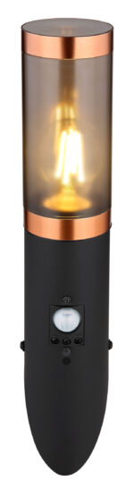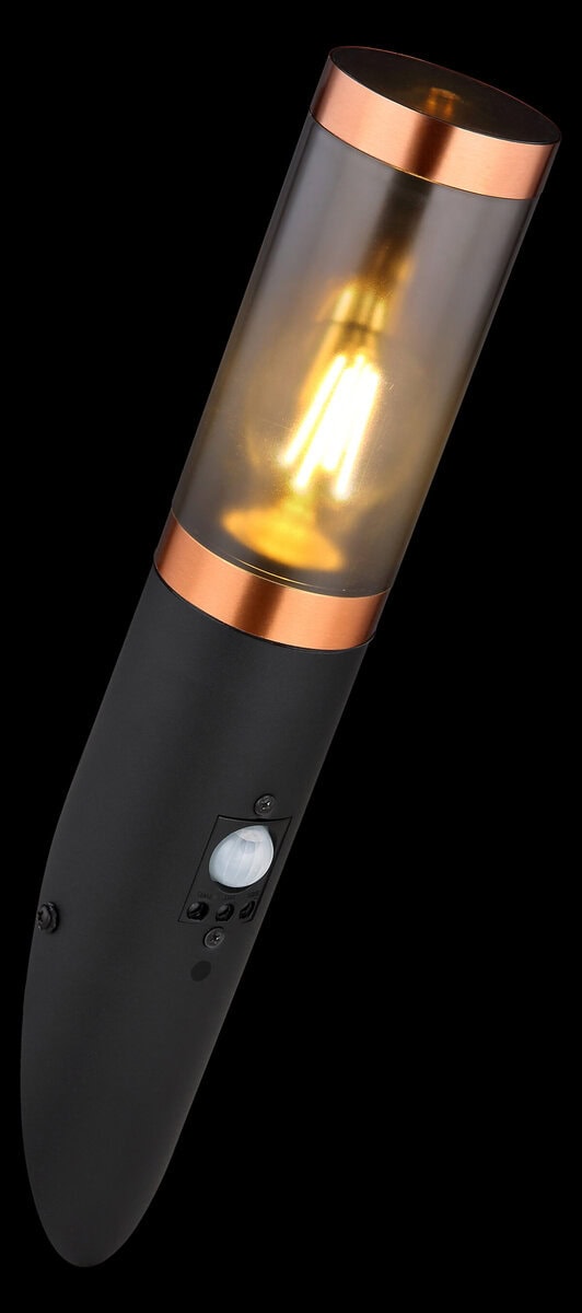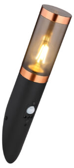 Ova elegantna vanjska zidna lampa iz serije Boston odlikuje se svojim stilskim dizajnom i odličnom izradom. Oblikovana vanjska lampa je idealna za upotrebu na otvorenom zbog svog IP44 stepena zaštite. Ovaj model je izrađen od crnog nerđajućeg čelika i plastike u antracit boji i ukupne je veličine 41 cm sa prepustom od 17 cm. Lampa je opremljena sa E27 grlom i omogućava vam da koristite izvor svjetlosti (maks. 15W) po vašem izboru. Zbog uštede energije i dugovečnosti preporučujemo LED lampe. Dodatna prednost je integrisani detektor pokreta (90°) sa dometom od 2 do 8 metara. Sa drugim osnovnim lampama i zidnim lampama iz iste serije proizvoda možete upotpuniti sliku.