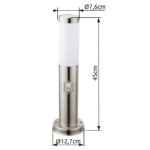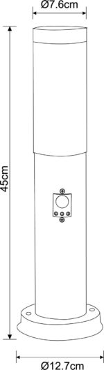 Ovu elegantnu baznu lampu iz serije Boston odlikuje stilski dizajn i odlična izrada. Oblikovana vanjska lampa je idealna za upotrebu na otvorenom zbog svog IP44 stepena zaštite. Ovaj model je izrađen od nehrđajućeg čelika i opal plastike i ukupne je veličine 45 cm. Lampa je opremljena grlom E27 i omogućava vam da koristite sijalicu (maks. 60W) po vašem izboru. Zbog uštede energije i dugovečnosti preporučujemo LED lampe. Dodatna prednost je integrisani detektor pokreta (90°) sa dometom do 9 metara. Sa drugim osnovnim lampama i zidnim lampama iz iste serije proizvoda možete upotpuniti sliku.