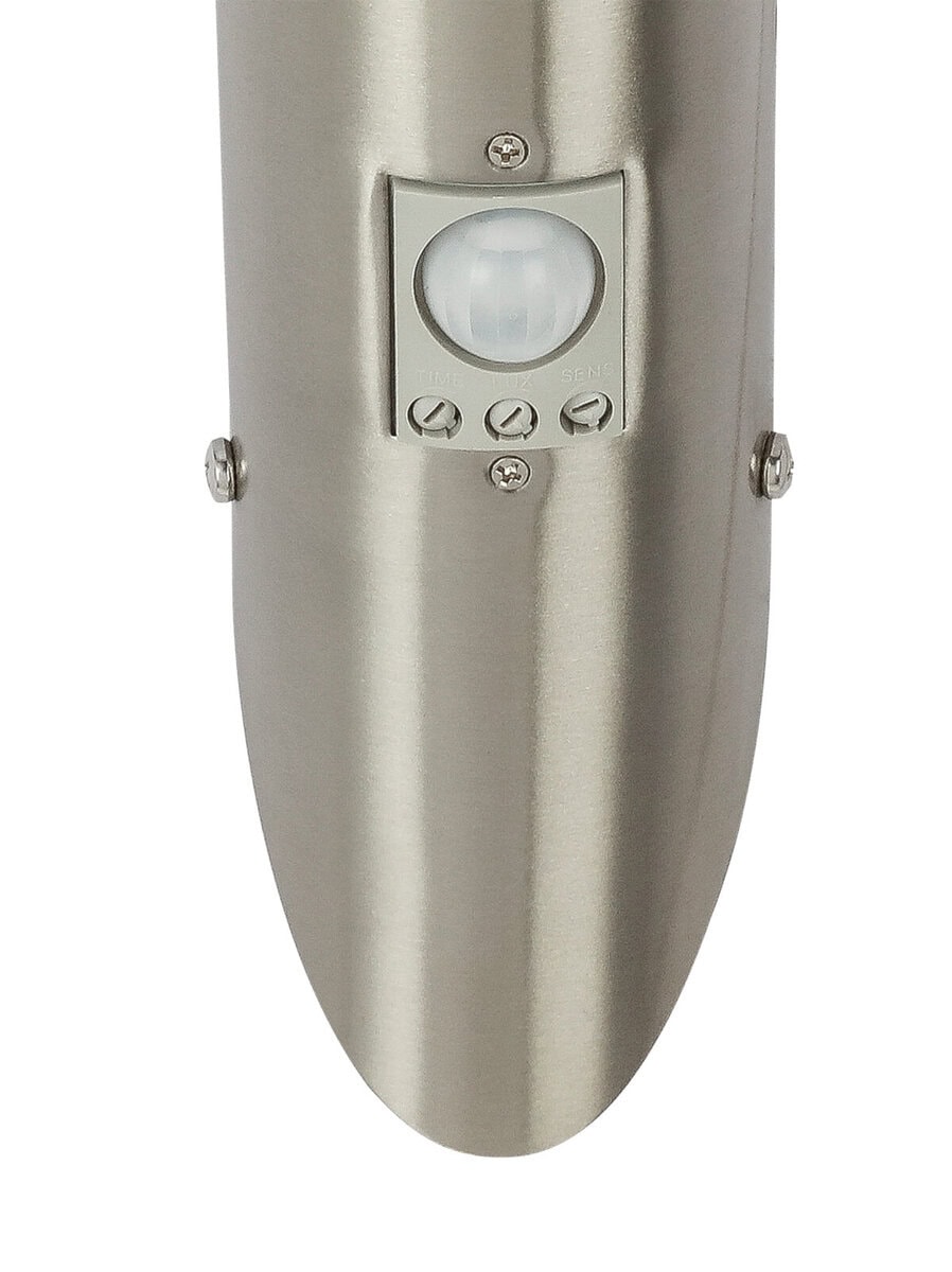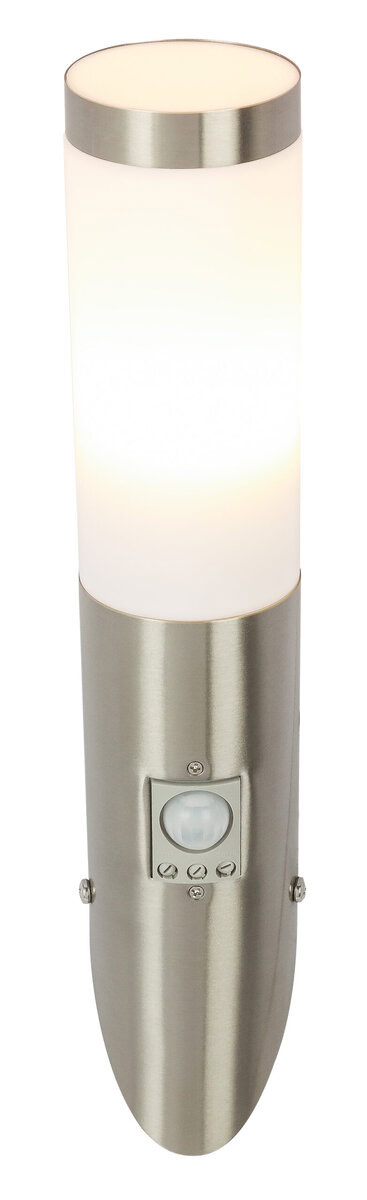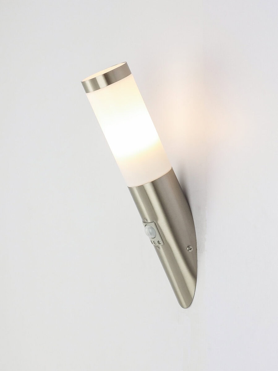 Zidna lampa Boston postiže rezultate svojim klasičnim dizajnom. Ova vanjska lampa je izrađena od nehrđajućeg čelika i opal plastike i ima ugrađen detektor pokreta (90°, domet 0-9 metara). E27 grlo opremljeno LED sijalicom od 8,5 W pruža 500 lumena jakog svjetla sa prijatnom toplom bijelom bojom svjetlosti od 3000K. Sa svojim IP44 stepenom zaštite, ova lampa za terasu je apsolutno pogodna za spoljašnju upotrebu.