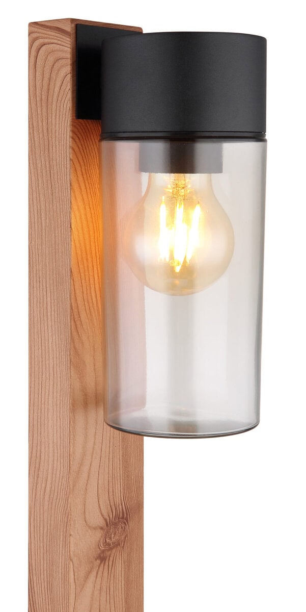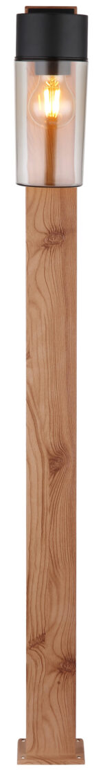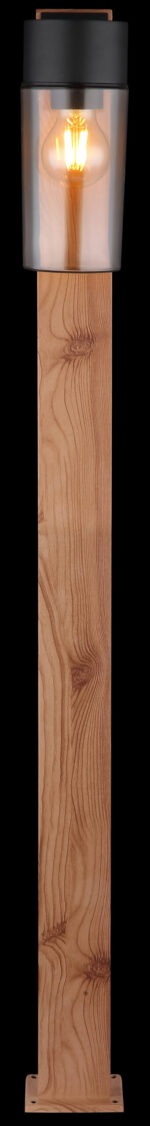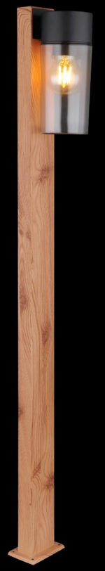 Ova sjajna vanjska lampa impresionira svojim modernim dizajnom. Na pravokutnoj gredi visine 1 m u izgledu drveta je cilindrična, zadimljena staklena sjenila s ukrasima od nehrđajućeg čelika i E27 nastavkom. E27 utičnica vam omogućava da sami odredite boju svjetla i svjetlinu do maksimalne snage od 40 vati. Zbog dugovečnosti i uštede energije preporučujemo LED sijalice.