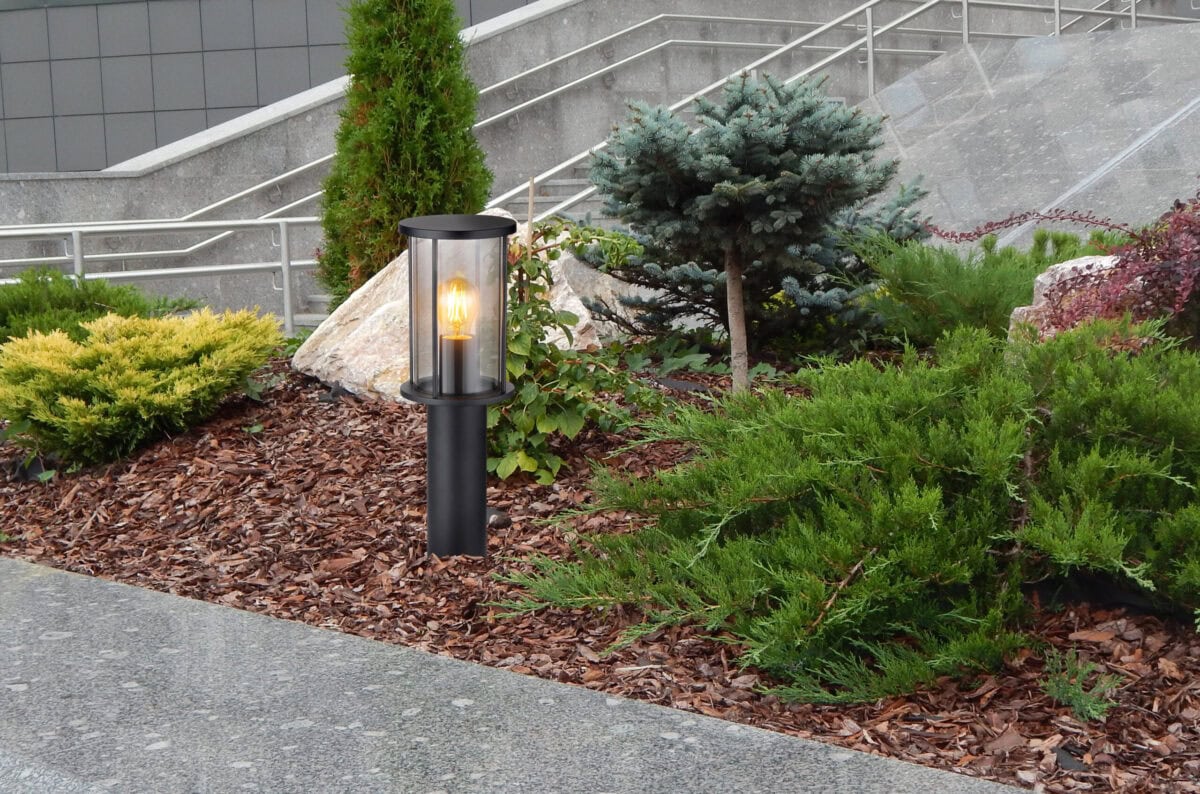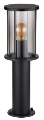 Vanjska lampa serije GRACEY ima kućište izrađeno od crnog mat nehrđajućeg čelika i stakleno sjenilo u boji dima. Metalne šipke koje okružuju sjenilo su također mat crne. Stepen zaštite svetiljke je IP54. Dimenzije lampe su ø143mm x H450mm. Lampa je namijenjena za žarulju sa žarnom niti E27 sa maksimalno 60W i 230V. Ovo nije uključeno u obim isporuke i mora se kupiti zasebno.