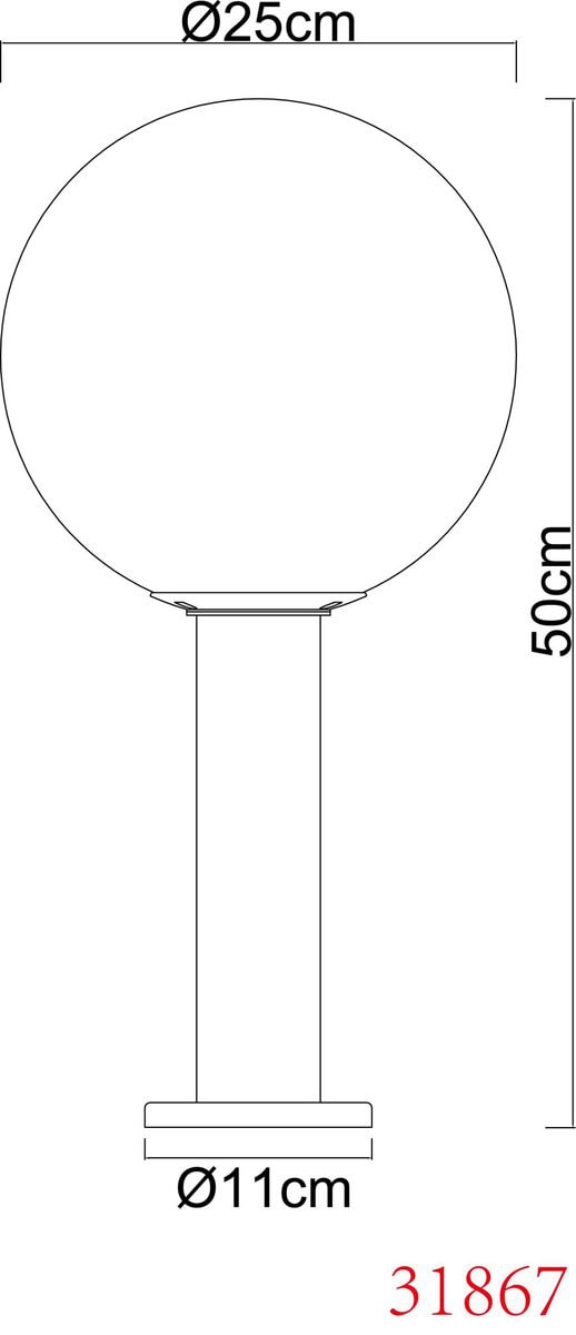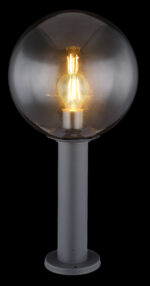 Ova vanjska svjetiljka iz serije Hedwig (ø 25 cm) uvjerava svojim jednostavnim dizajnom od livenog aluminija u boji antracita. Vanjska svjetiljka od 50 cm može se odlično pričvrstiti na ravne površine zahvaljujući jednostavnom postolju. Osim toga, ima zadimljenu staklenu kuglu, koja pokriva E27 grlo lampe. Možete ih opremiti odgovarajućom LED sijalicom po vašem izboru, što vam daje mogućnost da individualno odredite boju svjetla i svjetlinu. S više članaka iz iste serije možete upotpuniti cjelokupnu sliku vašeg vanjskog prostora.