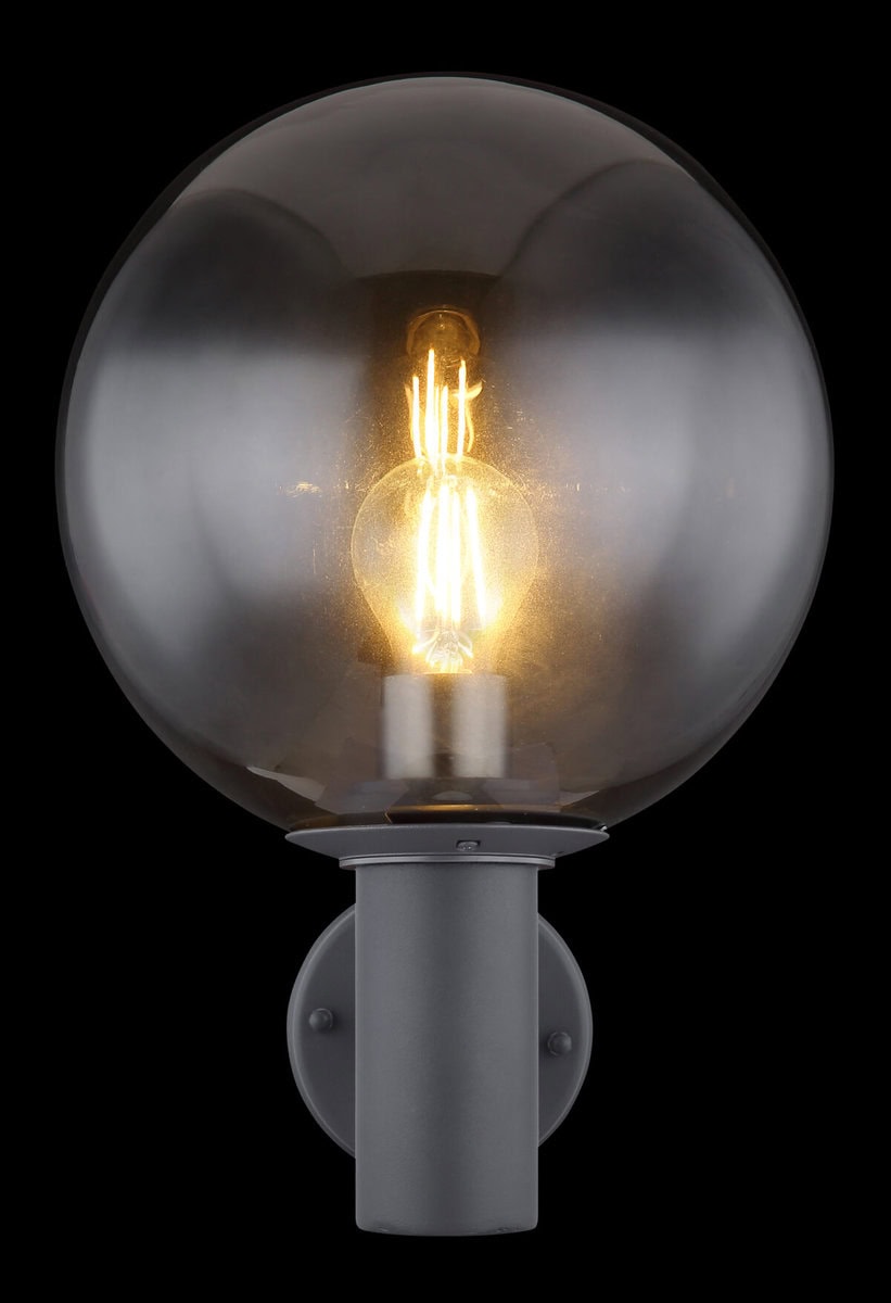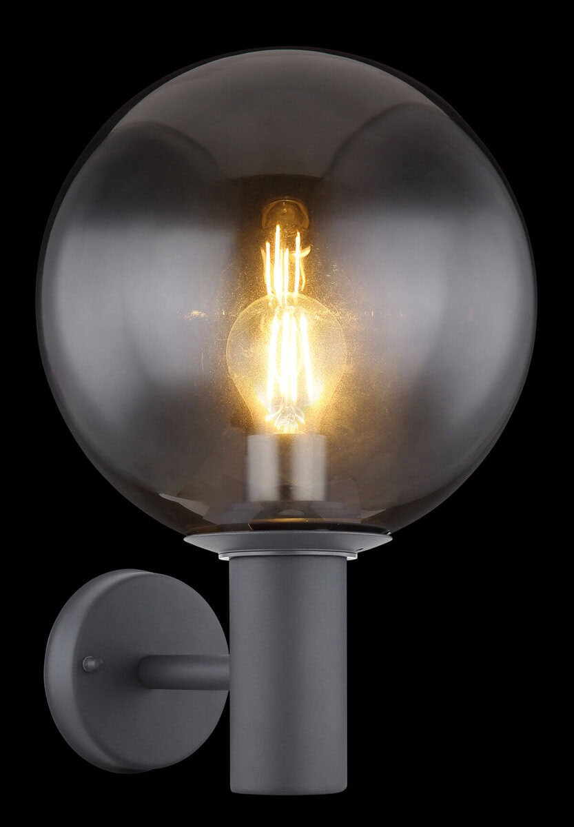 Ova vanjska lampa iz serije Hedwig (ø 25 cm) uvjerava svojim jednostavnim dizajnom od nehrđajućeg čelika boje antracita. Vanjska svjetiljka od 37 cm ima zadimljenu staklenu kuglu koja pokriva E27 grlo svjetiljke. Možete ih opremiti odgovarajućom LED sijalicom po vašem izboru, što vam daje mogućnost da individualno odredite boju svjetla i svjetlinu. S više članaka iz iste serije možete upotpuniti cjelokupnu sliku vašeg vanjskog prostora.