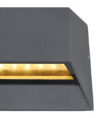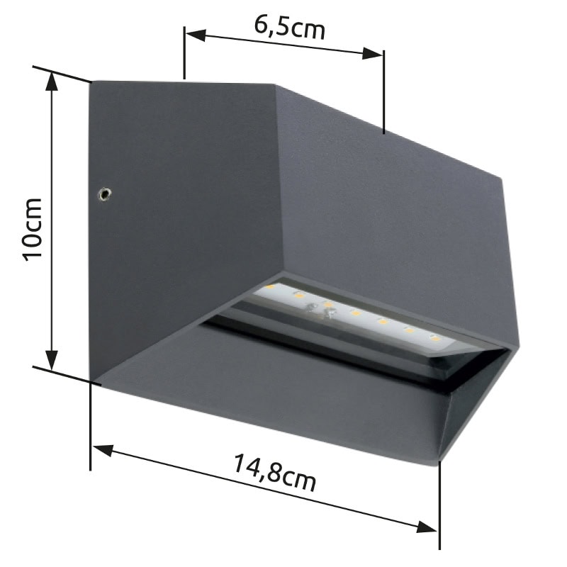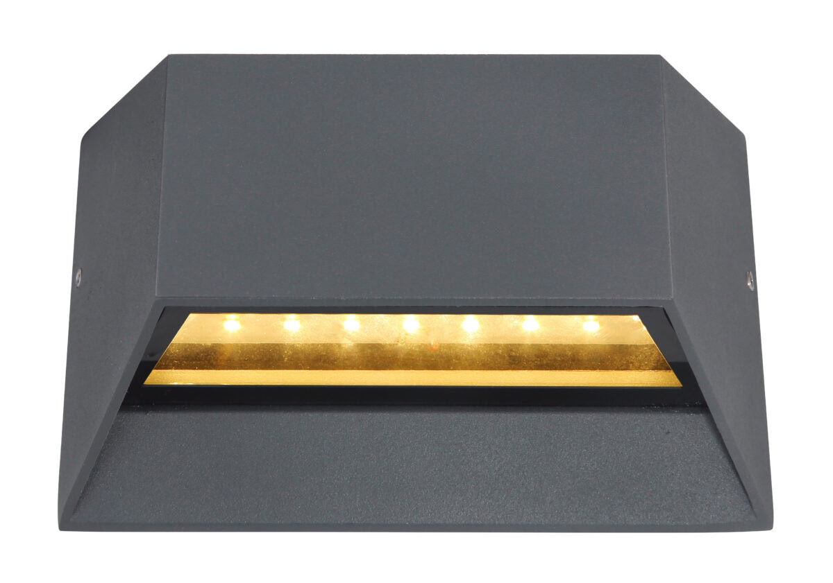 Ova vanjska zidna svjetiljka iz Honna serije (stepen zaštite IP54) uvjerava svojim elegantnim dizajnom od livenog aluminija u boji antracita. Ima pravougaonu osnovu koja se skuplja u obliku lijevka prema prednjoj strani. Na dnu spoljne svetiljke, koja strši 5,6 cm od zida, nalaze se LED lampe prekrivene prozirnim staklom, koje daju 324 lumena jakog svetla sa prijatnom bojom svetlosti od 3000 Kelvina (toplo belo). Uz druge modele iste serije, možete postaviti elegantne akcente na svoje vanjske prostore i upotpuniti cjelokupnu sliku.