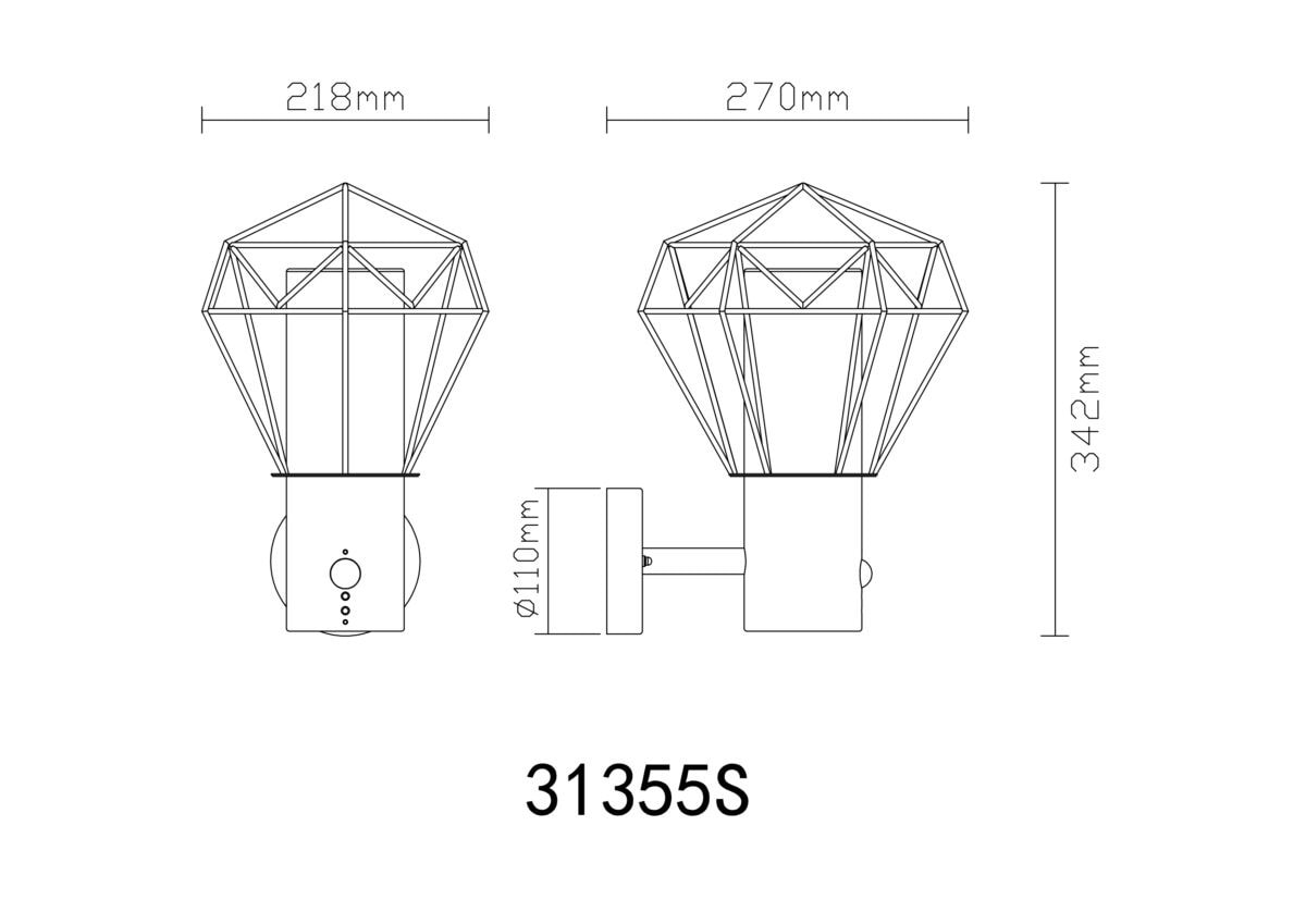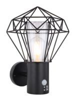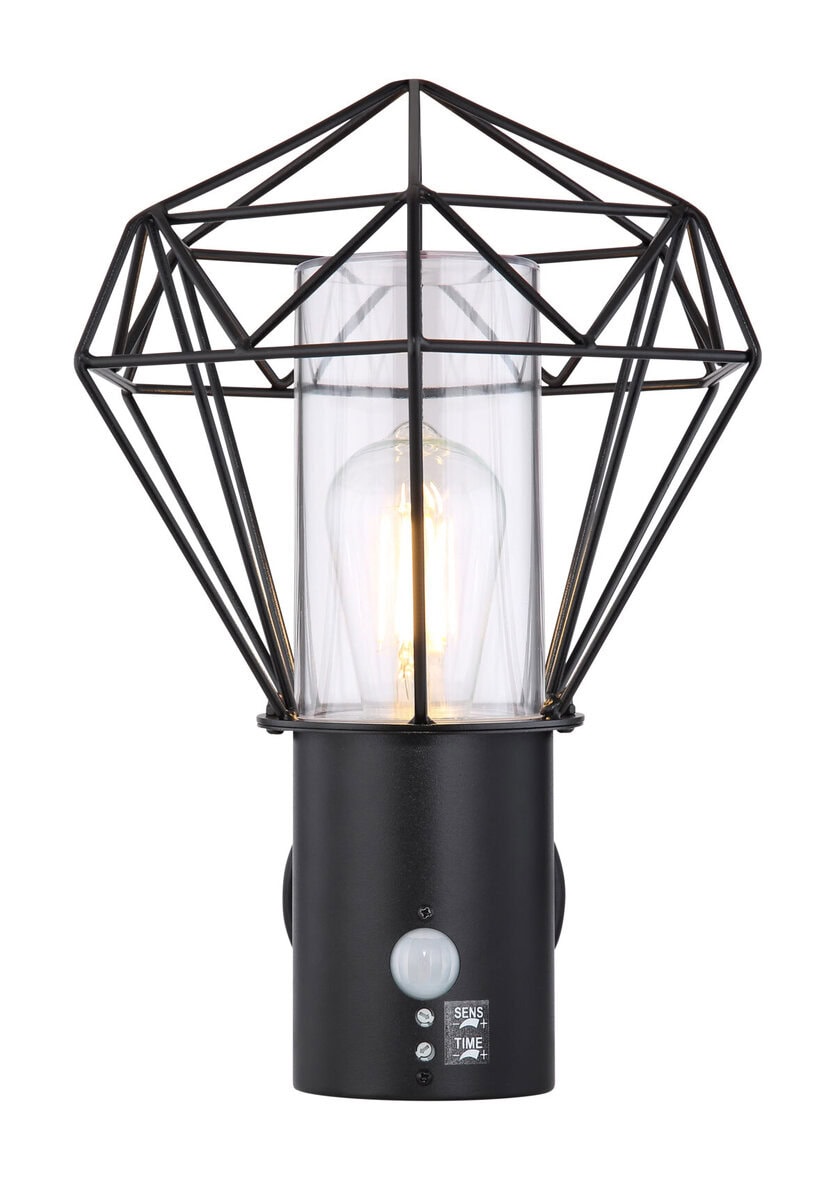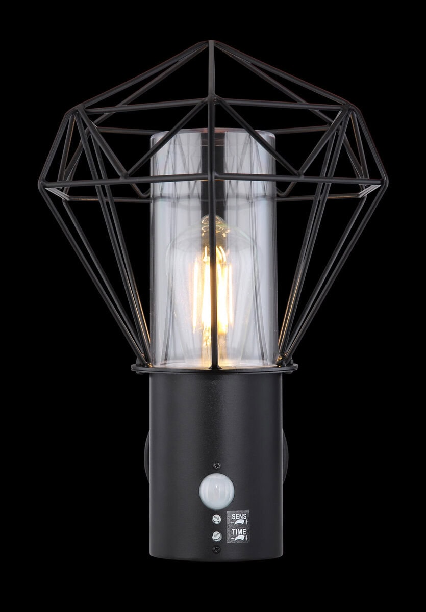 Crna lampa od nerđajućeg čelika savršeno se uklapa u zid vaše kuće. Poklopac je izrađen od prozirne plastike i idealan je za upotrebu na otvorenom zbog stepena zaštite IP 44. Lampa je široka 22,5 cm, visoka 34 cm i pruža ugodno svjetlo kroz rešetkasti metalni sjenilo. Sijalica sa grlom E 27 može se slobodno birati do 15W. Preporučujemo korištenje LED žarulje za još veću održivost.
