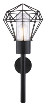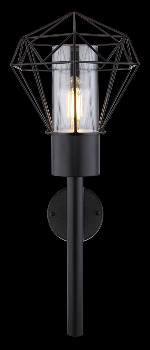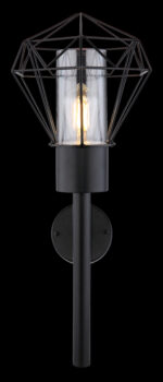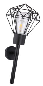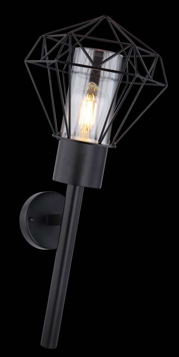 Crna lampa od nerđajućeg čelika savršeno se uklapa u zid vaše kuće. Poklopac je izrađen od prozirne plastike i idealan je za upotrebu na otvorenom zbog stepena zaštite IP 44. Lampa je široka 22,5 cm, visoka 28,5 cm i pruža ugodno svjetlo kroz rešetkasto metalno sjenilo. Sijalica sa grlom E 27 može se slobodno birati do 15W. Preporučujemo korištenje LED žarulje za još veću održivost.