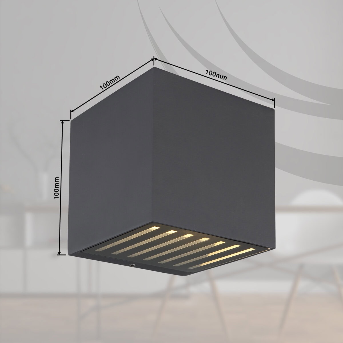 Vanjska lampa ILLI prava je privlačnost za vaš vanjski prostor. Sa svojim dizajnom u obliku kocke i svjetlosnim efektom gore-dolje, stvara elegantnu i modernu atmosferu. Tijelo vanjske svjetiljke ILLI izrađeno je od aluminija antracitne boje i savršeno se uklapa u svako okruženje. Sjenilo je izrađeno od prozirnog stakla sa crnim akcentima i stvara stilsku igru svjetla. Zahvaljujući kvadratnom formatu širine 100 mm i visine 100 mm, vanjska lampa ILLI je pravi dragulj za svaku fasadu ili terasu. Sa snagom od 106 lumena i svetlosnom temperaturom od 3000K, svetiljka stvara prijatno toplo svetlo i stvara ugodnu spoljašnju atmosferu. Vanjska svjetiljka ILLI je opremljena klasom zaštite IP54 i stoga je idealna za vanjsku upotrebu. Postavite elegantne akcente oko svog doma i uživajte u harmoničnom svjetlu ove izvanredne vanjske lampe.