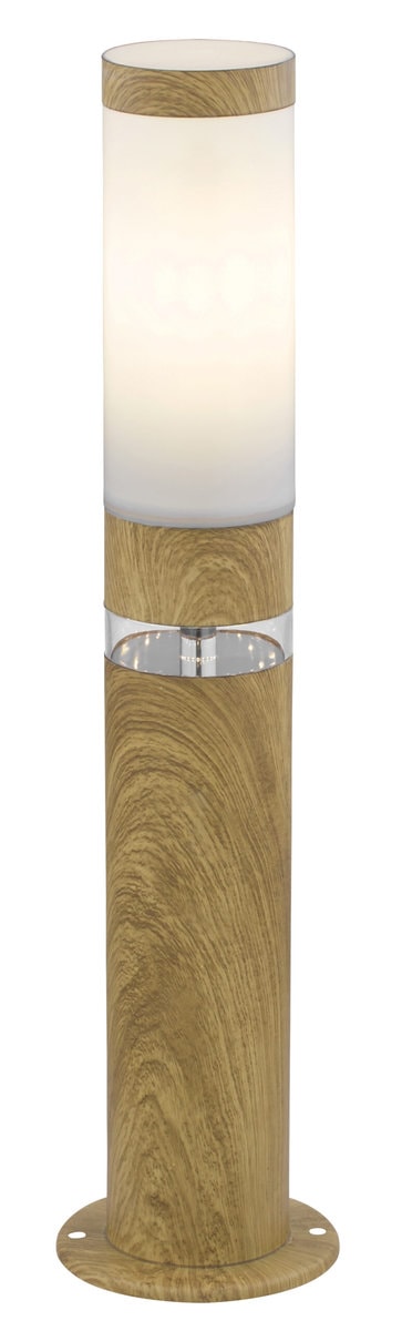 Ova vanjska zidna lampa iz Jaicy serije uvjerava svojim elegantnim dizajnom od nehrđajućeg čelika u izgledu drveta. Vanjska svjetiljka veličine 35 cm sastoji se od cilindričnog cilindra od nehrđajućeg čelika, koji je postoljem pričvršćen na zid i na donjem kraju ima prozirni plastični prsten. Cilindar se može opremiti i sa E27 LED sijalicom po vašem izboru, koja je zatim prekrivena opal plastikom. Ovo vam daje priliku da individualno odredite boju svjetla i svjetlinu. Osim toga, vanjska svjetiljka je opremljena uključenim detektorom pokreta. Sa drugim modelima iste serije možete stvoriti atmosferski ambijent u svom vanjskom prostoru.