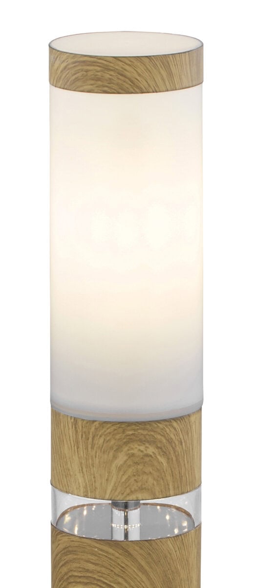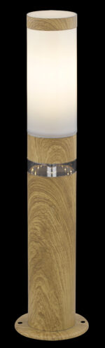 Ova vanjska lampa iz serije Jaicy (ø 11,7 cm) uvjerava svojim elegantnim dizajnom od nehrđajućeg čelika u izgledu drveta. Vanjska svjetiljka od 50 cm sastoji se od cilindričnog cilindra od nehrđajućeg čelika, koji ima prozirni plastični prsten. Iznad prstena, vanjska lampa može biti opremljena sa E27 LED sijalicom po vašem izboru, koja je zatim prekrivena opal plastikom. Ovo vam daje priliku da individualno odredite boju svjetla i svjetlinu. Sa drugim modelima iste serije možete stvoriti atmosferski ambijent u svom vanjskom prostoru.