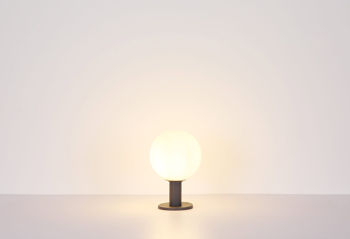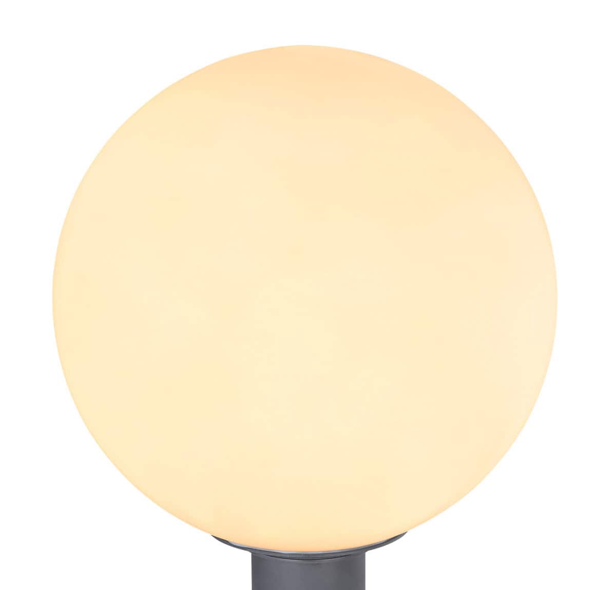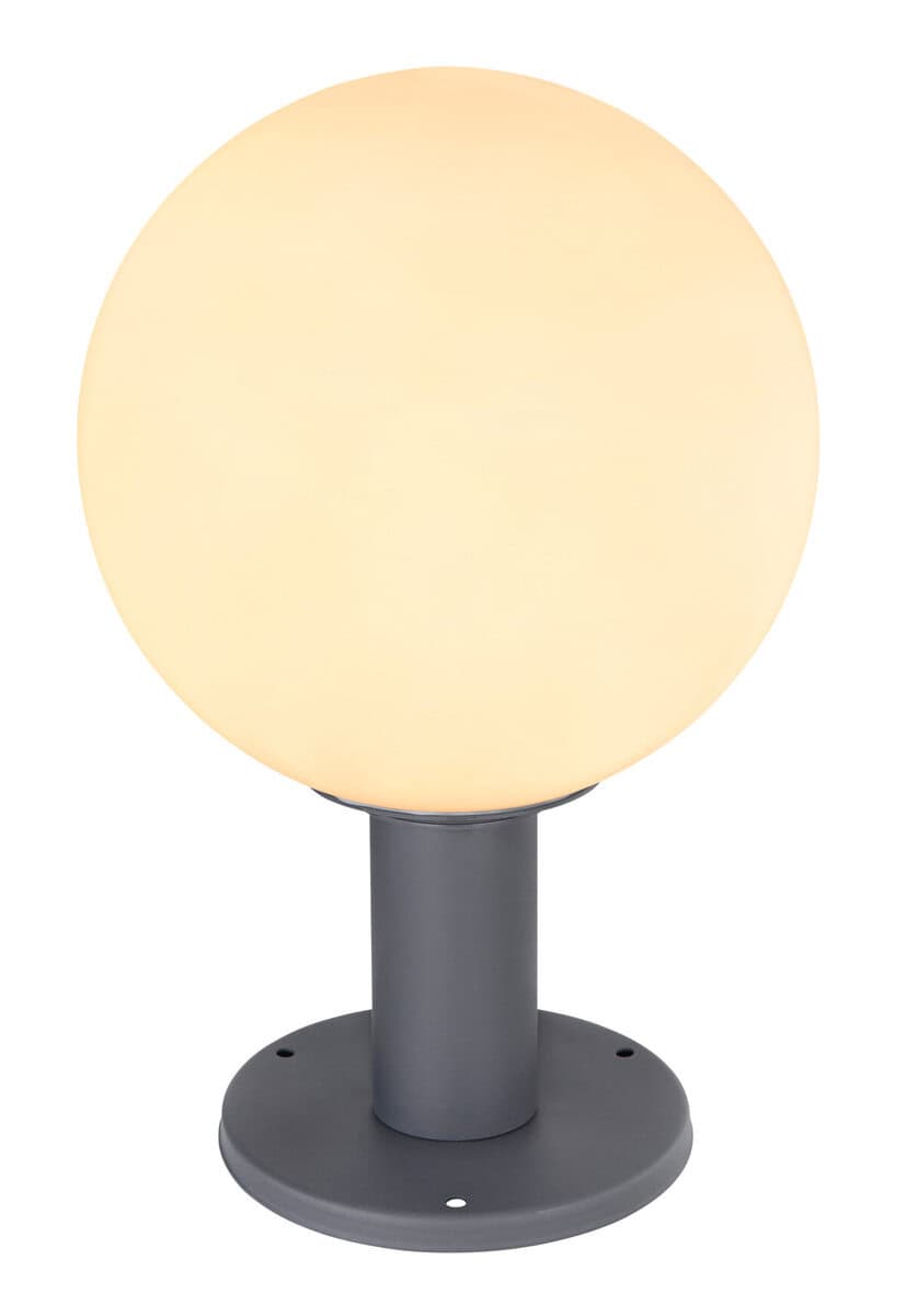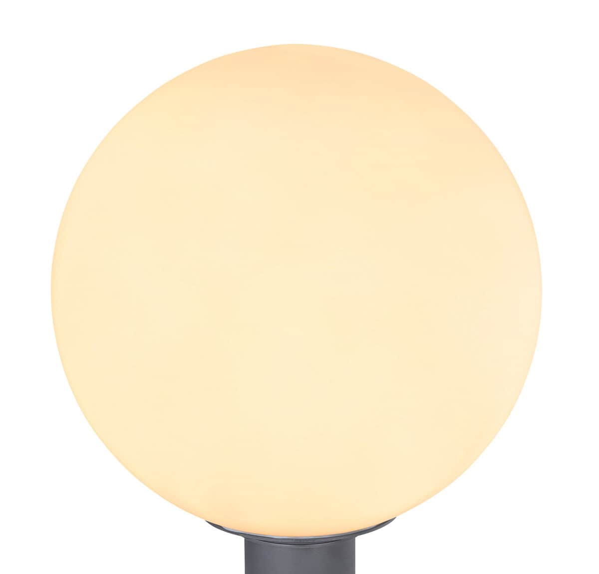 Ova okrugla vanjska lampa (klasa zaštite IP44) je prekrasan dodatak vašoj terasi ili vrtu. Napravljena od antracit livenog aluminijuma, spoljna svetiljka od 38 cm može se lako pričvrstiti na ravne površine i ima kuglu od opalnog stakla (ø 25 cm) koju možete opremiti sa E27 LED sijalicom po vašem izboru. Ovo vam daje priliku da odredite boju svjetla i svjetlinu prema vašim idejama. Uz druge modele iste serije, možete postaviti elegantne akcente u svoj vanjski prostor i upotpuniti cjelokupnu sliku.