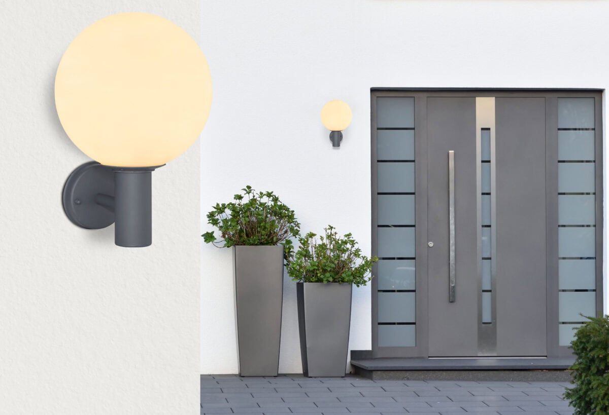 Ova vanjska lampa od 37 cm (klasa zaštite IP44) odlična je za montažu na jedan od vaših vanjskih zidova. Sastoji se od cilindra od nehrđajućeg čelika boje antracita, koji je opremljen kuglom od opalnog stakla (ø 25 cm). E27 grlo unutar sfere može biti opremljeno LED sijalicom po vašem izboru, što vam daje mogućnost da individualno odredite boju svjetla i svjetlinu. Sa drugim modelima iz iste serije možete upotpuniti cjelokupnu sliku vašeg vanjskog prostora i pružiti atmosferski ambijent.