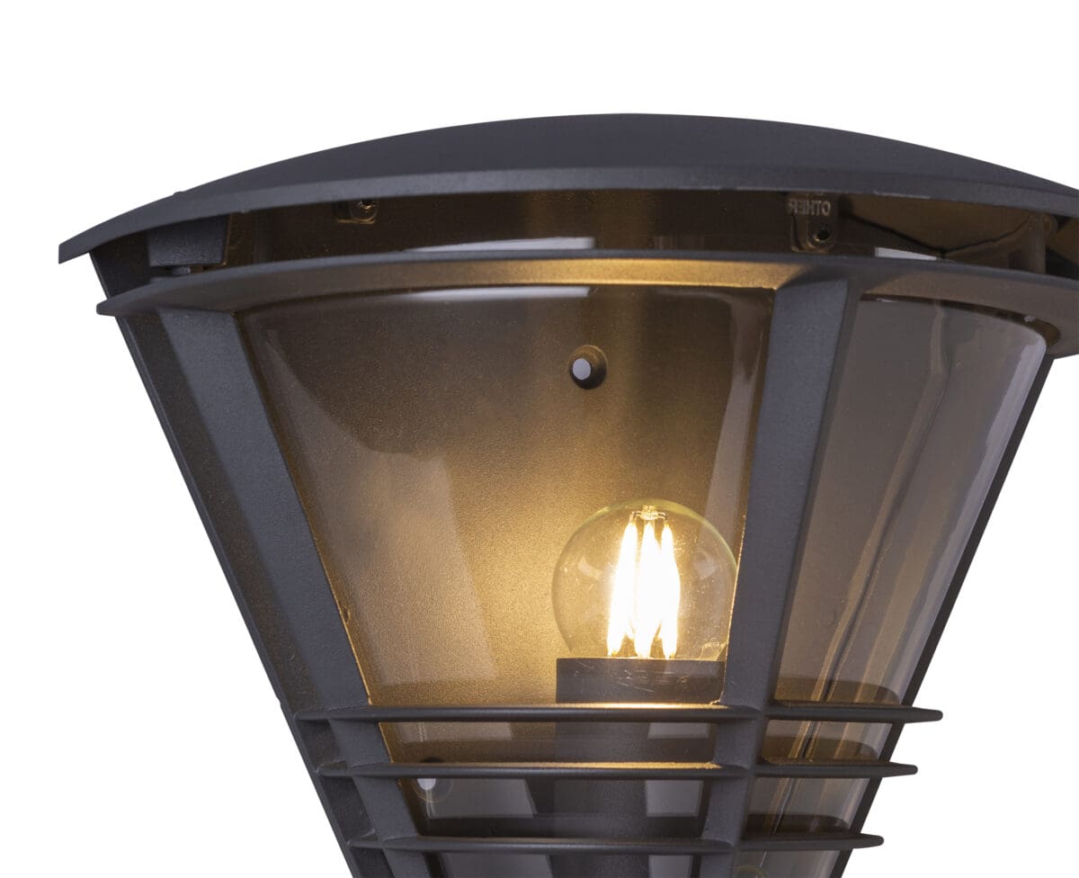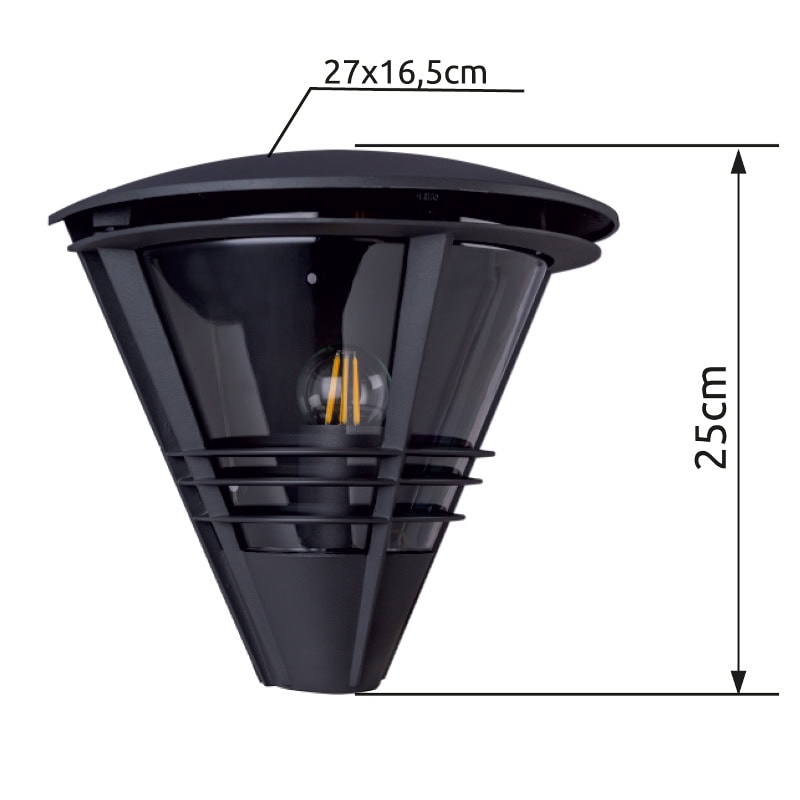 Ova klasična polukonična vanjska svjetiljka od 25 cm izrađena je od aluminija u antracit boji i prozirne plastike. Neutralni bezvremenski oblik ove zidne lampe čini njeno polje primjene vrlo raznovrsnim. Dostupni E27 vam ostavlja izbor izvora svjetlosti (maks. 60W), a time i intenziteta svjetla i boje svjetla. Zbog uštede energije i dugovečnosti preporučujemo LED sijalice.
