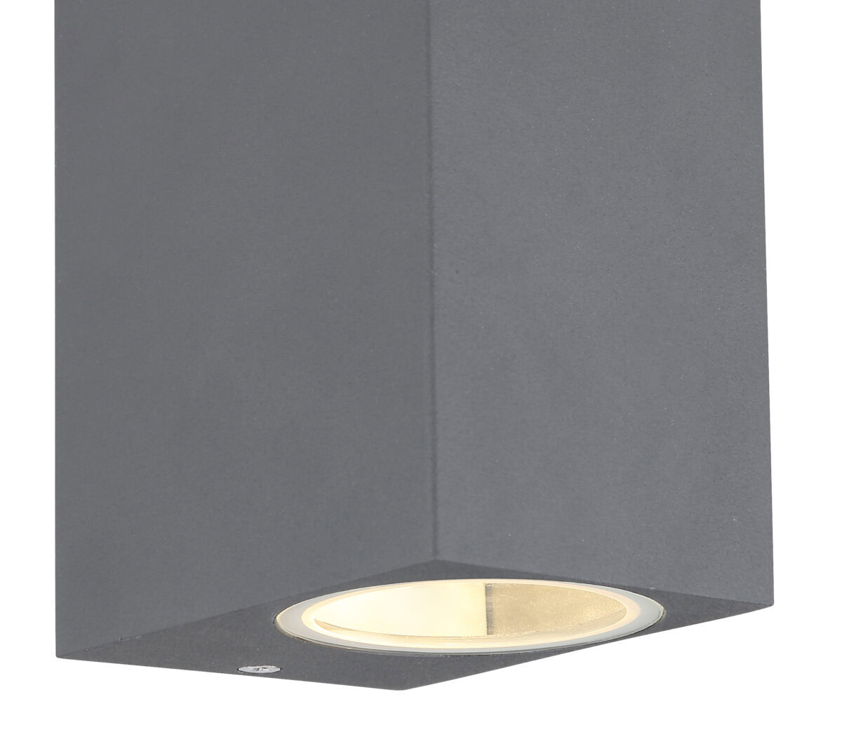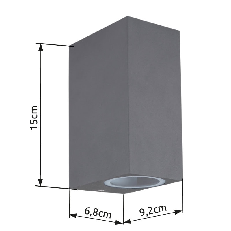 Ova moderna vanjska zidna lampa iz serije Veronika uvjerava svojim jednostavnim dizajnom od livenog aluminija u boji antracita. Vanjska svjetiljka od 15 cm sastoji se od aluminijskog kockastog oblika, na koji se može ugraditi GU10 sijalica po vašem izboru na vrhu i dnu, koji su zatim prekriveni prozirnim staklom. Ovo vam omogućava da individualno odredite boju i svjetlinu svjetla. Uz nekoliko članaka iz iste serije, možete elegantno urediti svoj vanjski prostor i upotpuniti cjelokupnu sliku.
