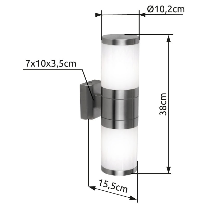 Ova vanjska lampa modernog dizajna pripada Xeloo seriji i izrađena je od nehrđajućeg čelika i opal plastike. Opremljen klasom zaštite IP44, idealan je za upotrebu na otvorenom. Dvije postojeće E27 utičnice (maks. 60W) svijetle gore i dolje i trebale bi biti opremljene LED sijalicom. Sa ljepšim zidnim lampama ove serije možete upotpuniti sliku u svom vanjskom prostoru.