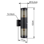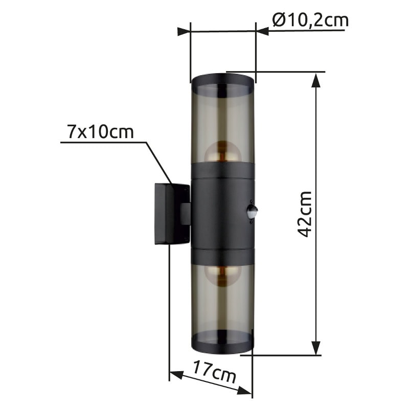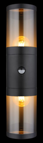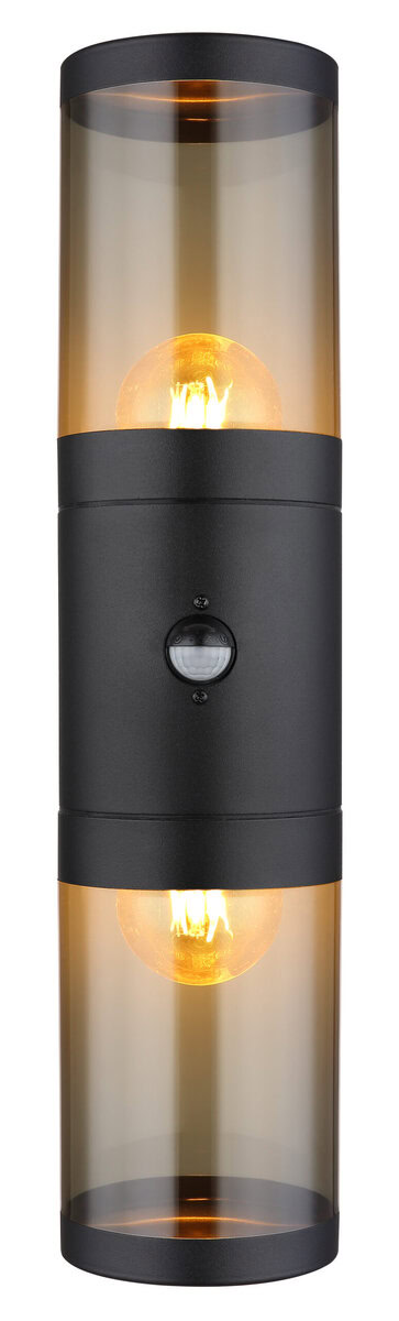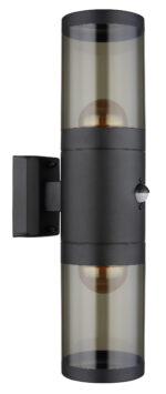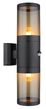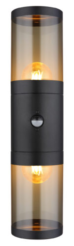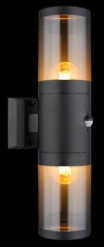 Ova vanjska lampa modernog dizajna pripada Xeloo seriji i izrađena je od crnog nehrđajućeg čelika i plastike u boji dima. Opremljen klasom zaštite IP44, idealan je za upotrebu na otvorenom. Dvije postojeće E27 utičnice (maks. 60W) svijetle gore i dolje i trebale bi biti opremljene LED sijalicom. Uključeni senzor reagira u rasponu od 4-8 m i 110°. Sa ovom lampom možete sa stilom upotpuniti svoje vanjske prostore. Sa ljepšim zidnim lampama ove serije možete upotpuniti sliku u svom vanjskom prostoru.
