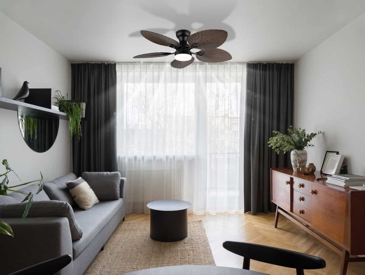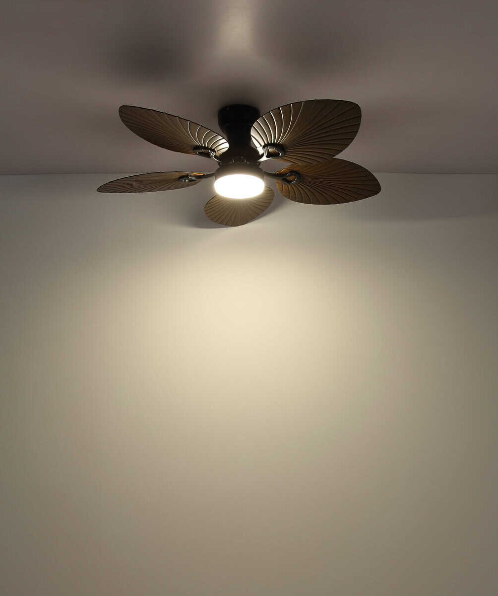 Okrugli stropni ventilator ELISE impresionira svojim neobičnim izgledom i dobro osmišljenom funkcionalnošću. Pet lopatica stilizovanog oblika lista napravljeno je od tamne plastike sa izgledom drveta i daju ventilatoru prirodan, elegantan izgled. Tijelo izrađeno od crnog, mat metala i aluminija upotpunjuje dizajn modernom jasnoćom. Sjenilo izrađeno od crnog metala s opalno bijelom plastikom osigurava ugodnu, ravnomjernu distribuciju svjetlosti. Sa svjetlosnom snagom od 1897 lumena i CCT funkcijom od 3000 K do 6000 K, ELISE nudi individualno podesivo svjetlo – od toplog do hladnog. Boje se mogu fiksirati i zahvaljujući memorijskoj funkciji čuvaju se vaše željene postavke. Priloženi daljinski upravljač omogućava vam jednostavno upravljanje svjetlom i ventilatorom. ELISE kombinuje moderan dizajn, efikasnu ventilaciju i modernu LED tehnologiju – idealno za životne prostore sa karakterom.