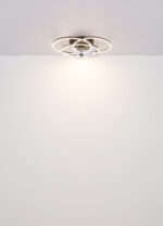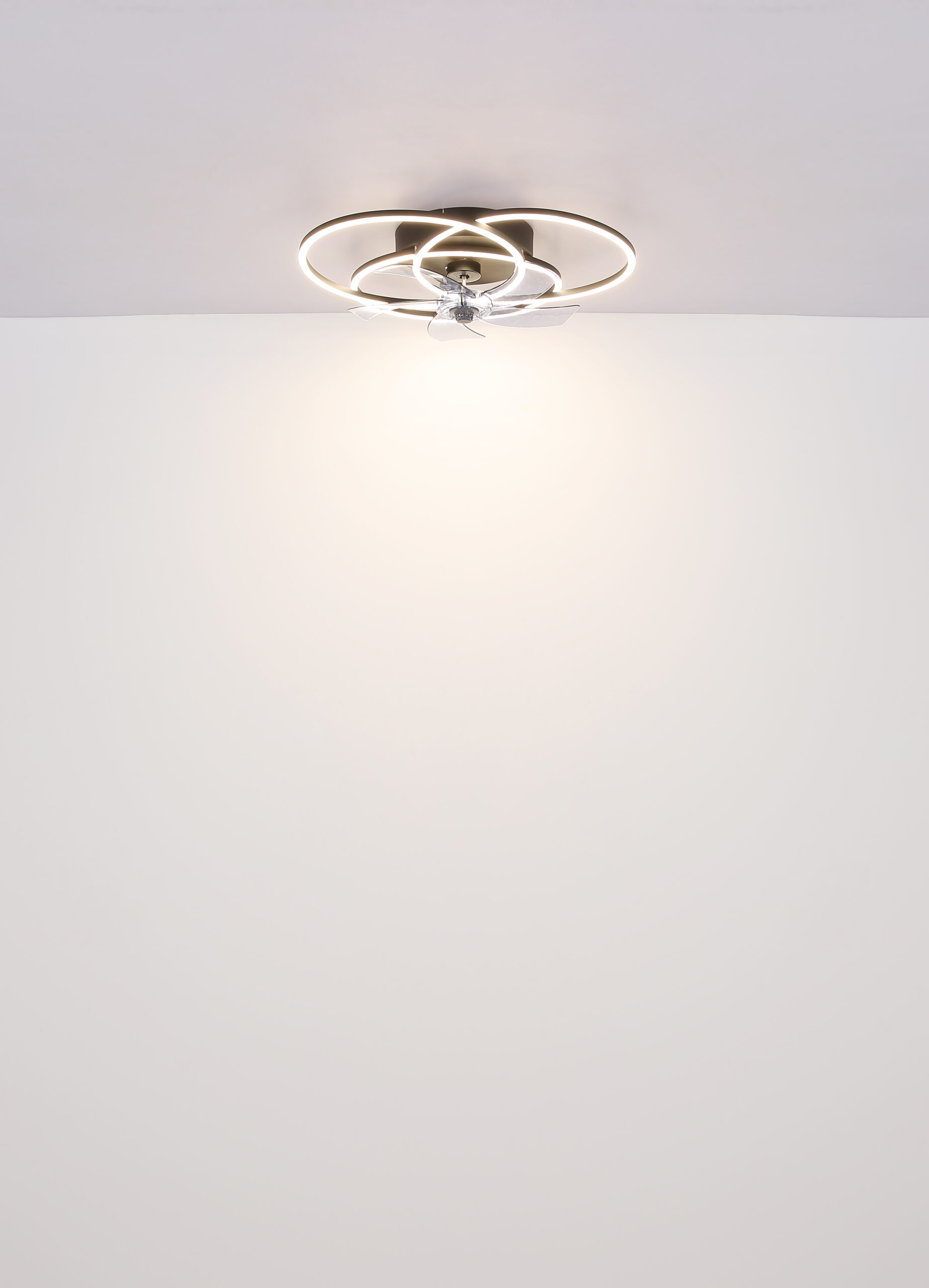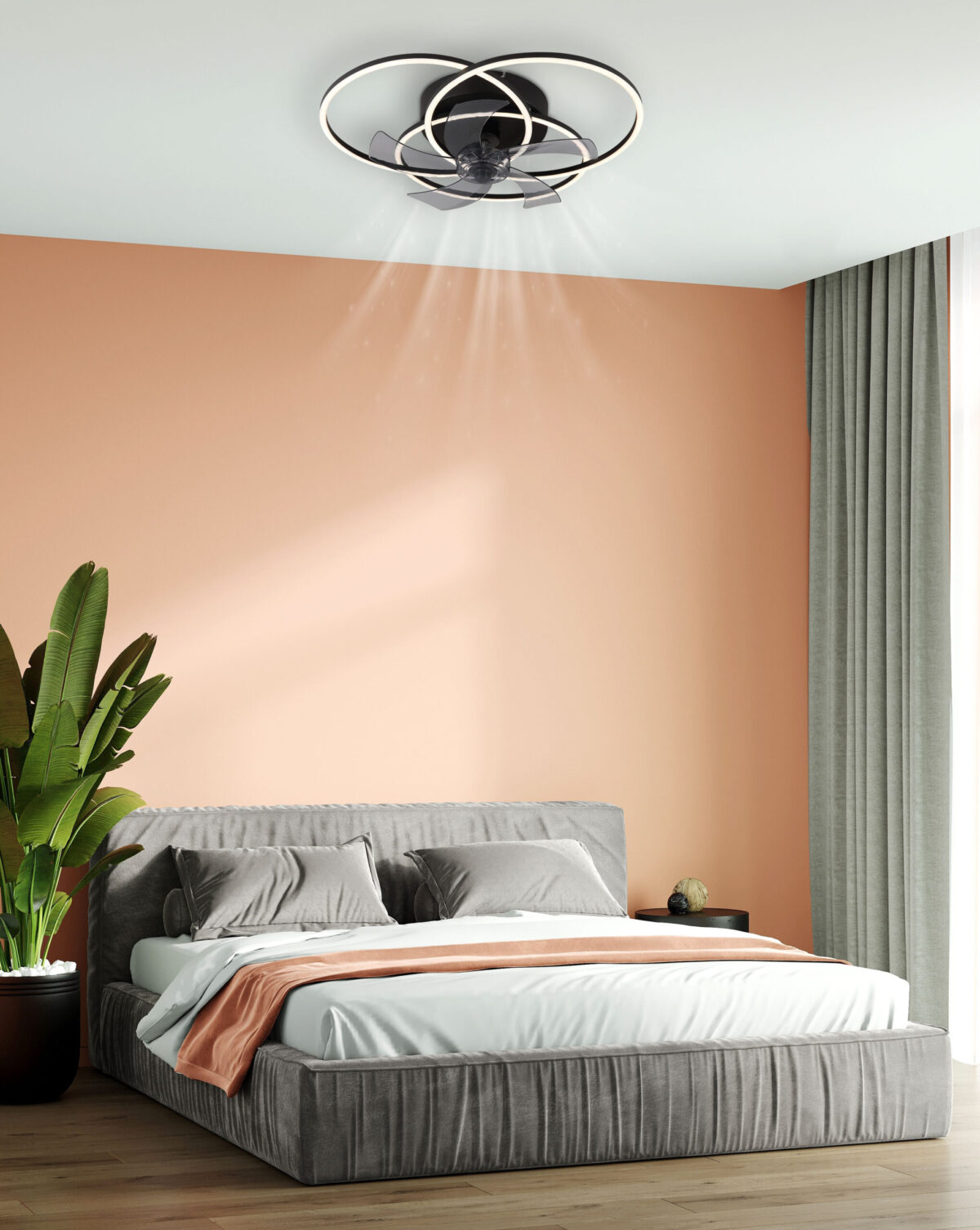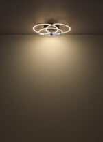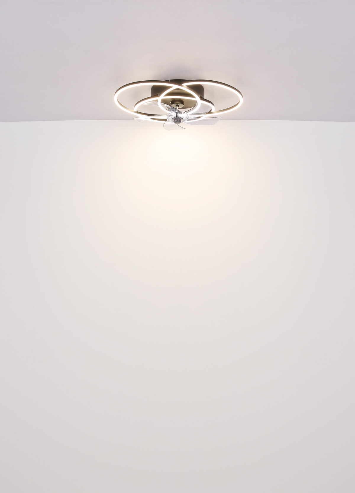 Otkrijte ALIA lampu – moderan i praktičan plafonski ventilator koji će revitalizirati vaš prostor. Lampa ima tijelo od crnog, mat lakiranog metala, na kojem su postavljena tri prstena za ventilator. Sam ventilator je opremljen s pet lopatica koje se lako i tiho okreću. Sjenilo je izrađeno od aluminijuma i ofarbano crno radi poboljšanja vizuelnog dojma. Plastični poklopci dostupni su u opalnoj ili dimljenoj varijanti, kako bi se lampa mogla prilagoditi vašem ukusu. ALIA lampa dolazi s daljinskim upravljačem, funkcijom zatamnjivanja (dimming), mogućnošću podešavanja boje svjetlosti i memorijskom funkcijom. Uz to ima i funkciju noćnog svjetla i svjetlosni izlaz od 2000 lumena. Temperatura boje (CCT) se može podešavati od 3000K do 6500K kako bi se postiglo optimalno osvjetljenje. Idealno za one koji traže moderno i praktično rješenje za svoj životni prostor.