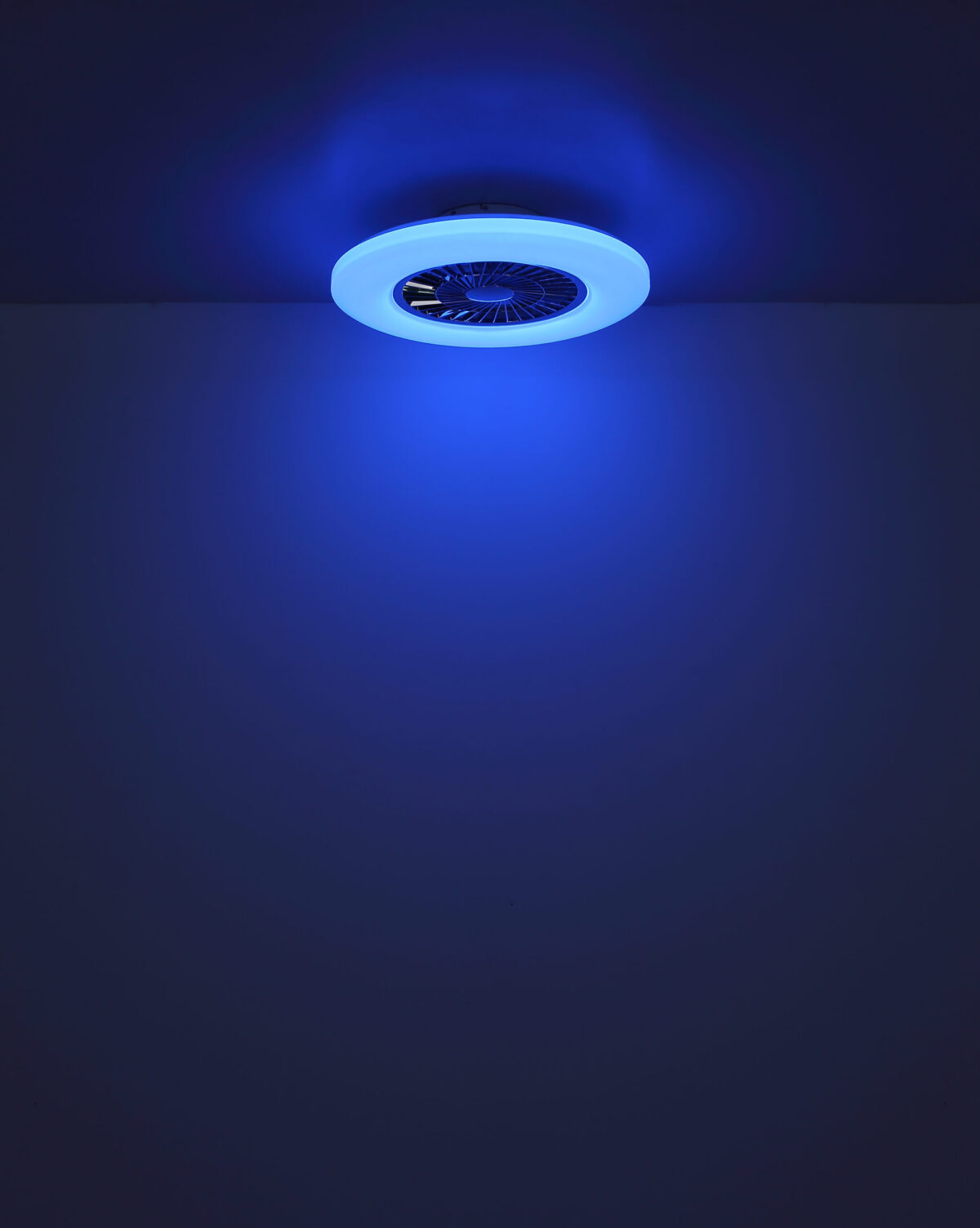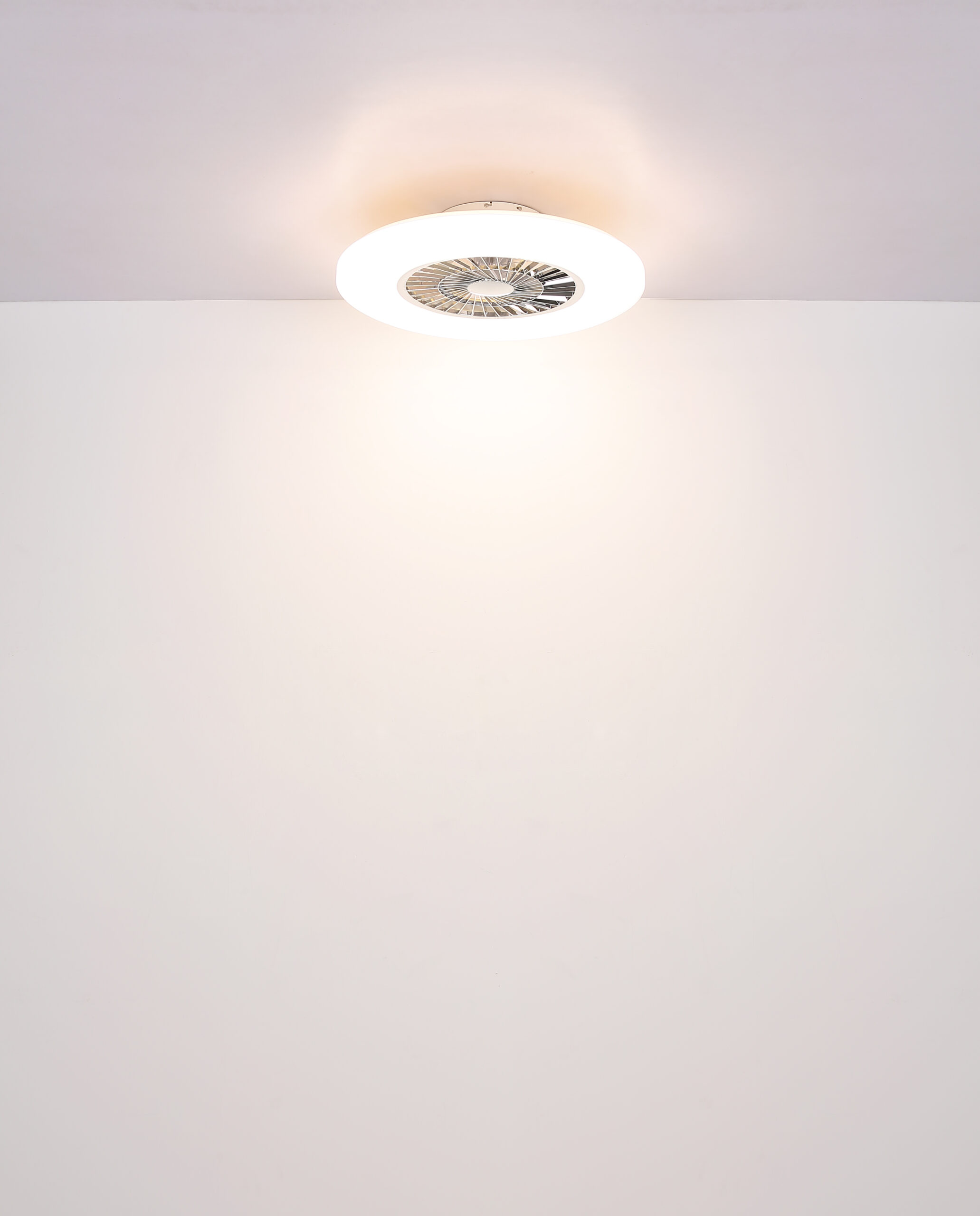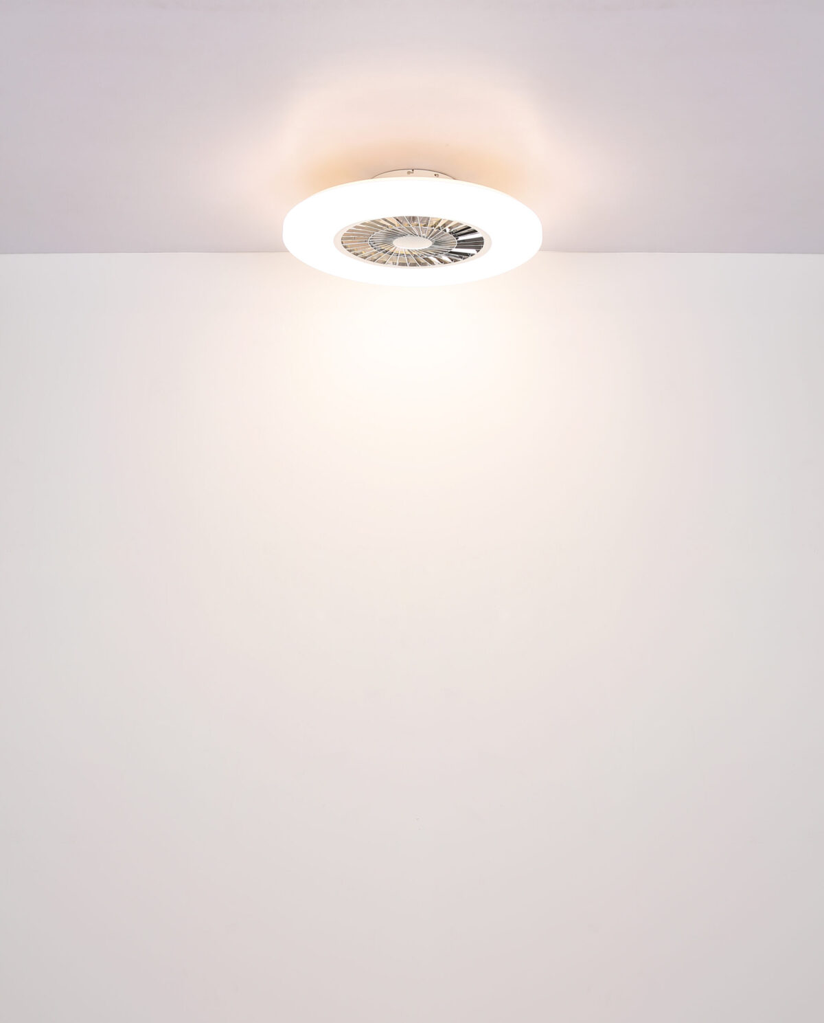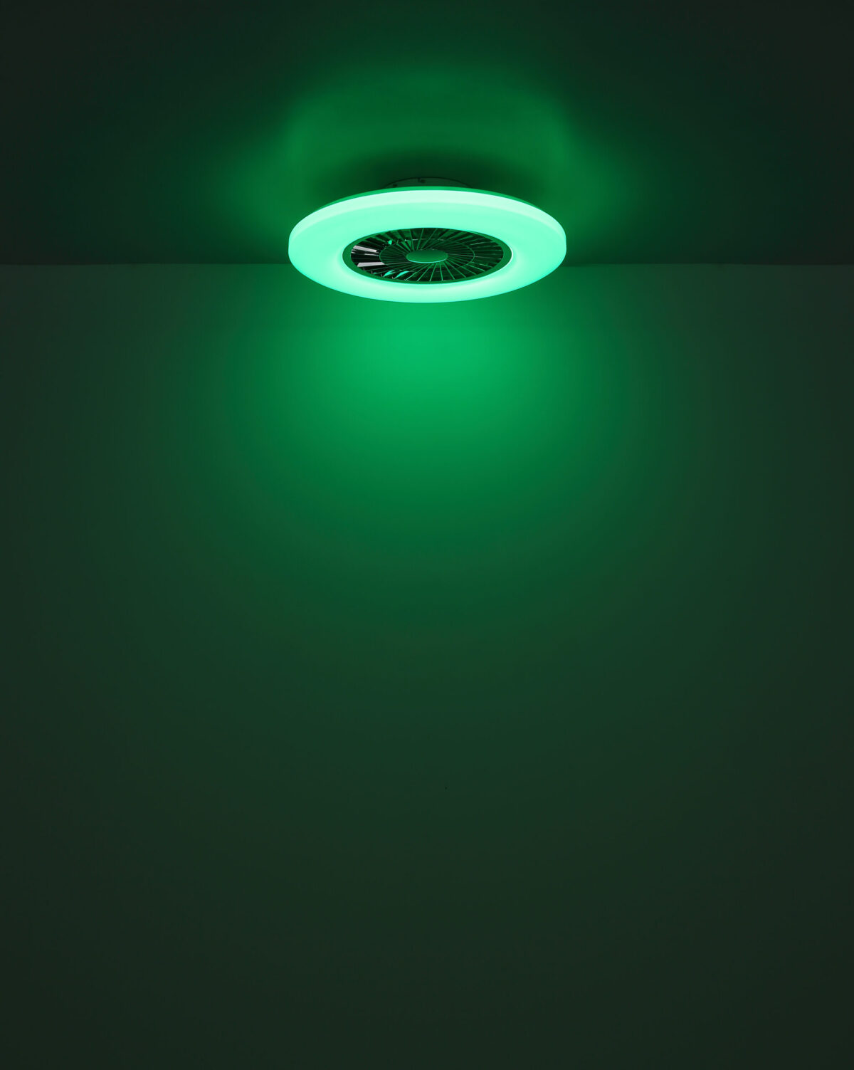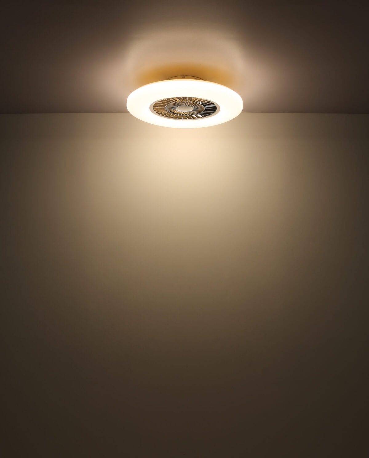 Otkrijte ALVA lampu – moderan i stilski plafonski ventilator koji će osvježiti vaš prostor. Lampa ima kućište izrađeno od bijele lakirane plastike, a pokrivena je sjenilom od opalne, hromirane ili prozirne plastike. Sjenilo se lako može zamijeniti kako bi odgovaralo vašem ukusu. ALVA rasvjetno tijelo dolazi s daljinskim upravljačem, može se prigušiti i ima funkciju memorije. Osim toga, možete fiksirati boju i uživati u RGB promjeni boja. RGB opcija omogućava i efekat duge, koja obasjava prostor u raznim nijansama. Lampa također ima noćni režim i svjetlosni intenzitet od 2500 lumena. Sa CCT rasponom od 3000K do 6500K, pruža optimalno osvjetljenje. ALVA je idealan izbor za sve koji traže savremeno i elegantno rješenje za svoj životni prostor.