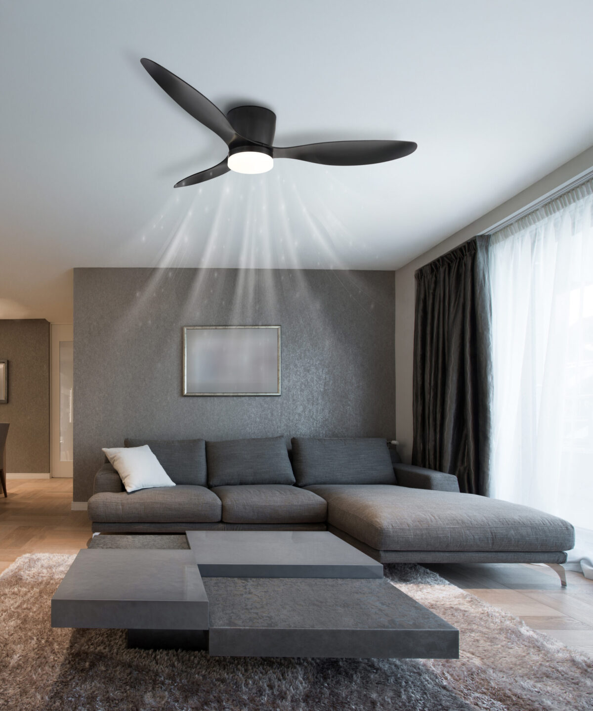 Plafonski ventilator ARMANDO kombinuje elegantan dizajn s funkcionalnom tehnologijom. Sa tri krilca i tijelom od mat crnog metala, skladno se uklapa u moderne stambene prostore. Sjenilo od mat ABS-a i opalnog akrila osigurava ravnomjernu raspodjelu svjetlosti. Zahvaljujući integrisanoj LED tehnologiji, ventilator nudi CCT funkciju s temperaturom boje od 3000 K do 6500 K, koja se može pojedinačno podešavati. Memorijska funkcija pamti posljednju postavku, dok prigušive i fiksirajuće boje omogućuju savršeno osvjetljenje po želji. Sa prečnikom od 1315 mm, ARMANDO osigurava prijatnu cirkulaciju zraka. Jednostavno se kontroliše pomoću priloženog daljinskog upravljača. Idealna kombinacija rasvjete i ventilacije za svaki dom!
