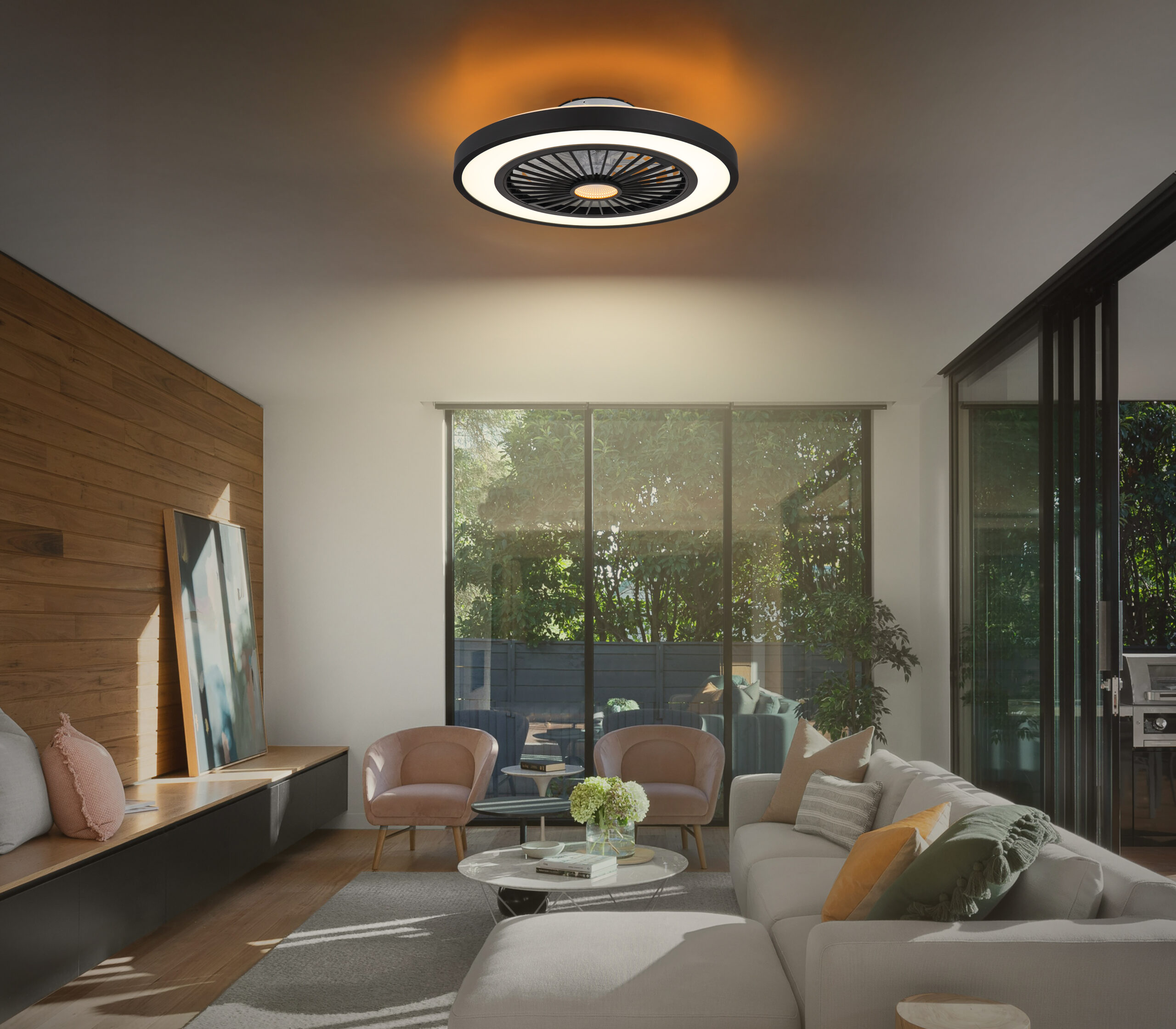 Plafonski ventilator BLIZZAK je moderan i praktičan uređaj koji ne samo da osigurava prijatnu cirkulaciju zraka, već ujedno predstavlja i stilski element u vašem prostoru. Sa svojim okruglim dizajnom i kućištem od metala u mat crnoj boji, unosi dašak elegancije u svaku prostoriju. BLIZZAK ventilator posjeduje plastični pokrov, dostupan u opalnom ili prozirnom dizajnu, koji pruža ugodno i ravnomjerno osvjetljenje. Ventilator je prigušiv (dimmable), a boje se mogu fiksirati kako bi se stvorila željena atmosfera. Poseban dodatak ovog modela je priloženi daljinski upravljač kojim se lako upravlja svim funkcijama. Osim toga, ventilator ima memorijsku funkciju i noćno svjetlo za dodatnu udobnost. Sa snagom osvjetljenja od 2080 lumena, BLIZZAK pruža dovoljno jako svjetlo. Temperatura boje se može podešavati od 3000K do 6500K, a funkcija „prirodni vjetar“ omogućava osjećaj prirodne prozračnosti. Otkrijte plafonski ventilator BLIZZAK i uživajte u ugodnom kretanju zraka i ambijentalnom osvjetljenju u svom domu. Savršen je izbor za optimalnu klimatizaciju prostora i kreiranje opuštajuće atmosfere.